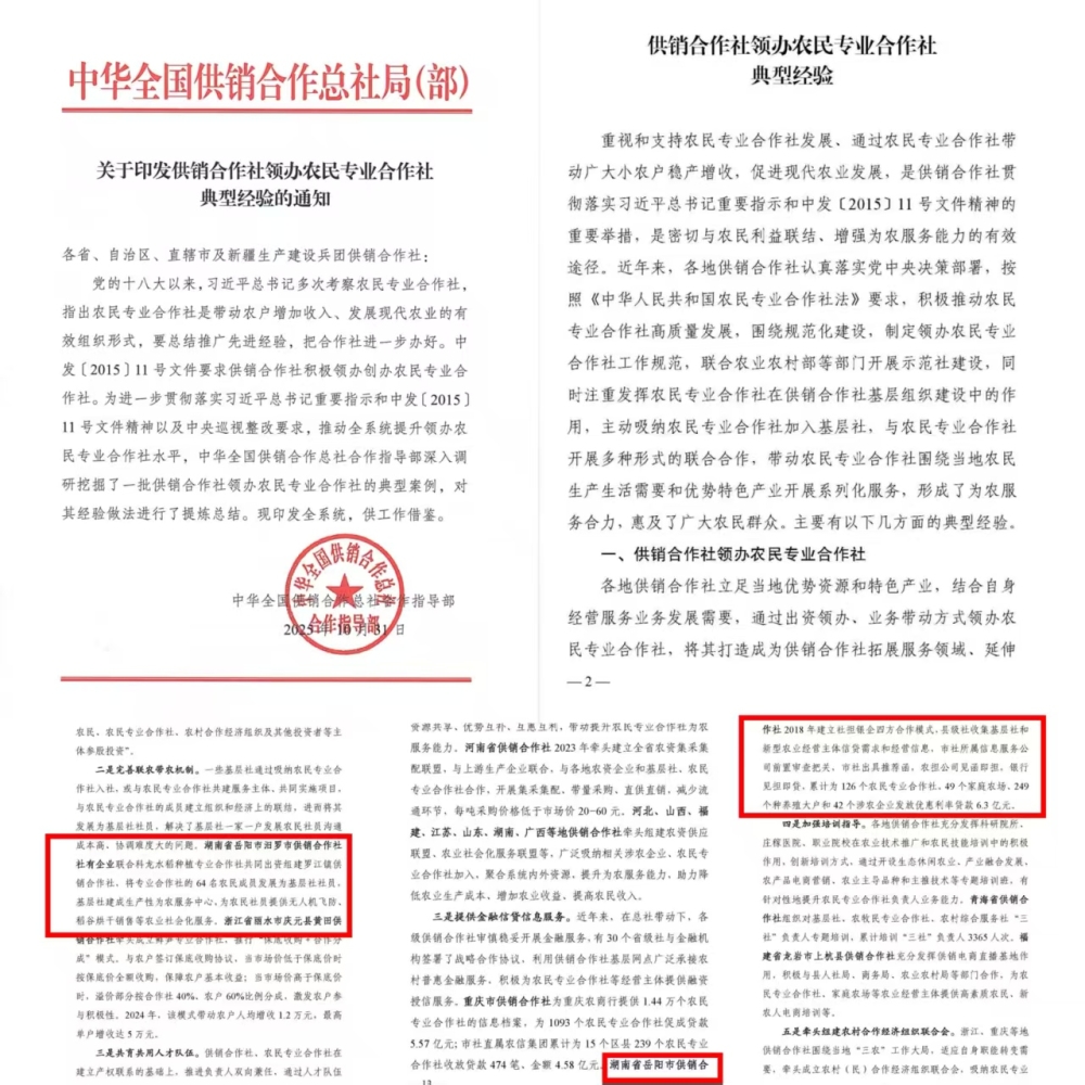 重视和支持农民专业合作社发展、通过农民专业合作社带动广大小农户稳产增收,促进现代农业发展,是供销合作社贯彻落实习近平总书记重要指示和中发〔2015〕11 号文件精神的重要举措,是密切与农民利益联结、增强为农服务能力的有效途径。近日,全国供销合作总社合作指导部印发供销合作社领办农民专业合作社典型经验的通知,总结提炼了一批供销合作社领办农民合作社的典型案例,湖南省共有3个案例入选,分别为汨罗市罗江镇供销社、岳阳市信用合作、长沙县路口供销社,其中我市入选的2个案例如下: