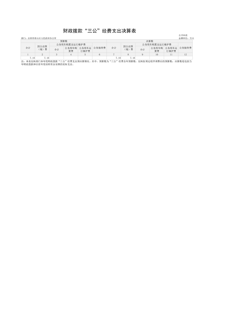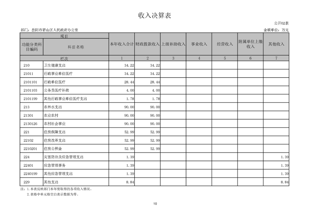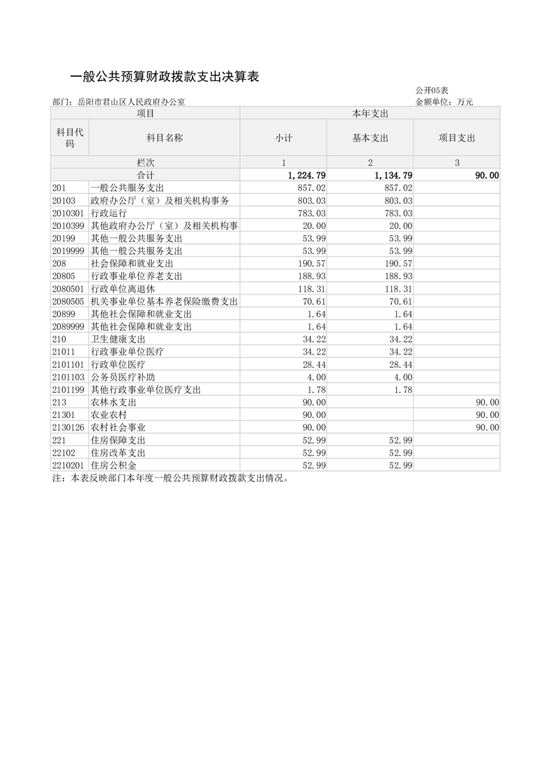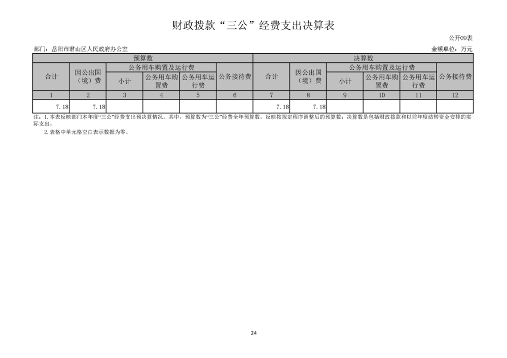 2024年度岳阳市君山区人民政府办公室(本级)部门决算公开