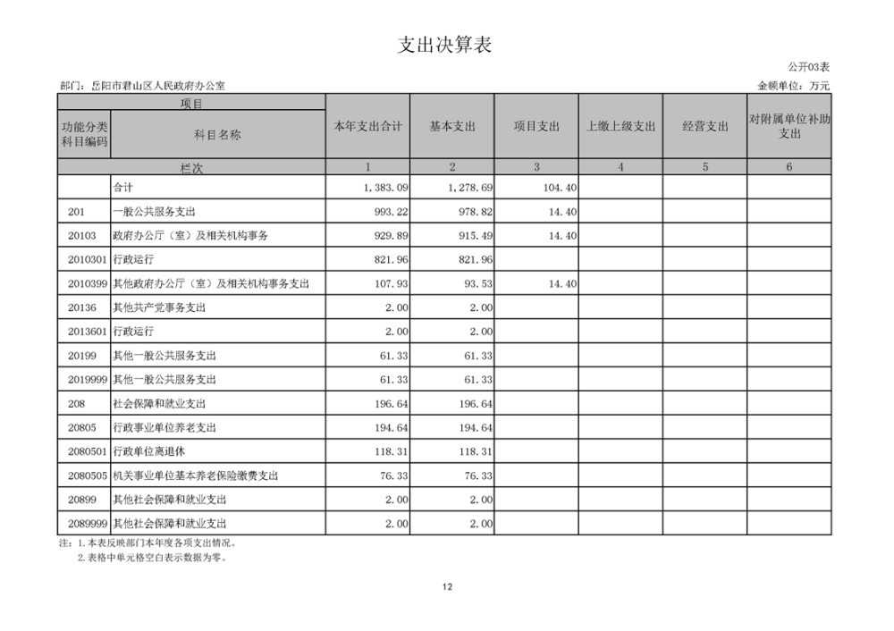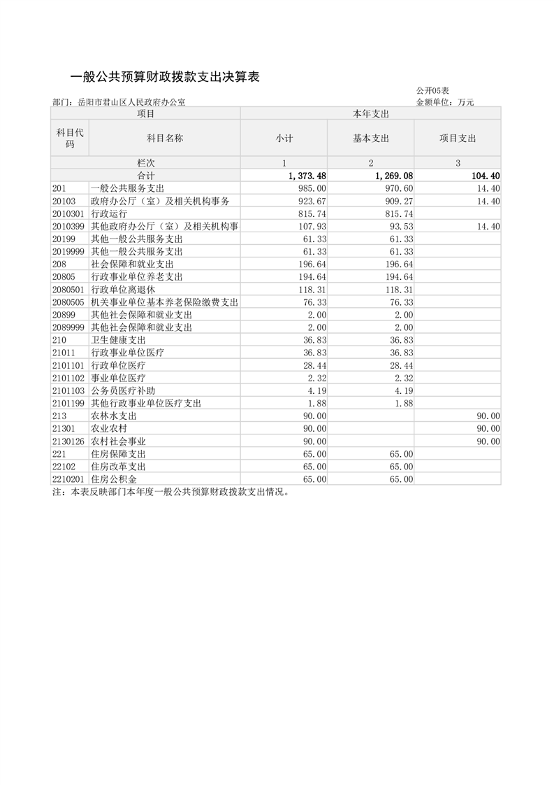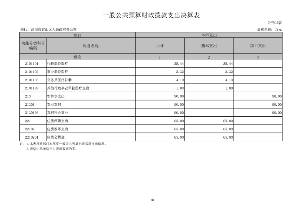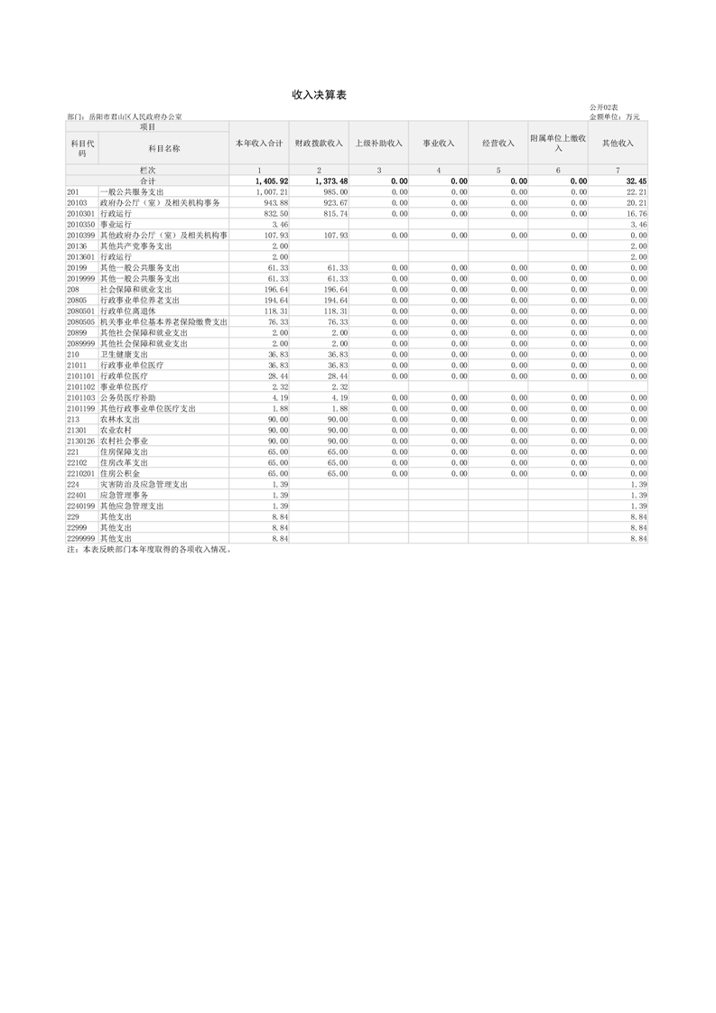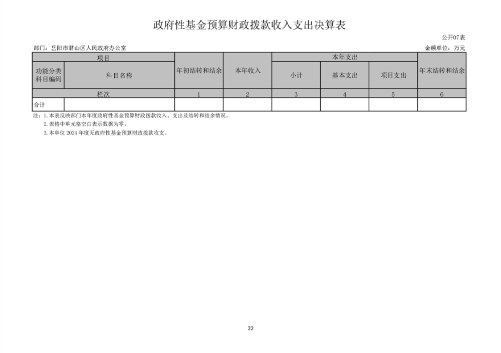 2024年度岳阳市君山区人民政府办公室(汇总)部门决算公开