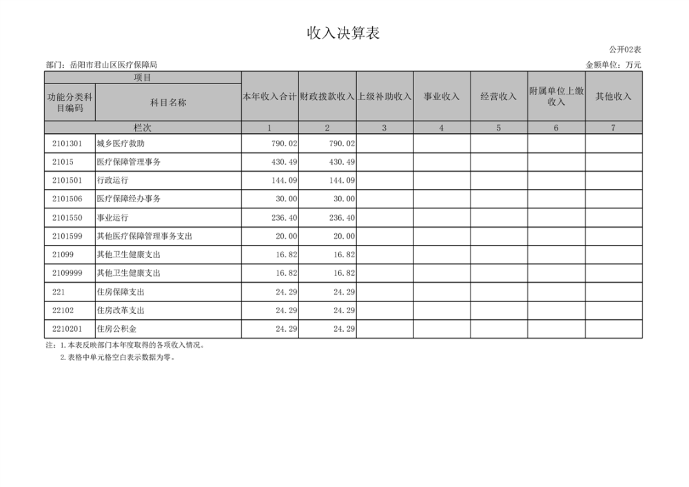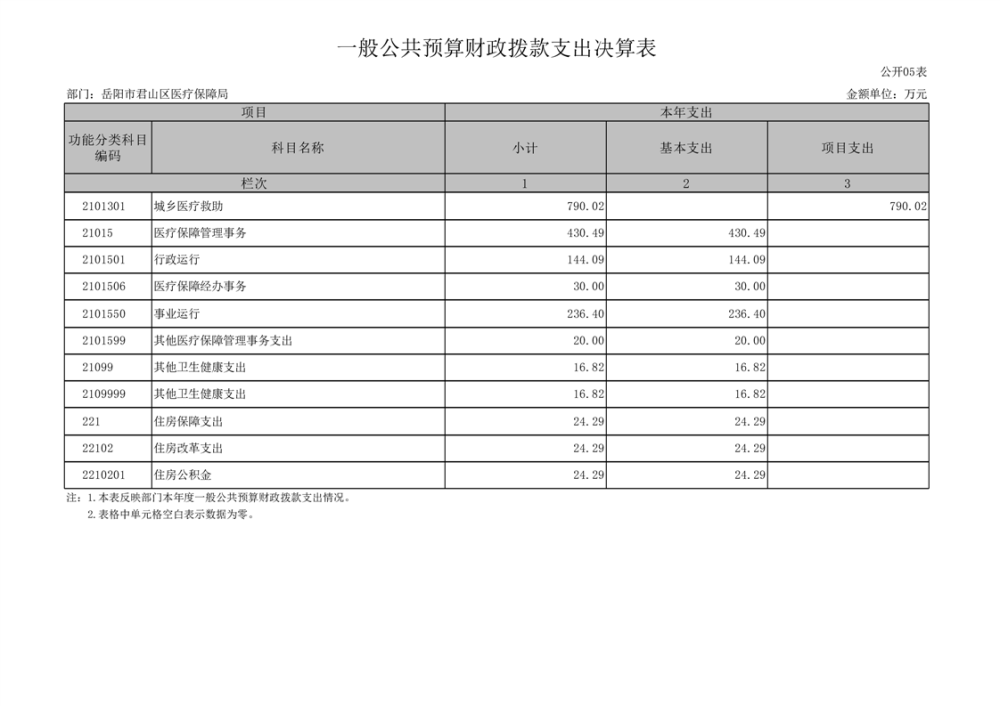 2024年度岳阳市君山区医疗保障局部门决算公开