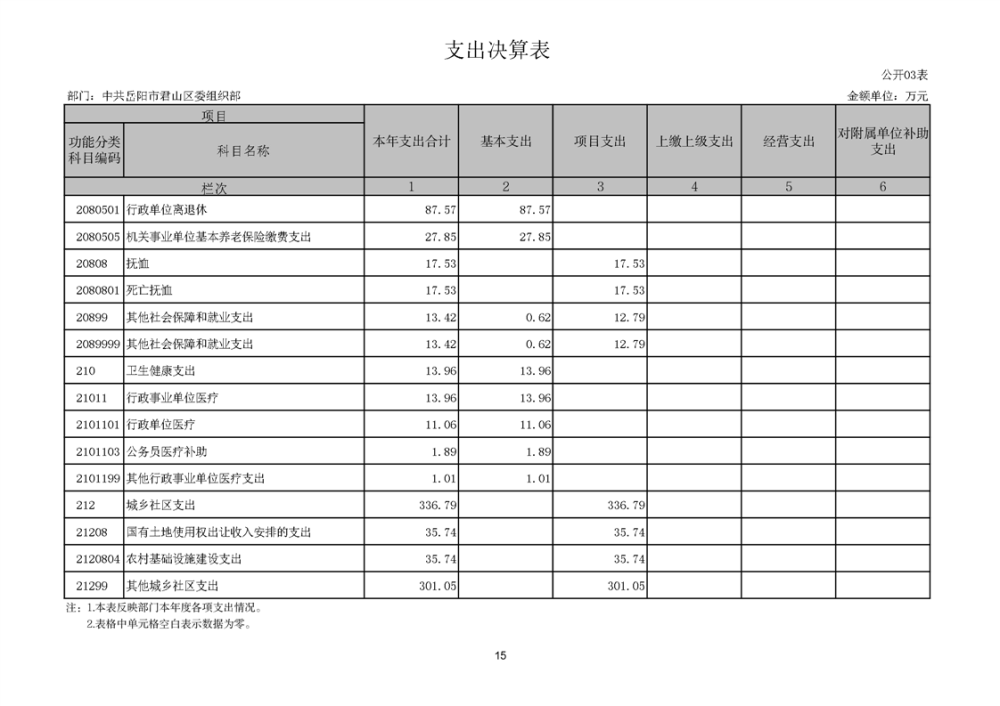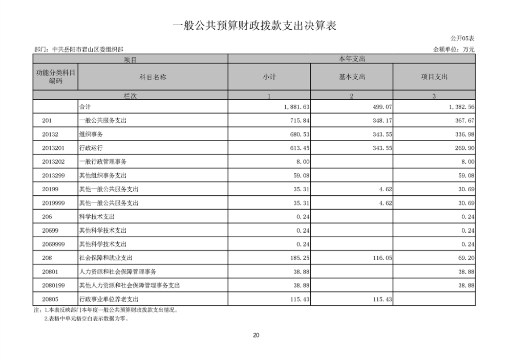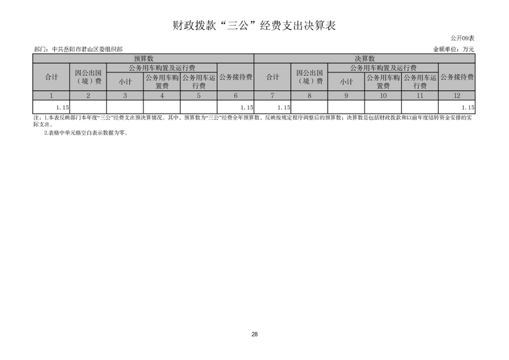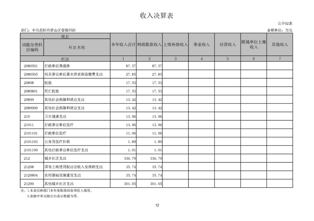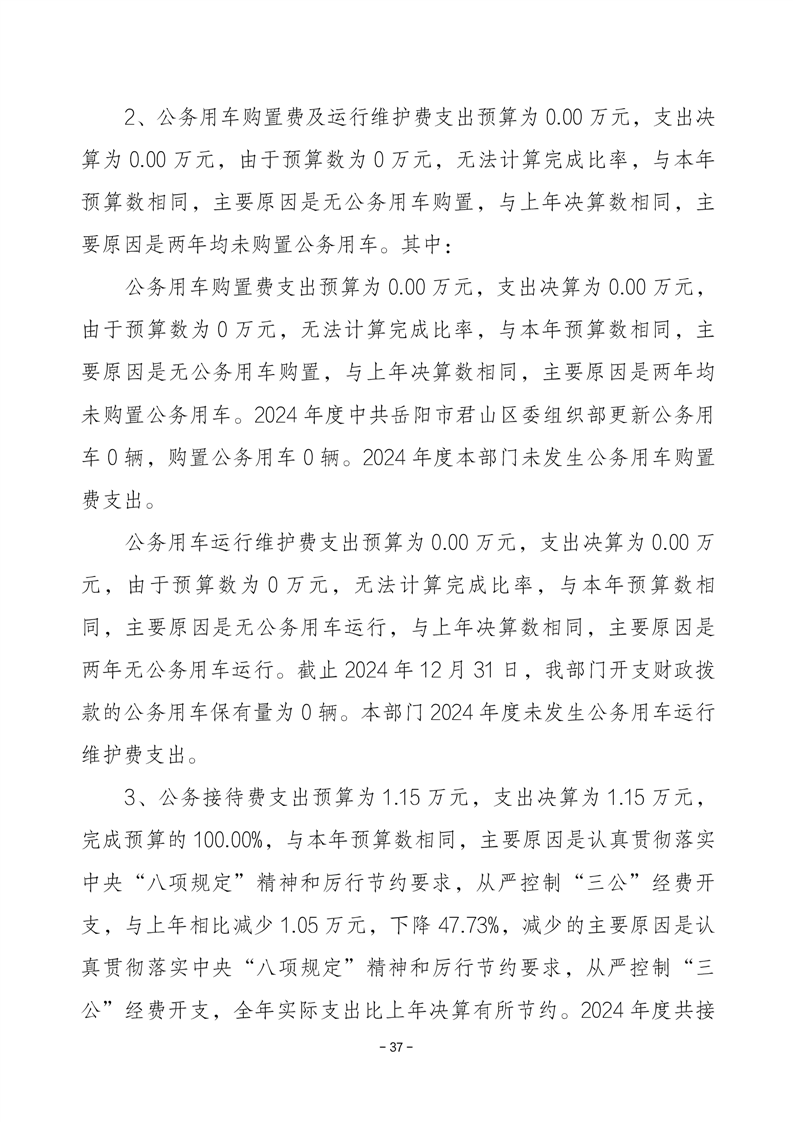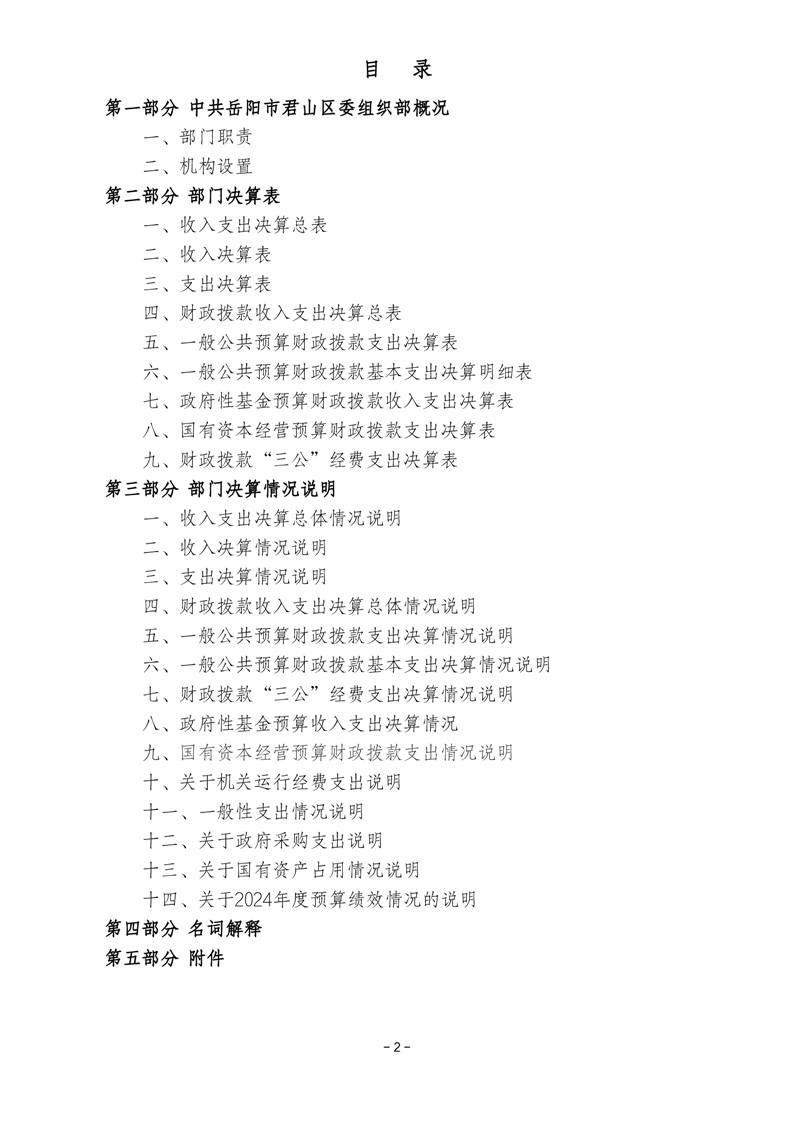 2024年度中共岳阳市君山区委组织部部门决算公开