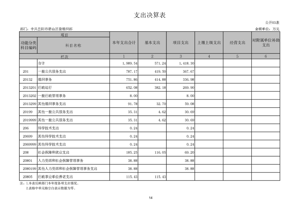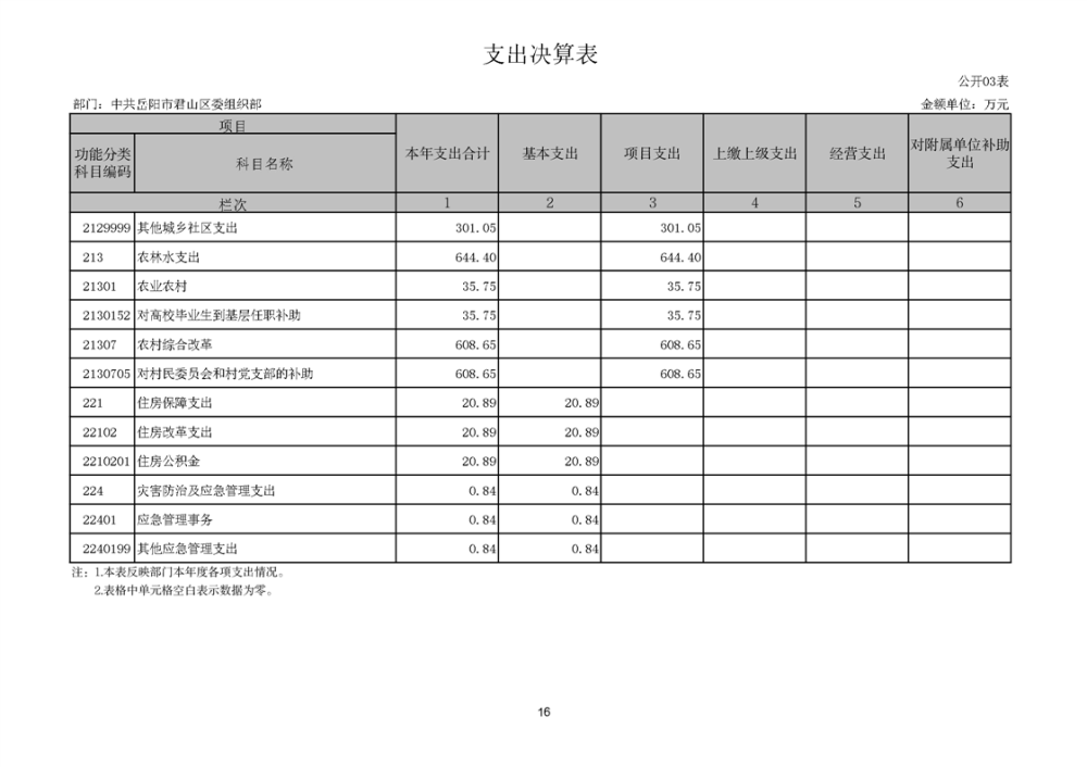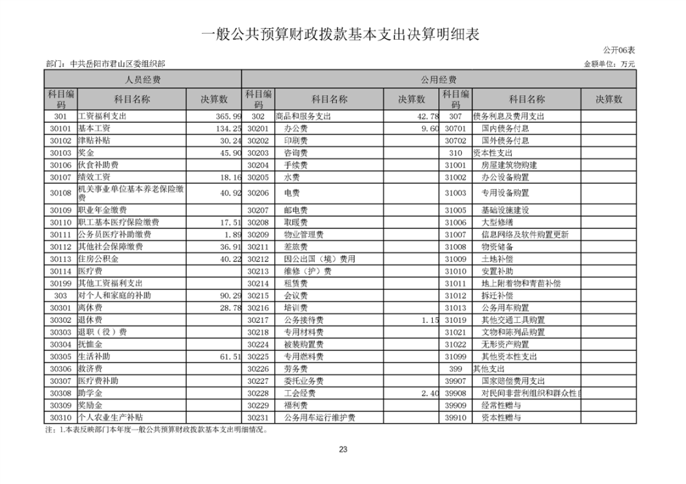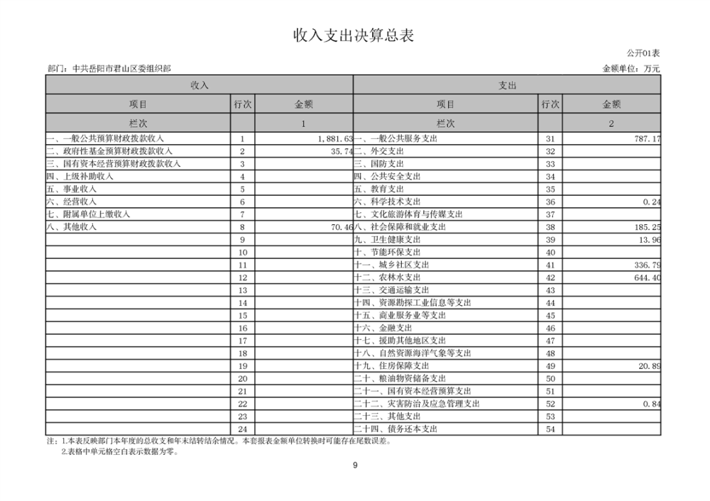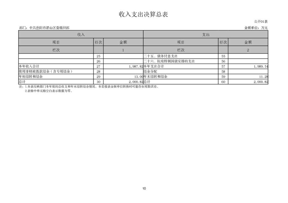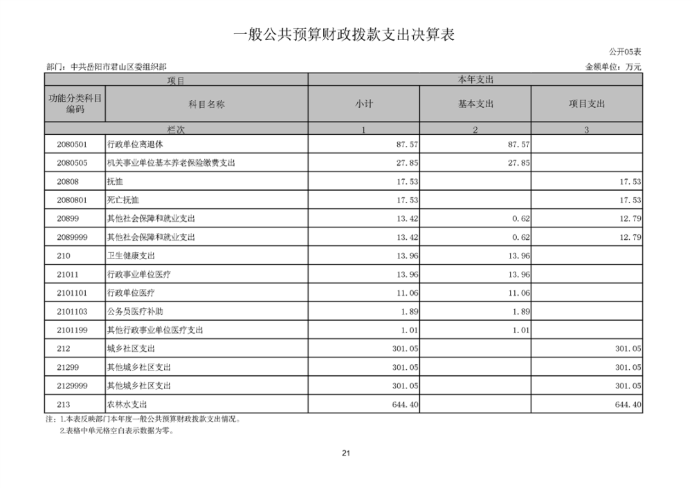 2024年度中共岳阳市君山区委组织部部门决算公开