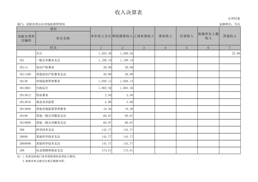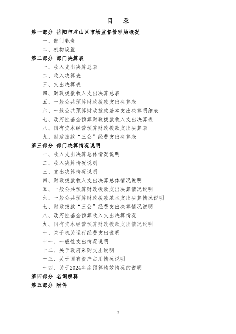 2024年度岳阳市君山区市场监督管理局部门决算公开