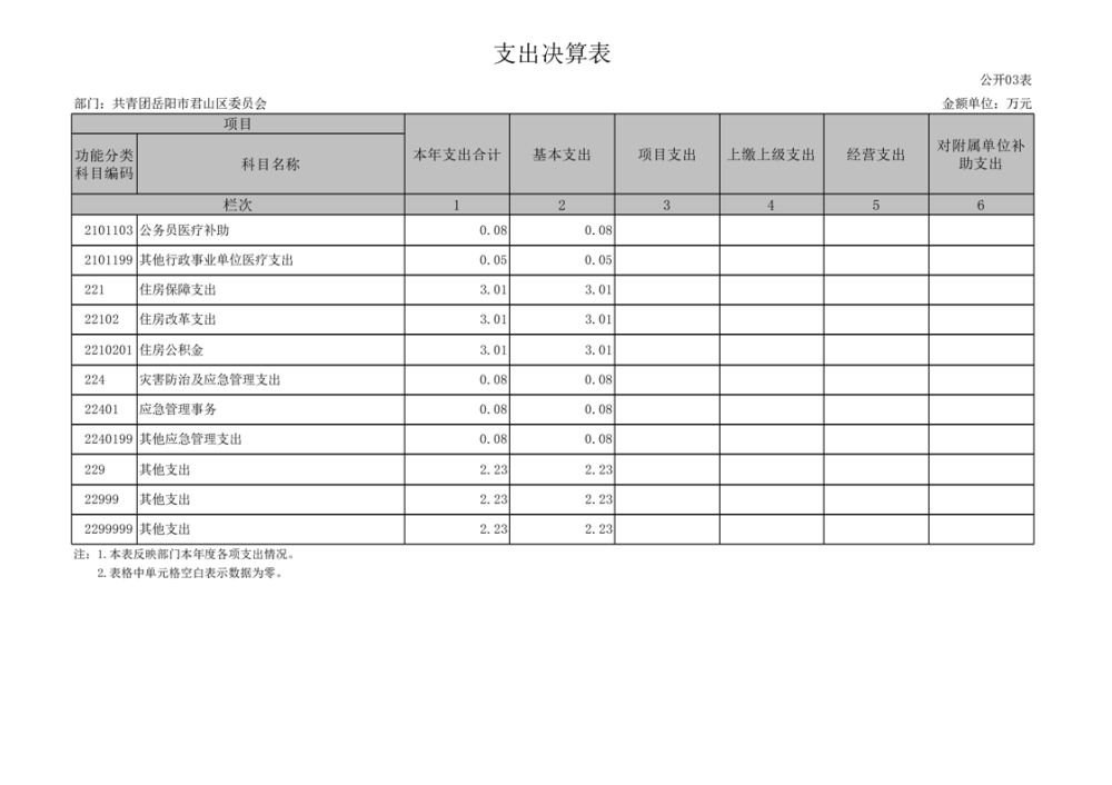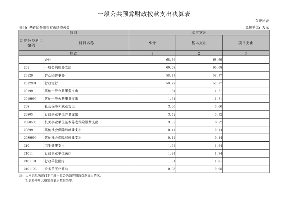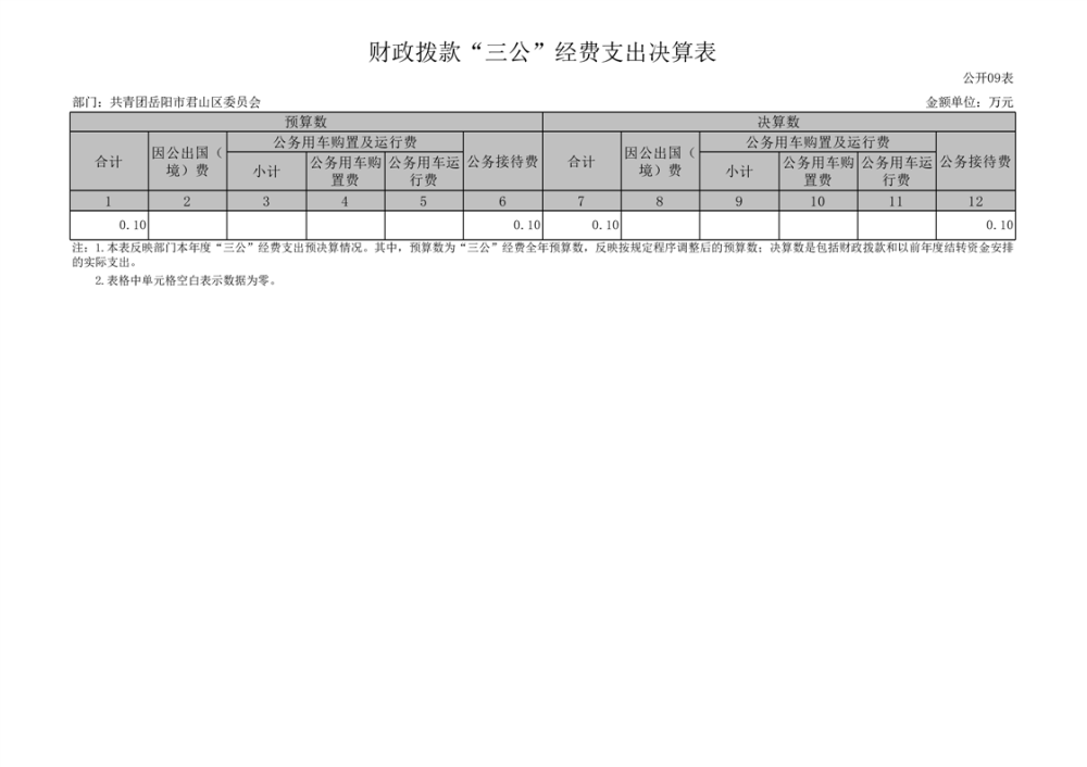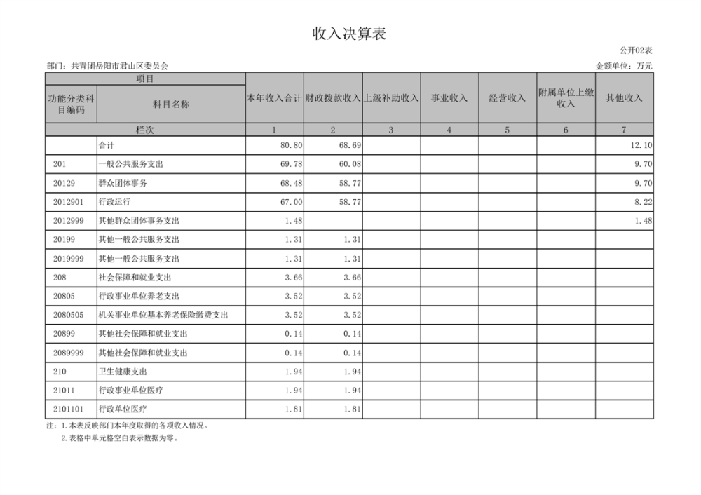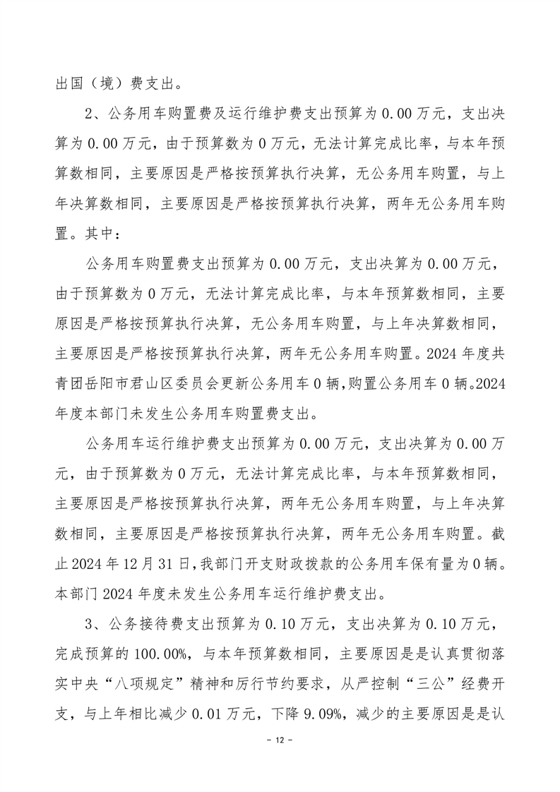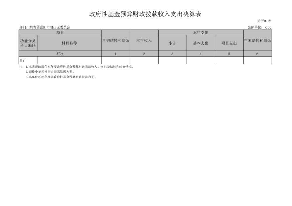 2024年度共青团岳阳市君山区委员会部门决算公开