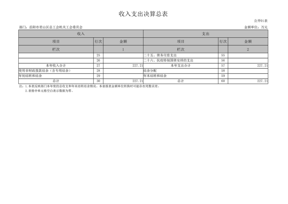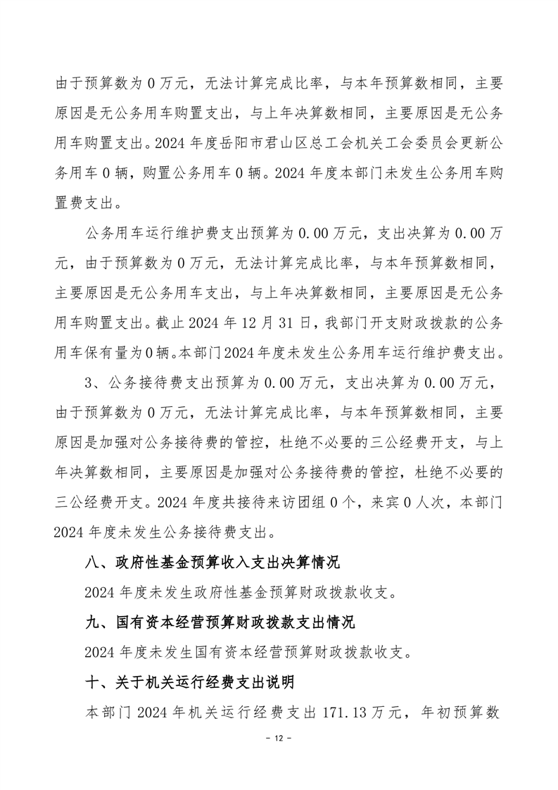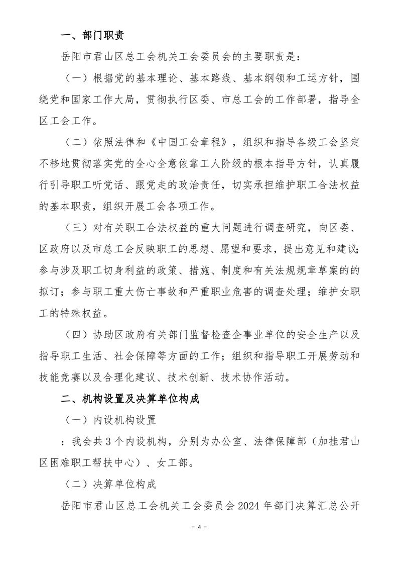 2024年度岳阳市君山区总工会机关工会委员会部门决算公开