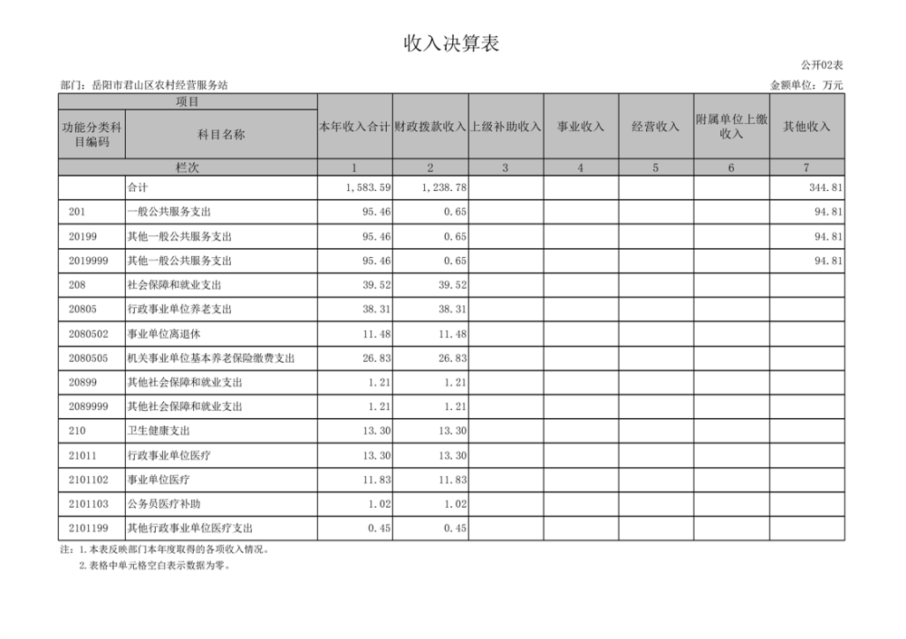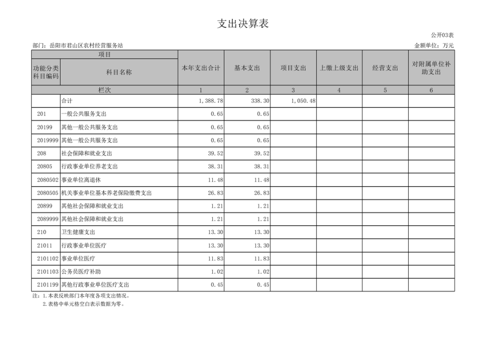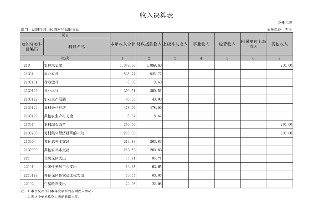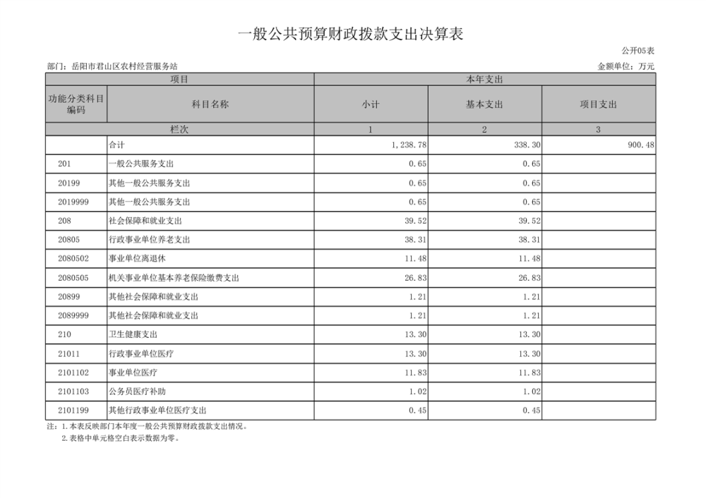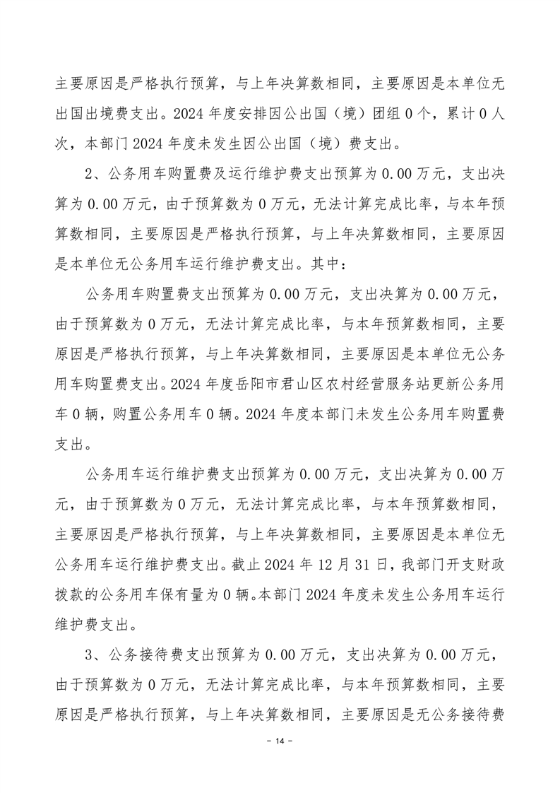 2024年度岳阳市君山区农村经营服务站部门决算公开