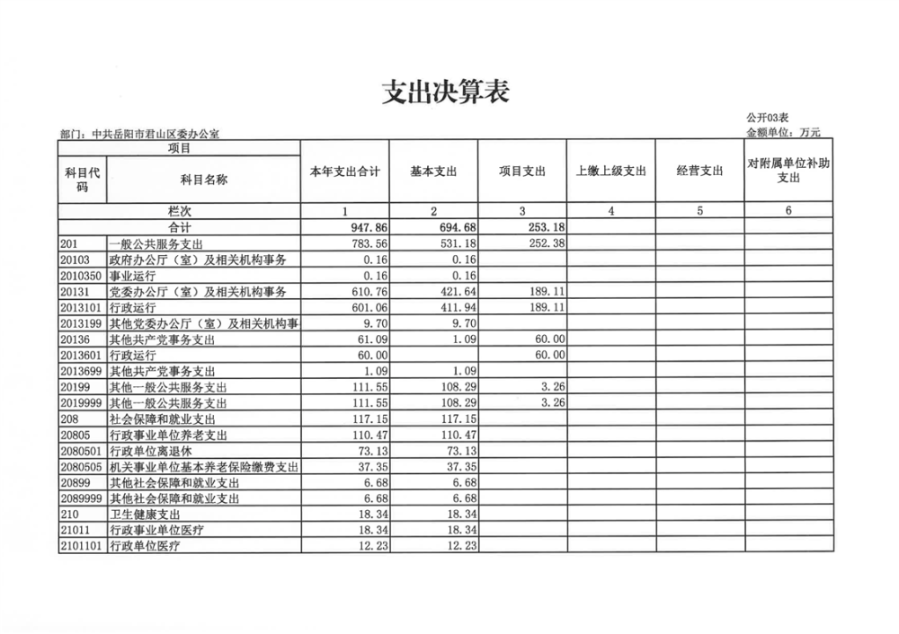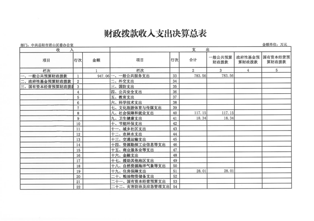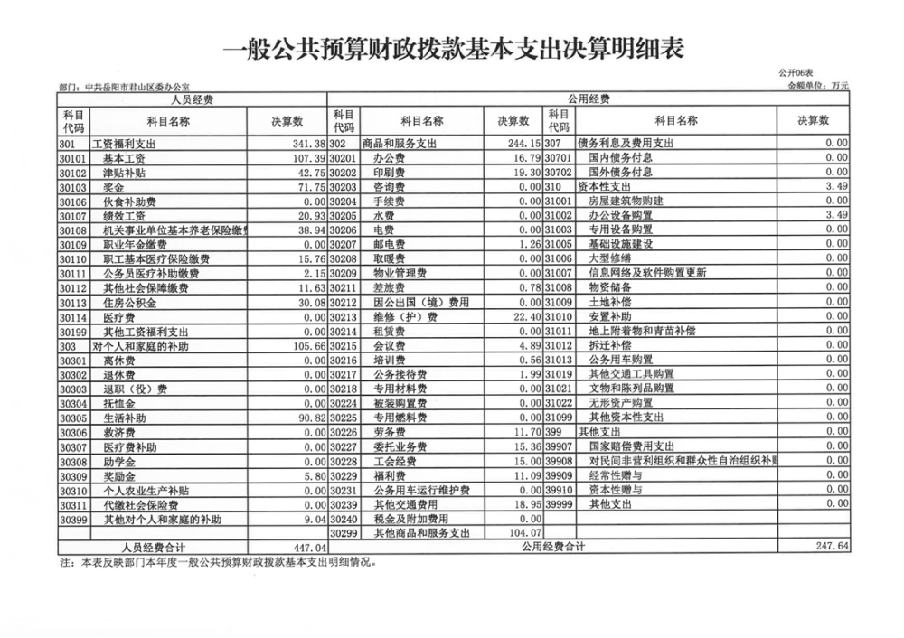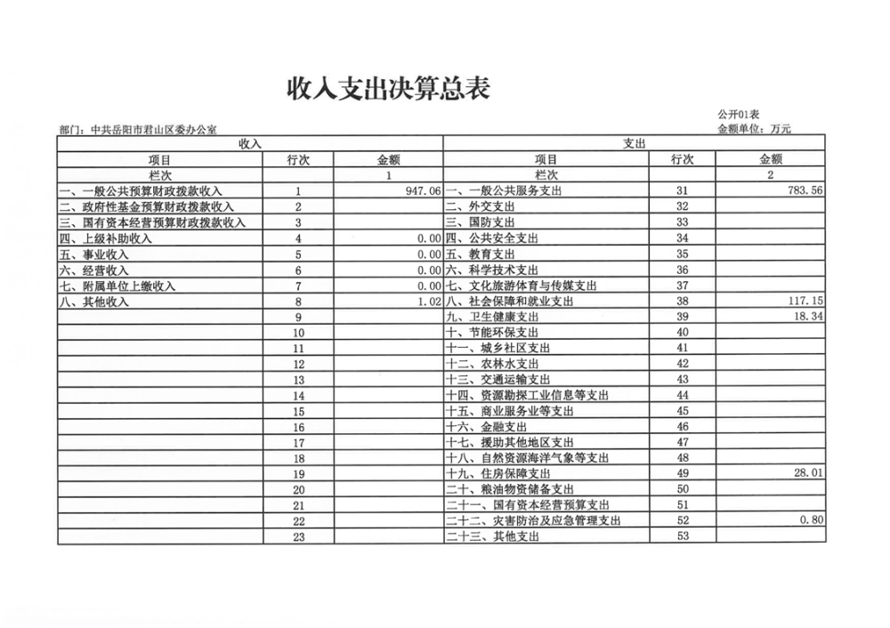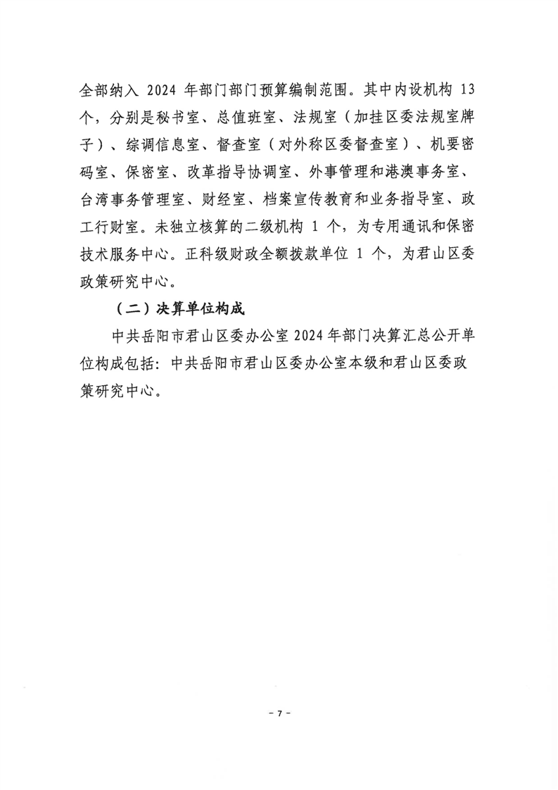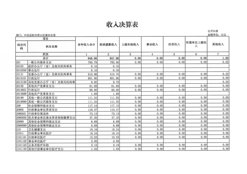 2024年度中共岳阳市君山区委办公室(汇总)部门决算公开