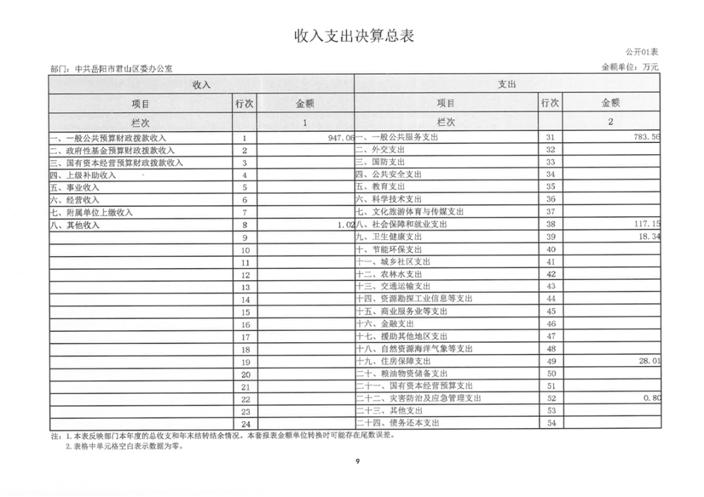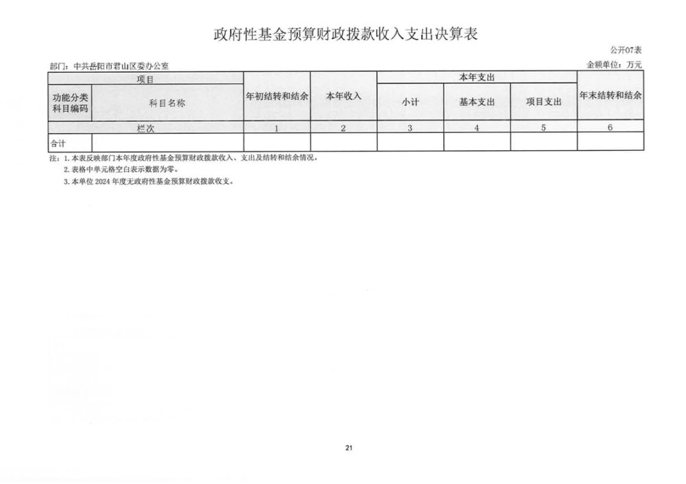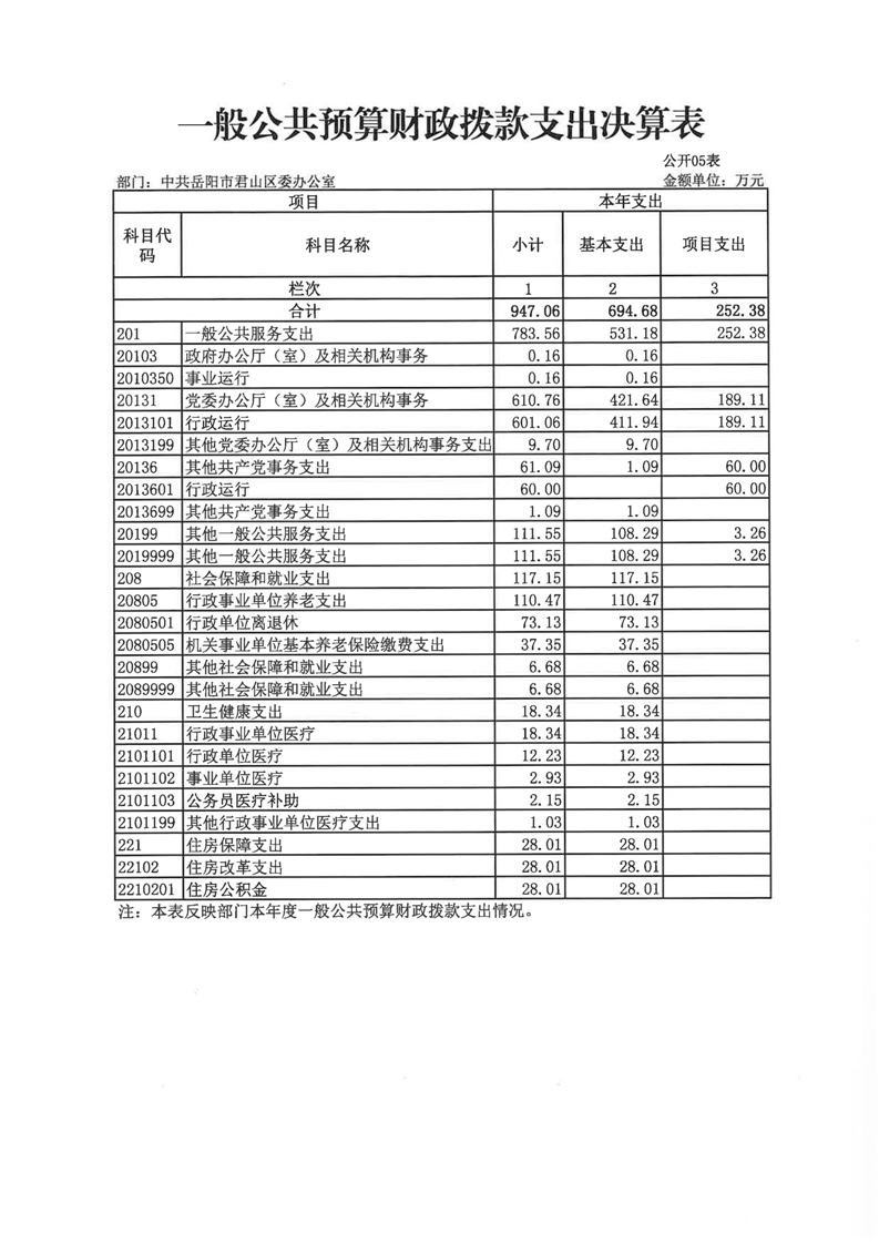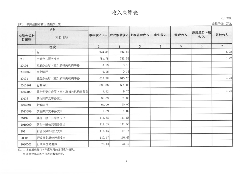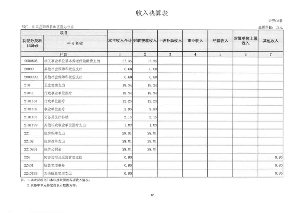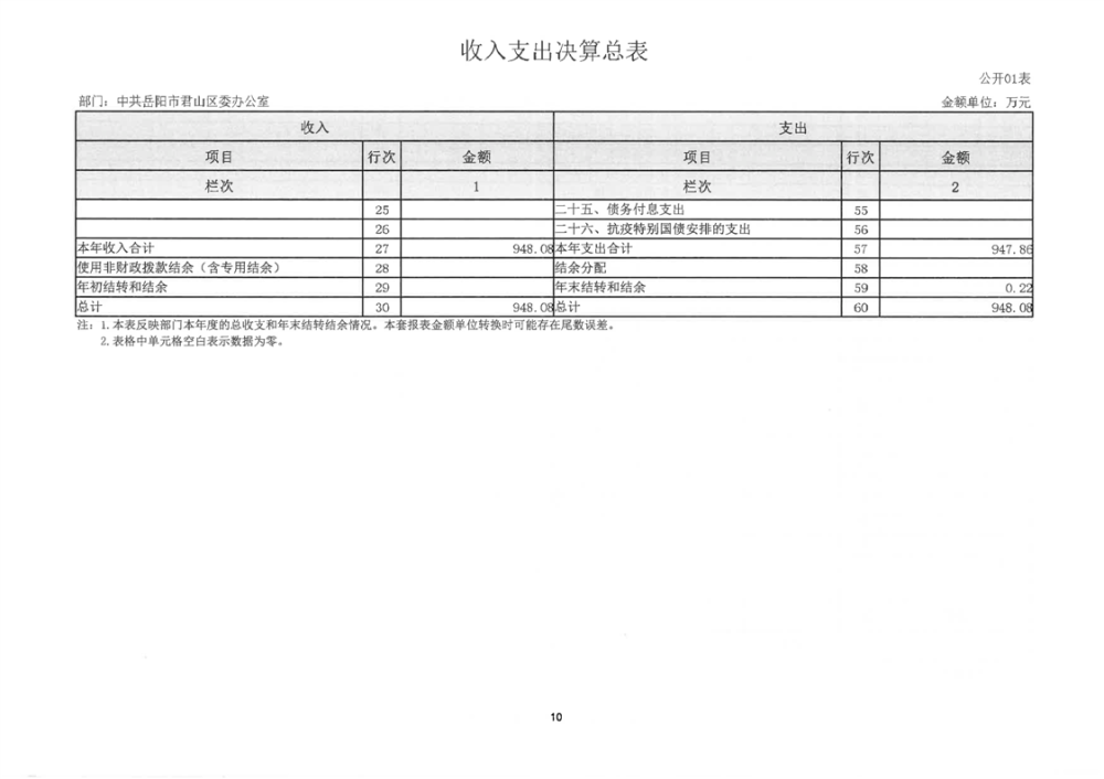 2024年度中共岳阳市君山区委办公室(汇总)部门决算公开