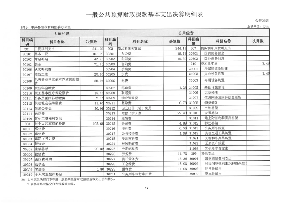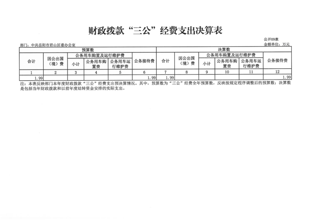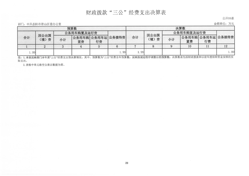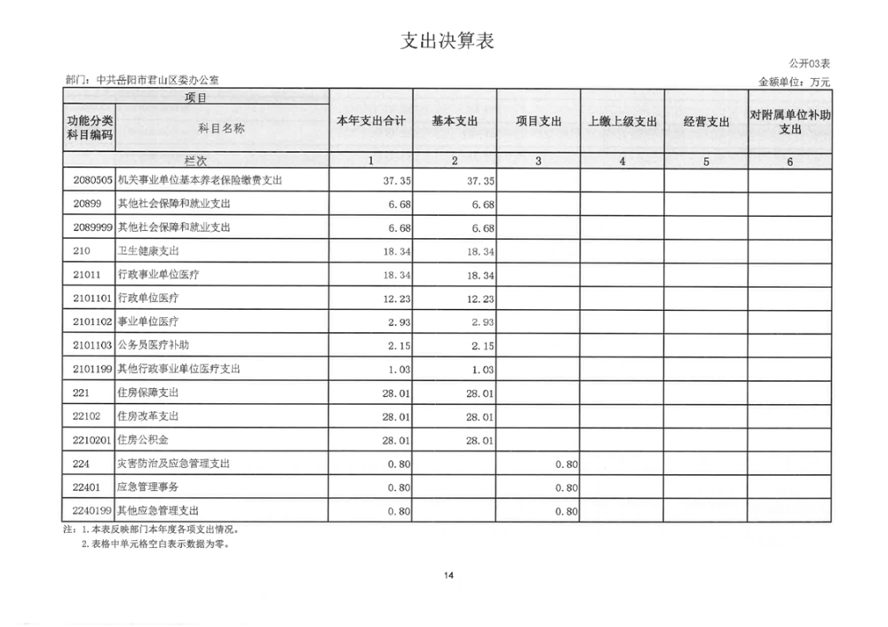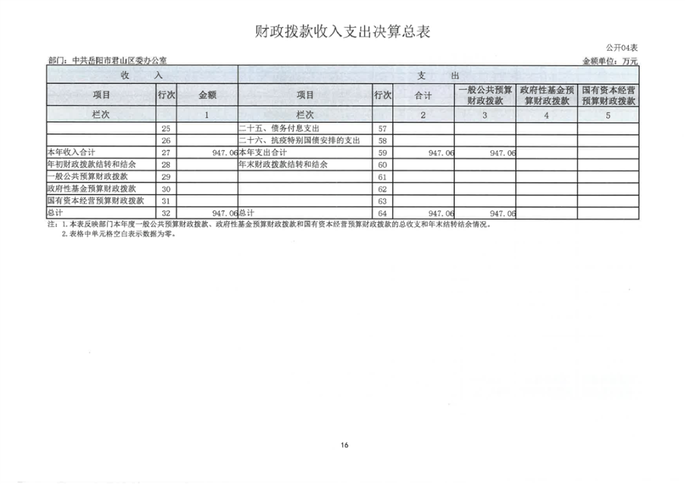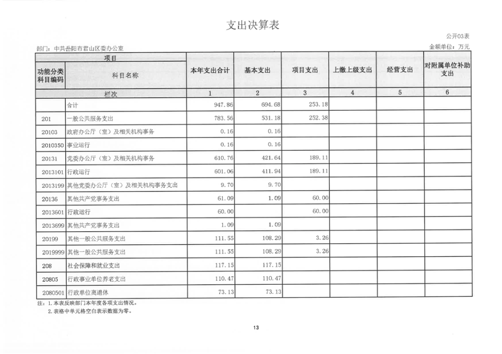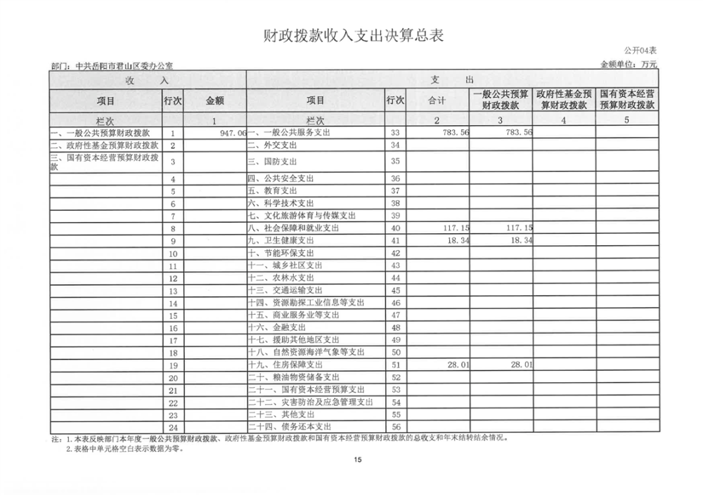 2024年度中共岳阳市君山区委办公室(汇总)部门决算公开