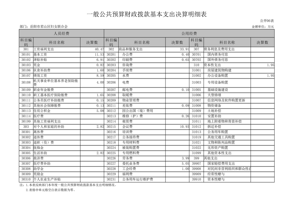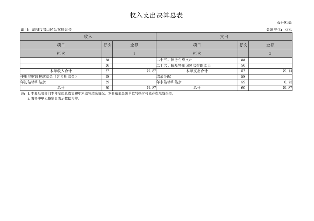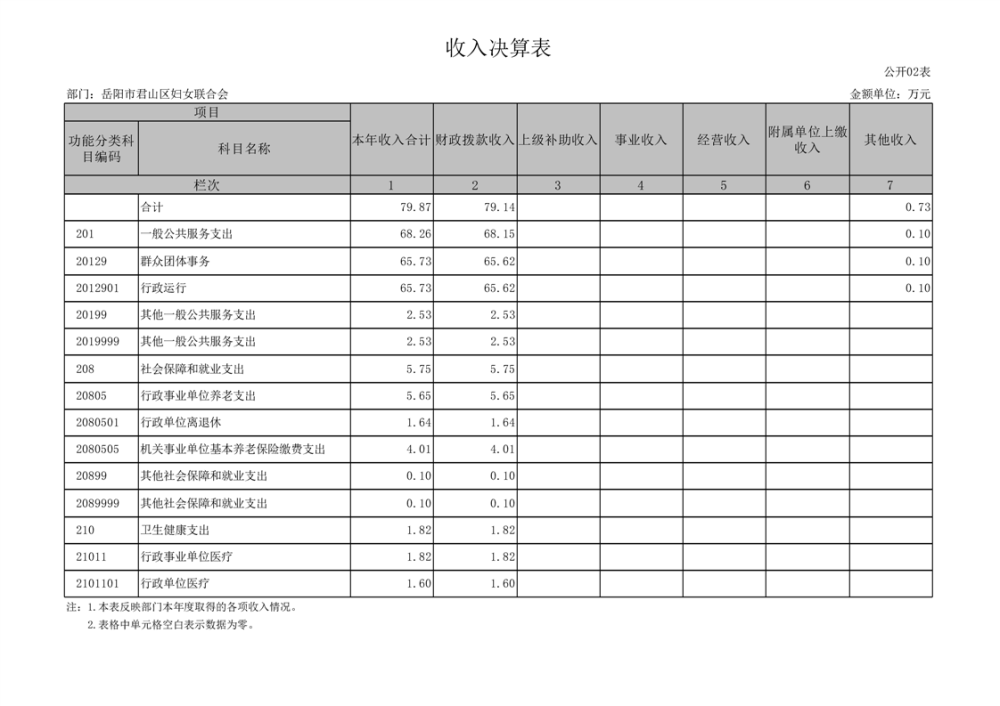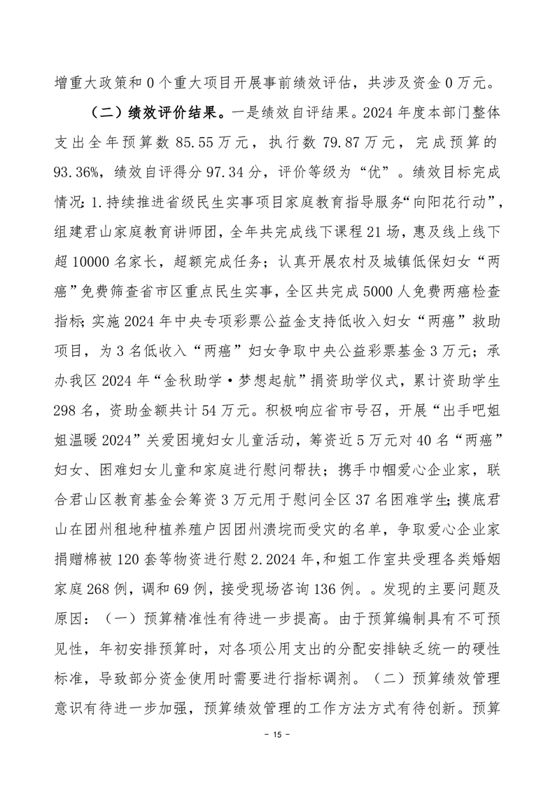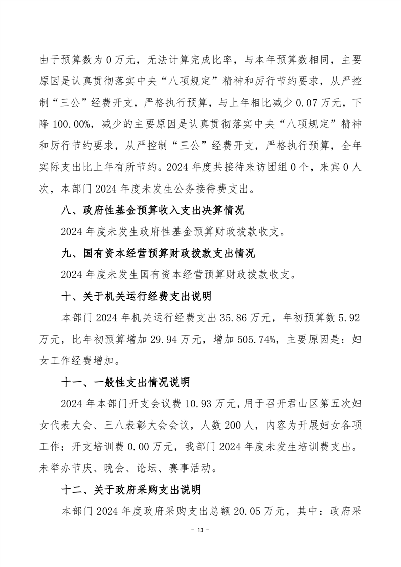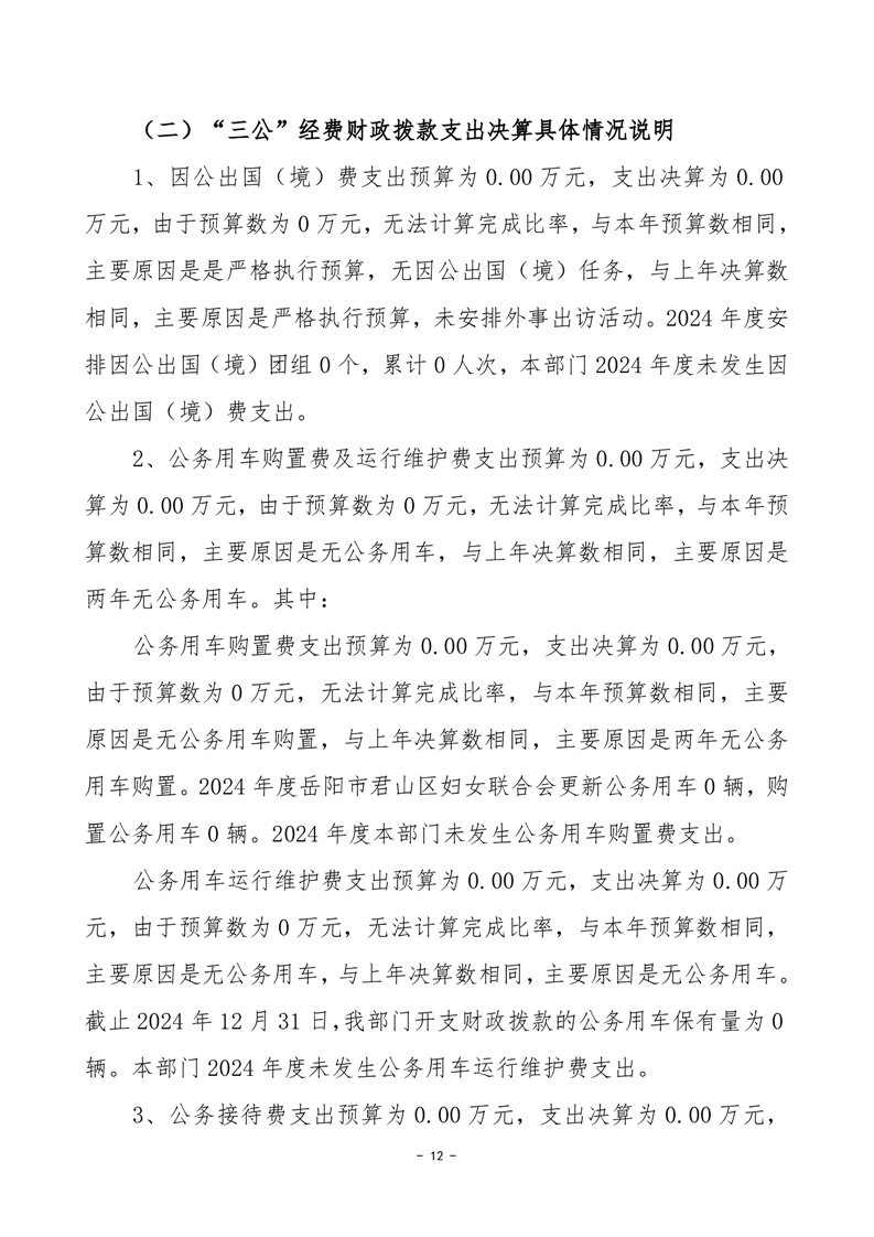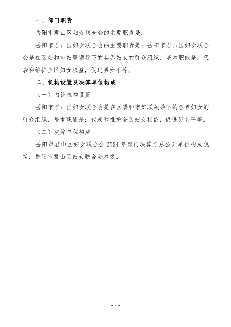 2024年度岳阳市君山区妇女联合会部门决算公开