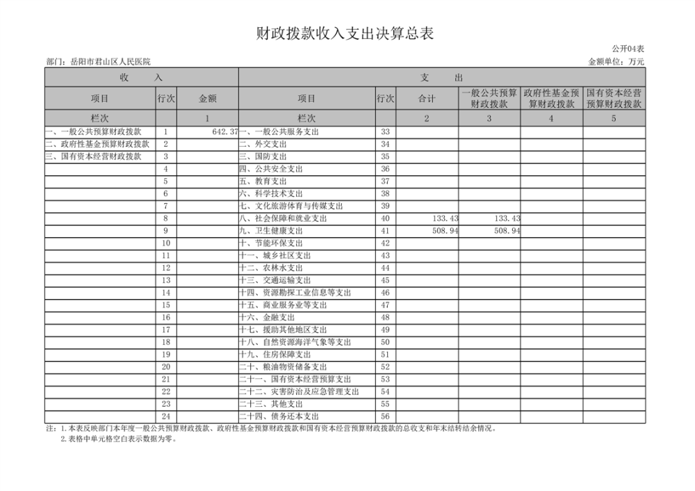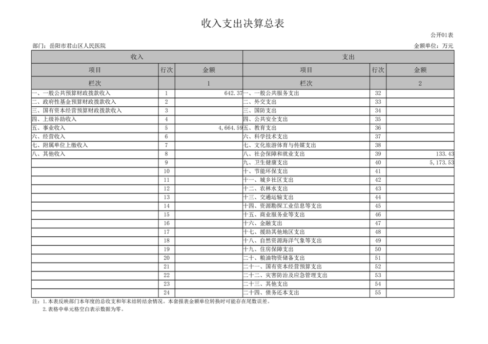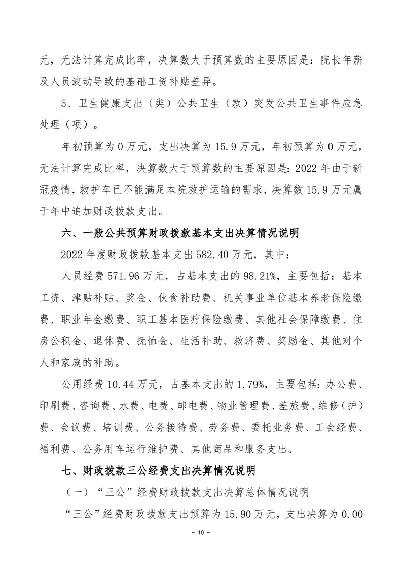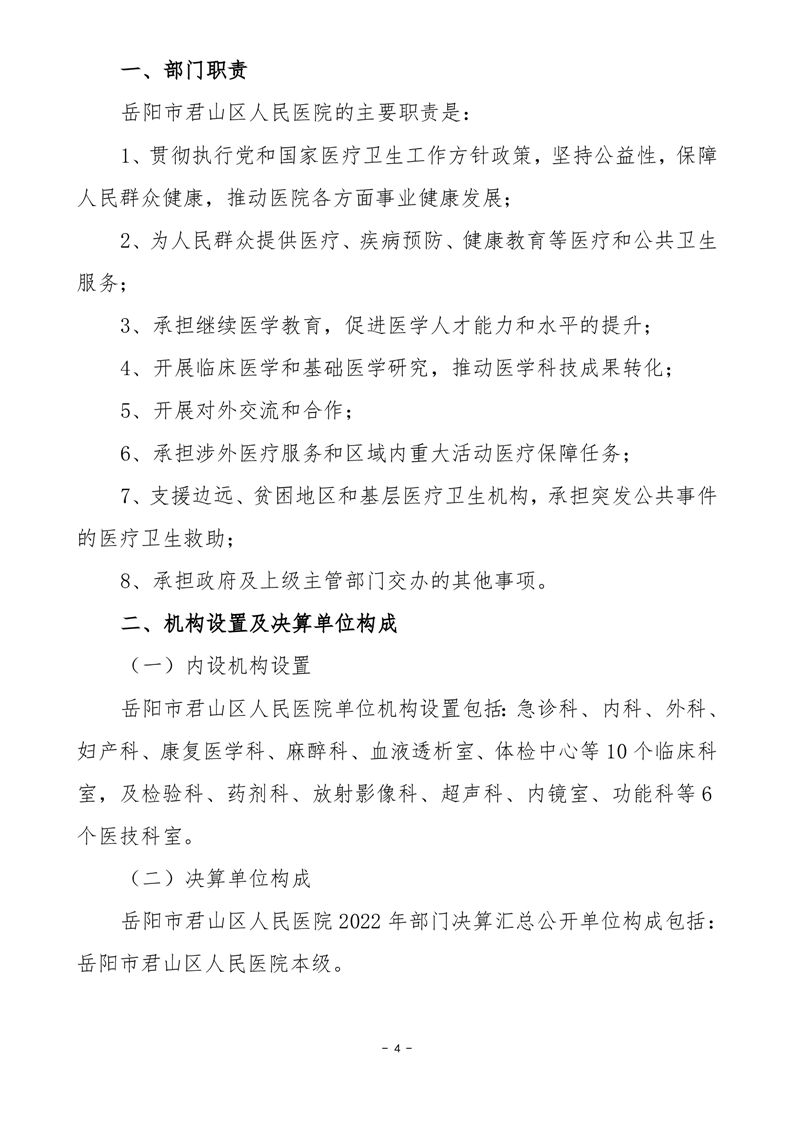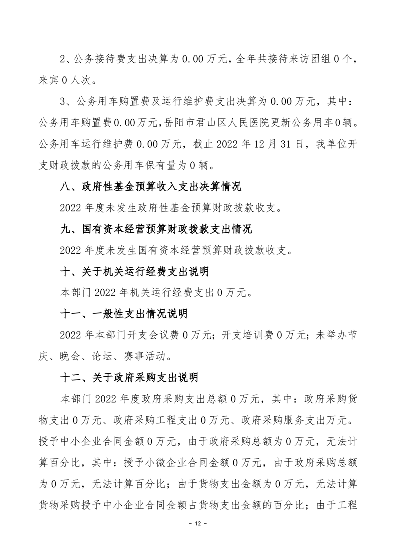 2022年度岳阳市君山区人民医院部门决算公开说明