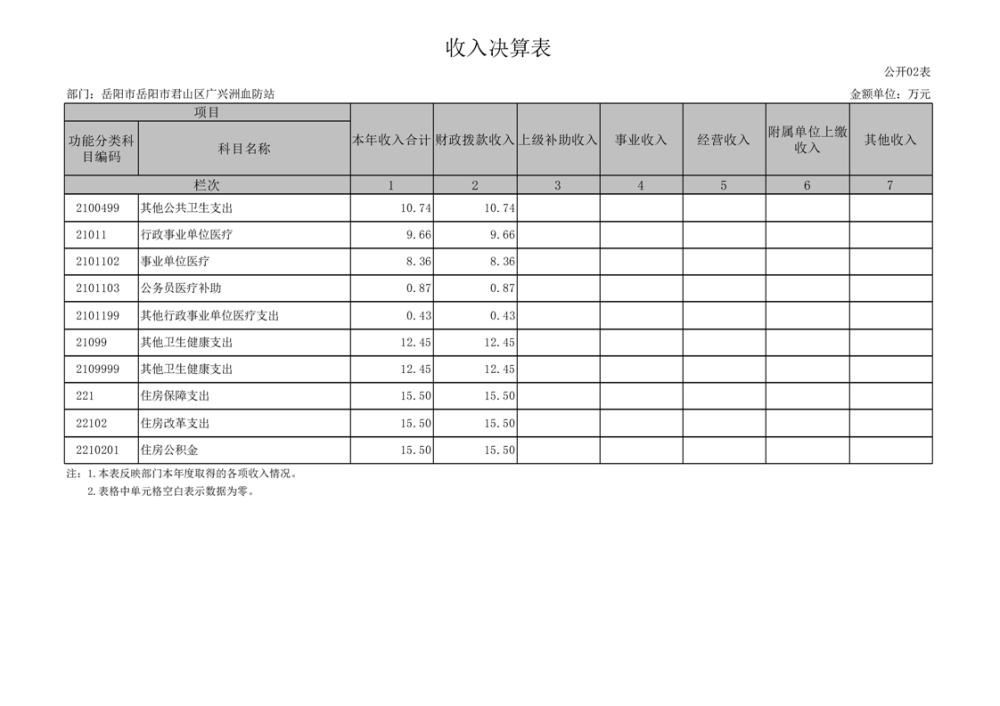 2024年度岳阳市君山区广兴洲血防站部门决算公开