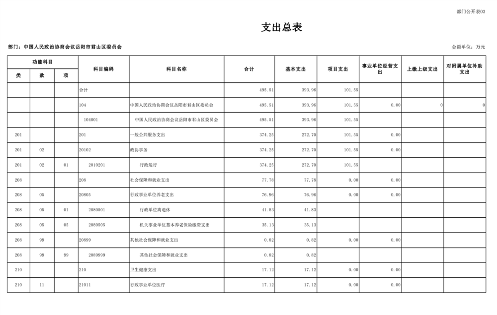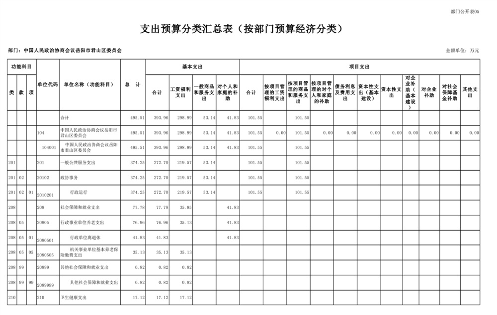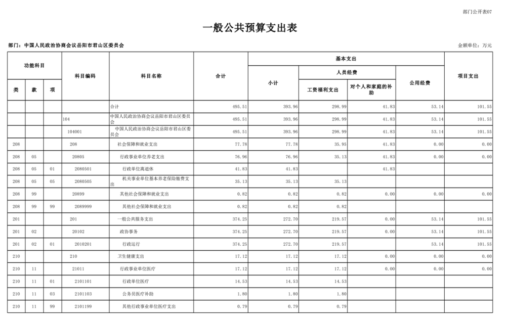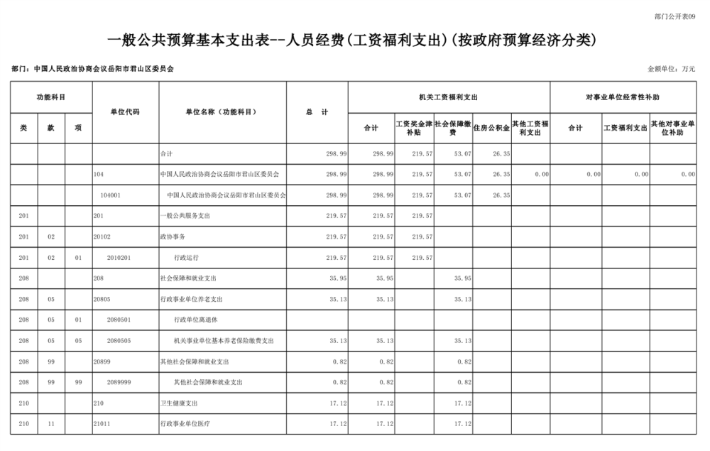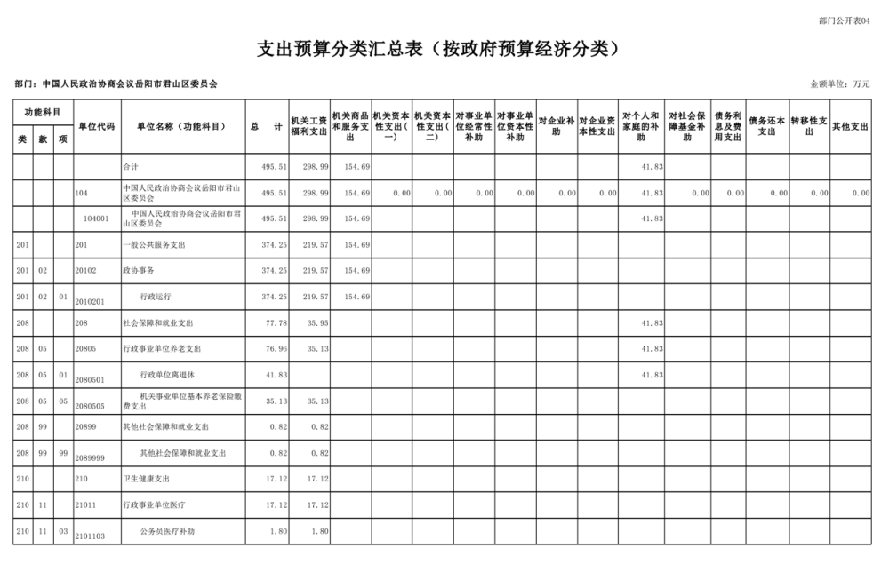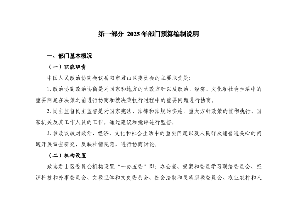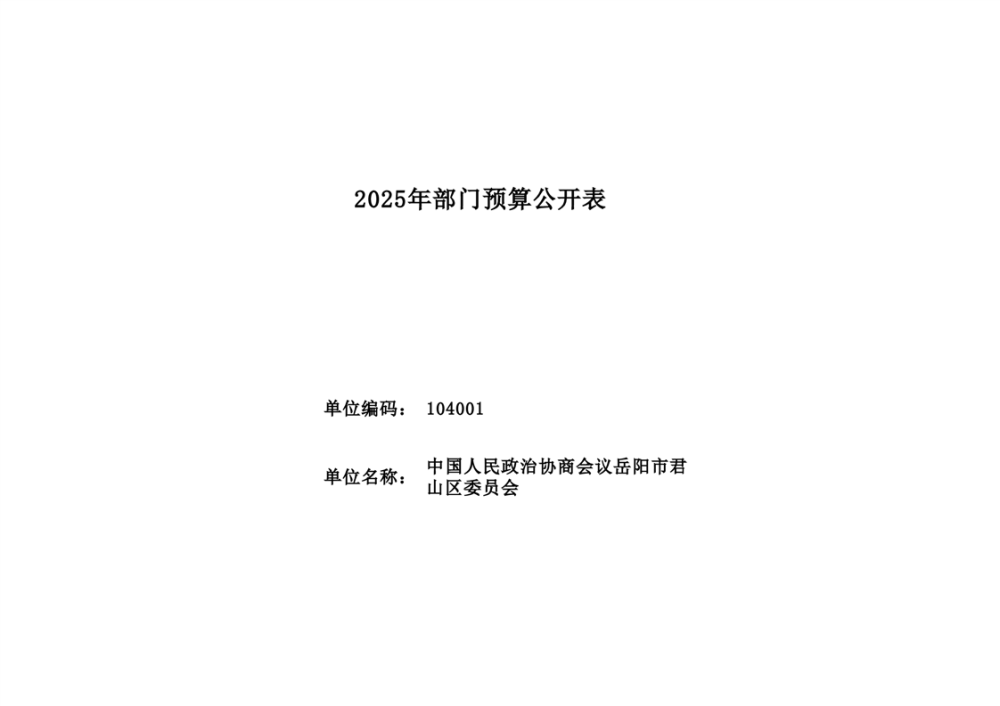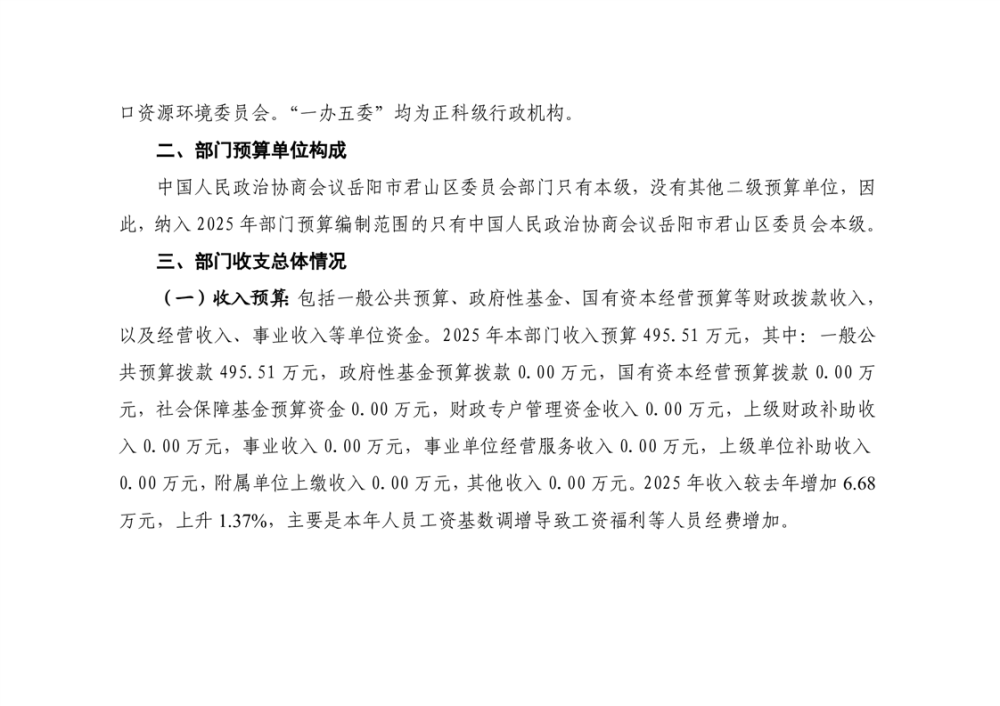 2025年中国人民政治协商会议岳阳市君山区委员会部门预算公开