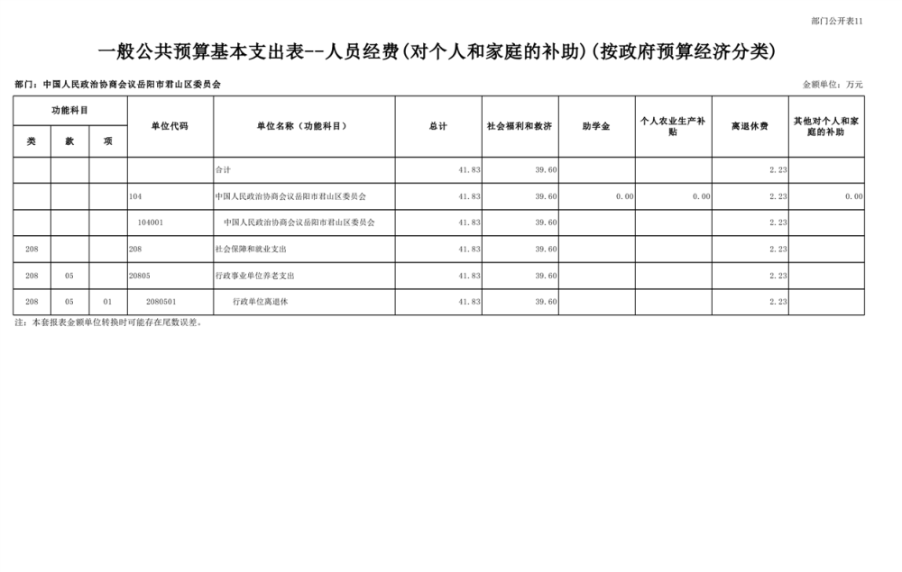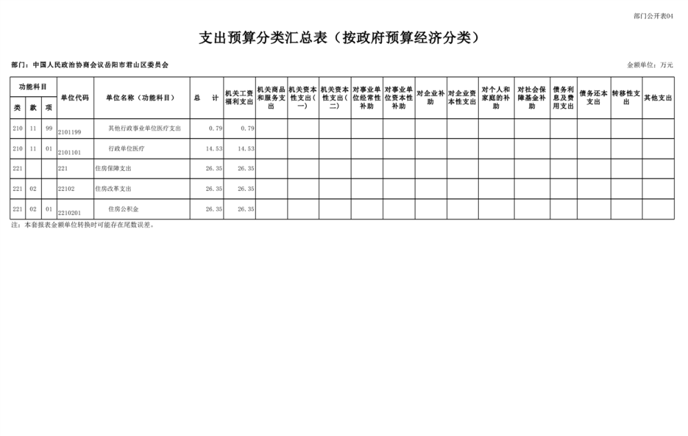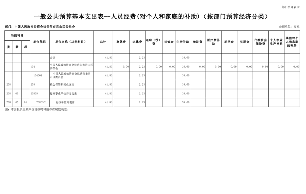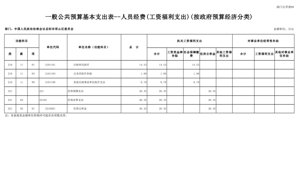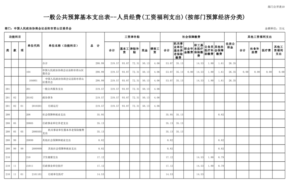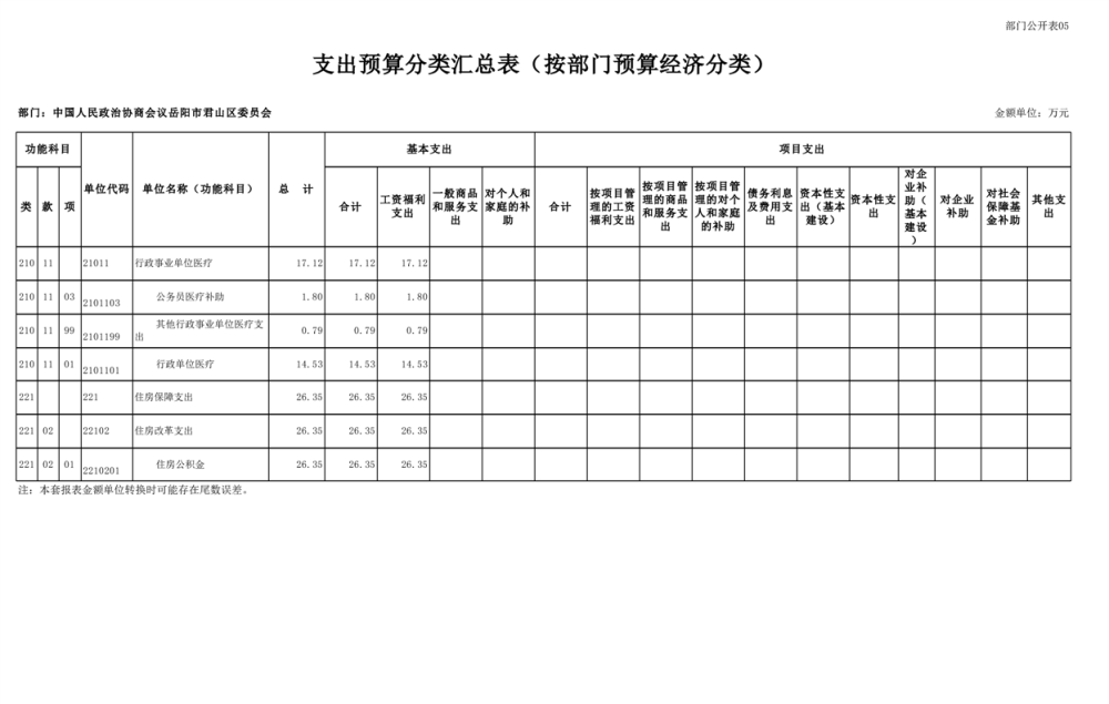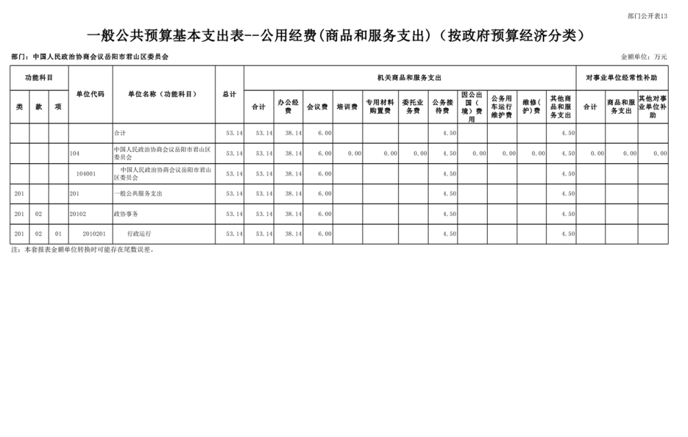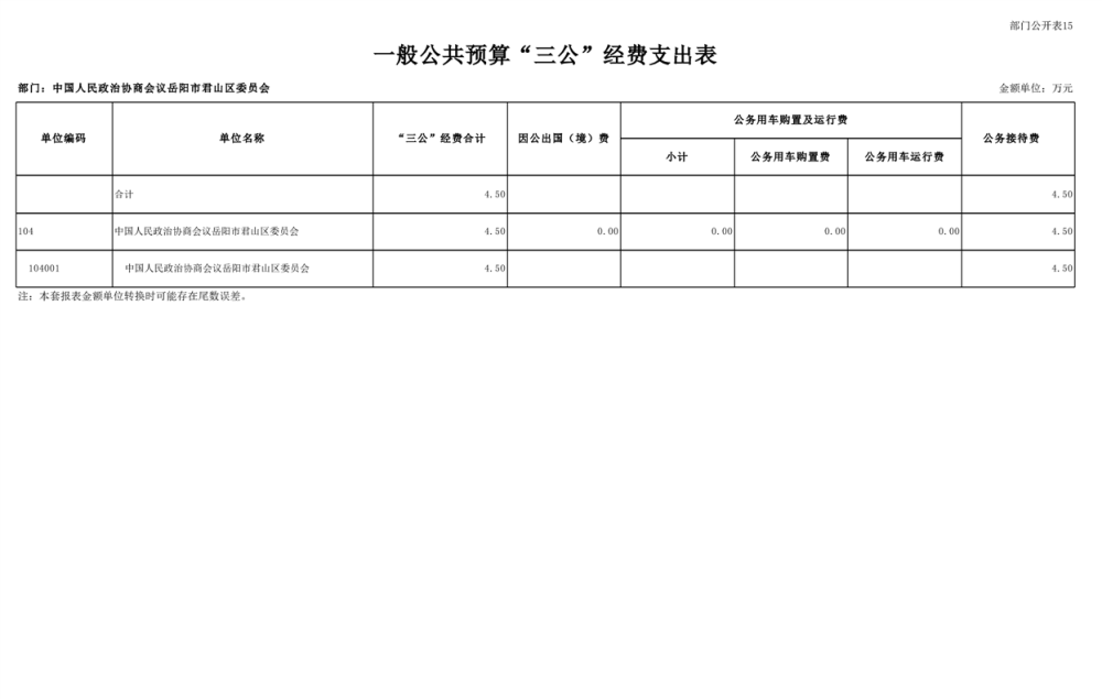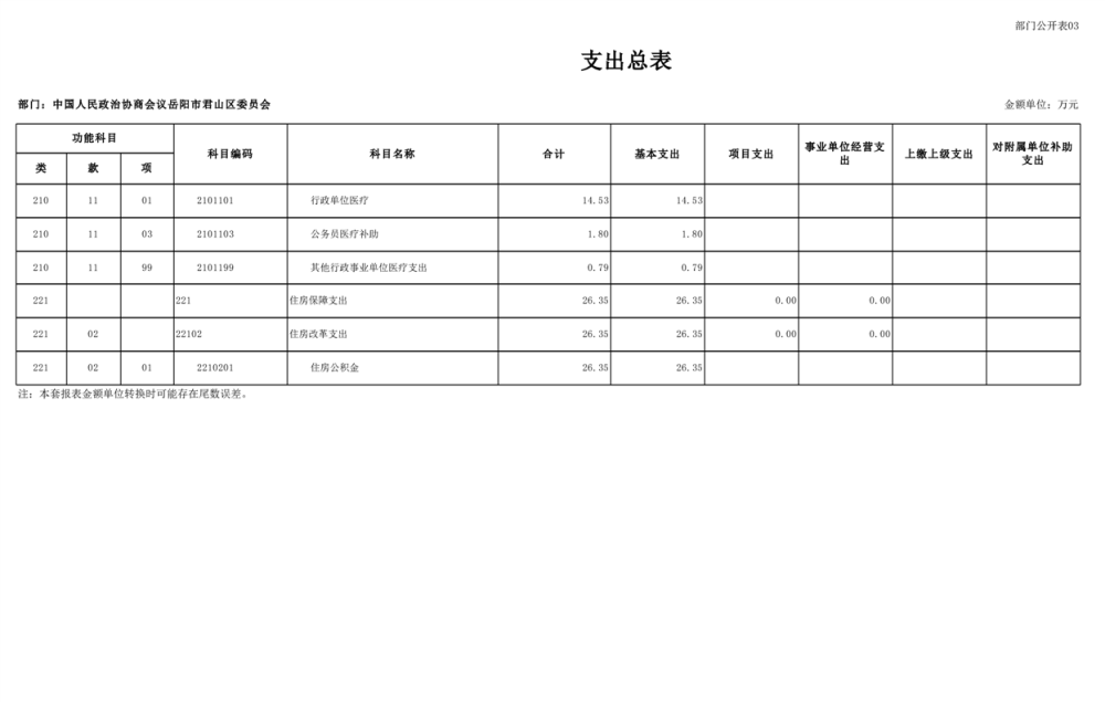 2025年中国人民政治协商会议岳阳市君山区委员会部门预算公开