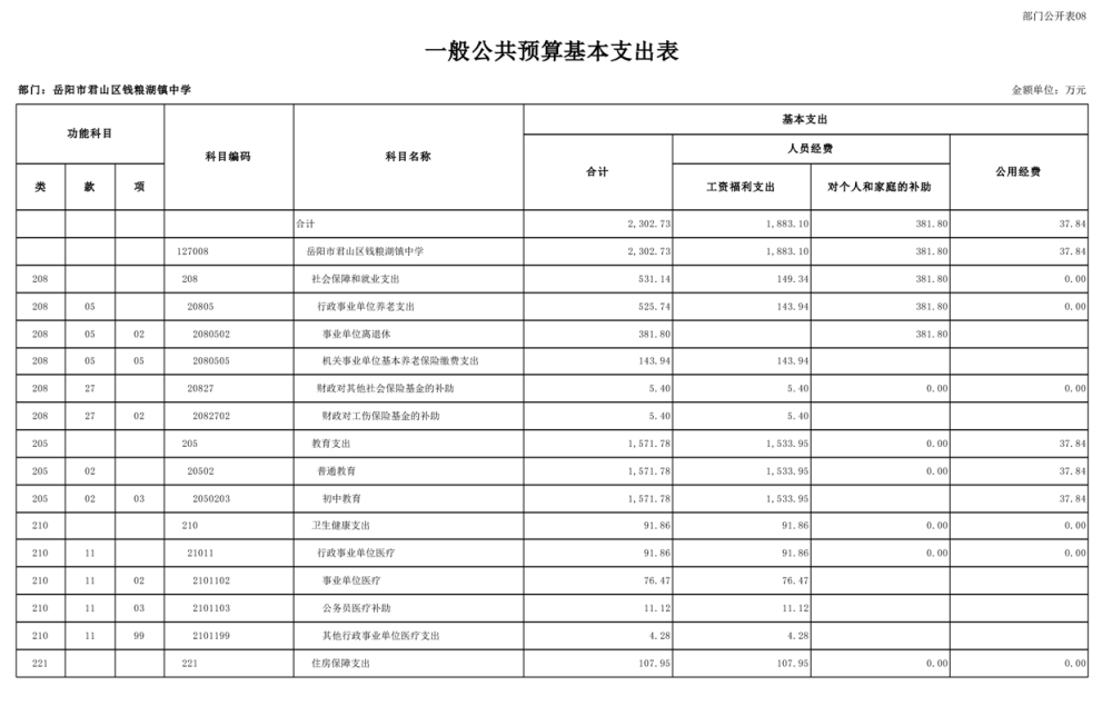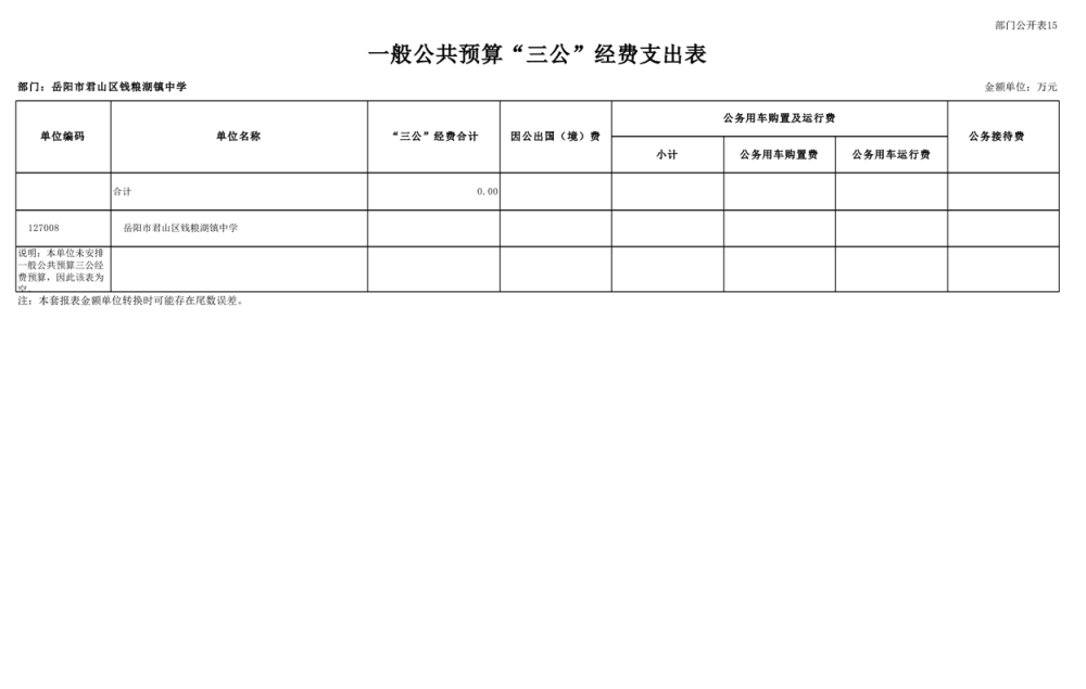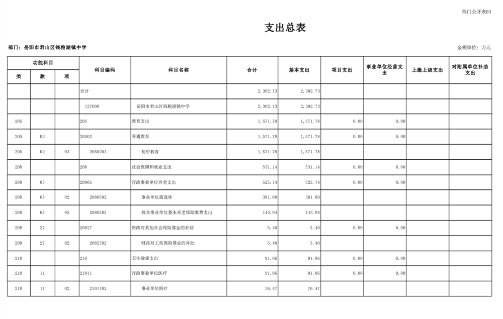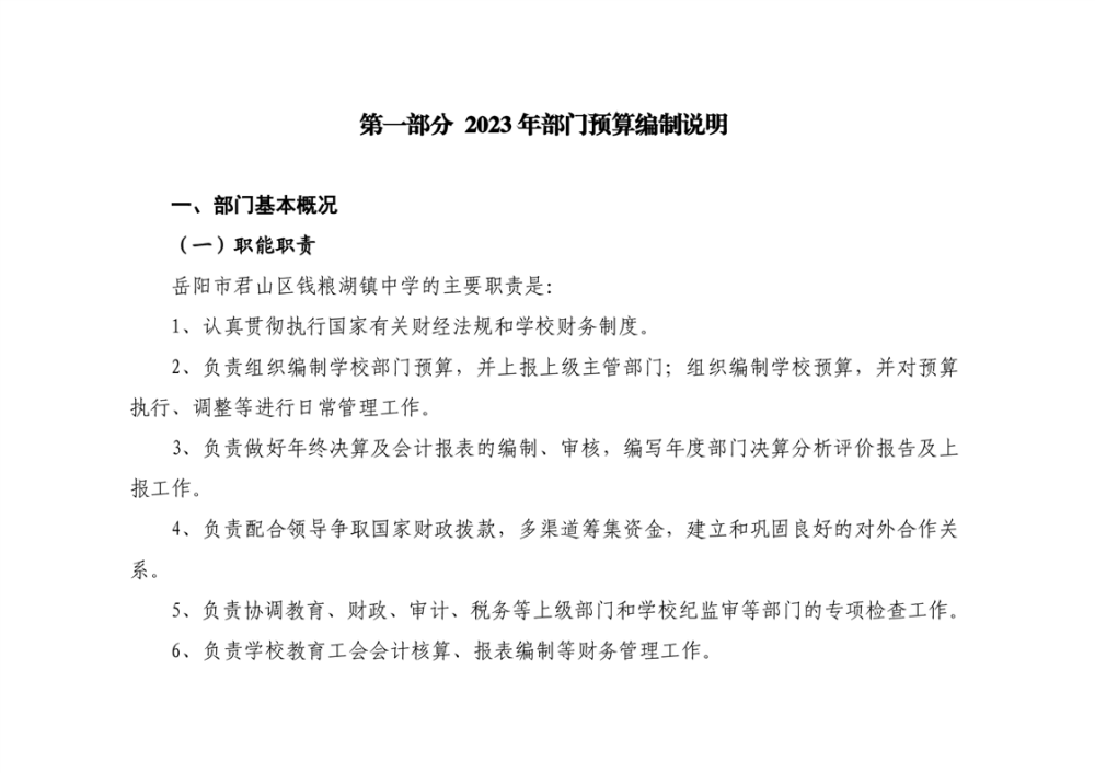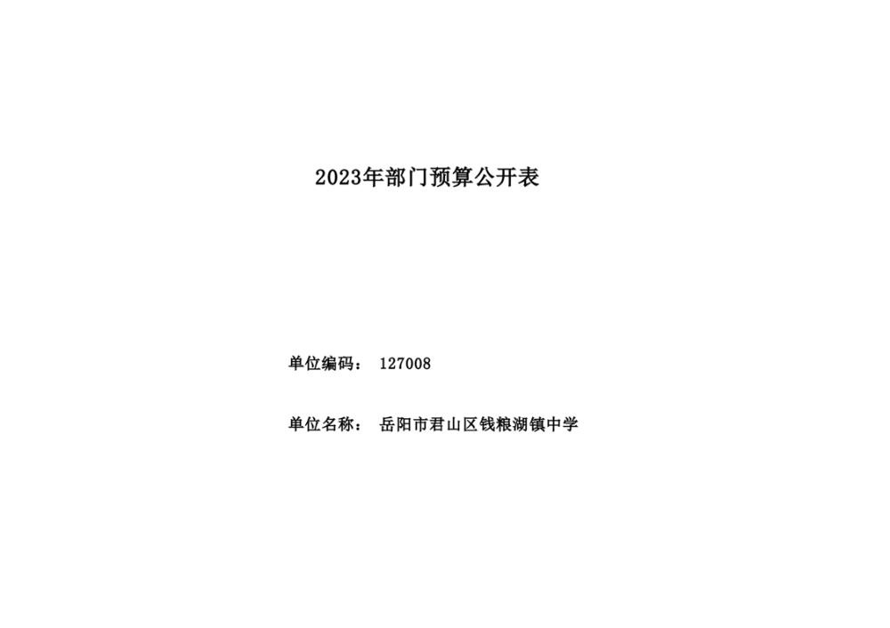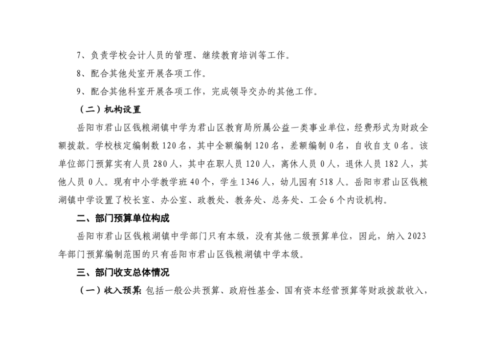 2023年君山区钱粮湖镇中学预算公开说明