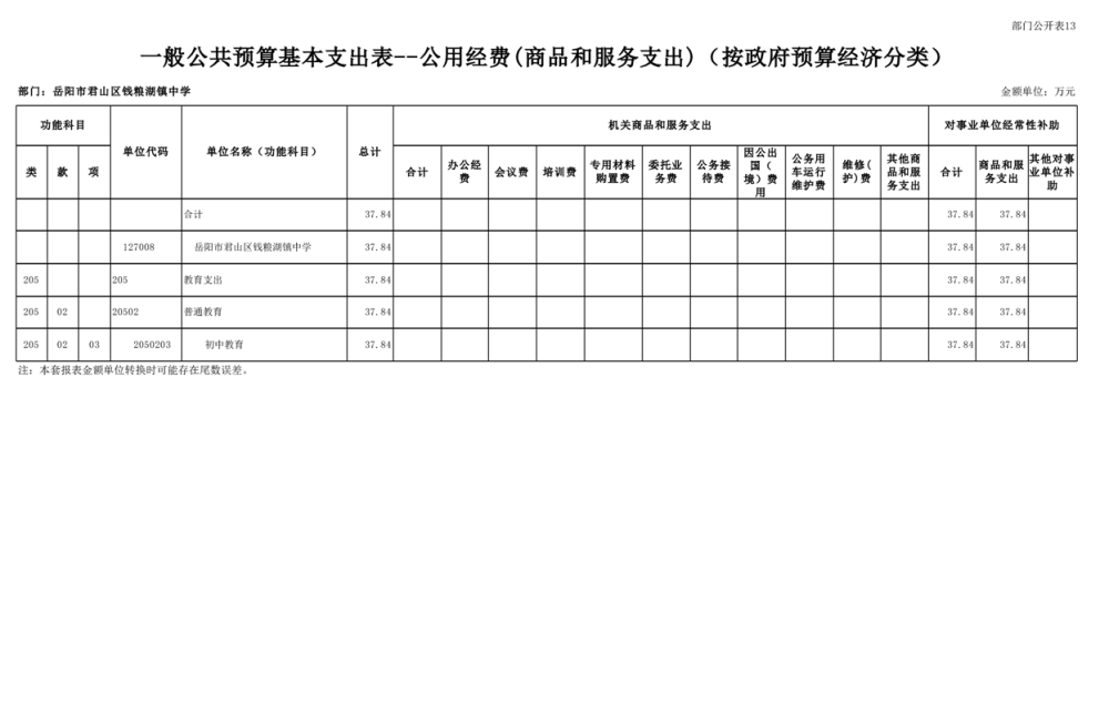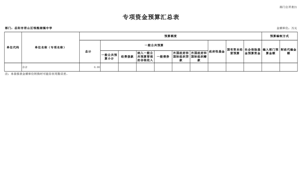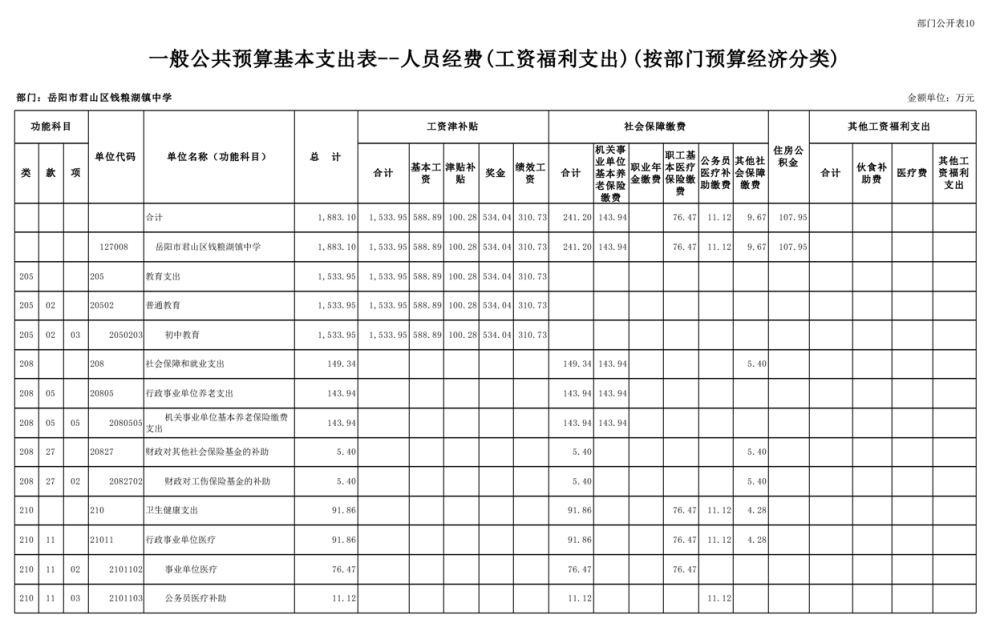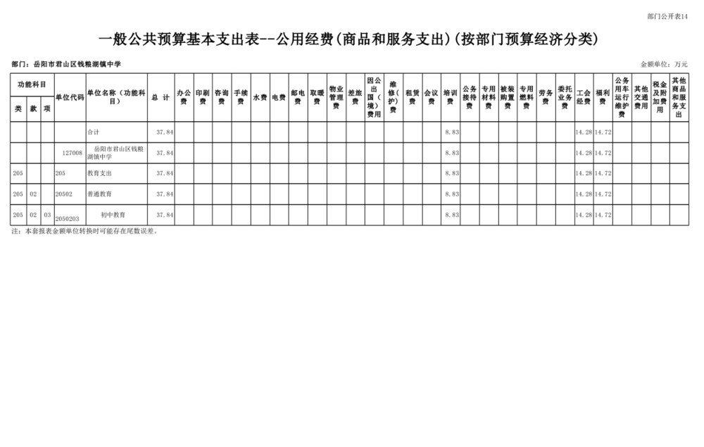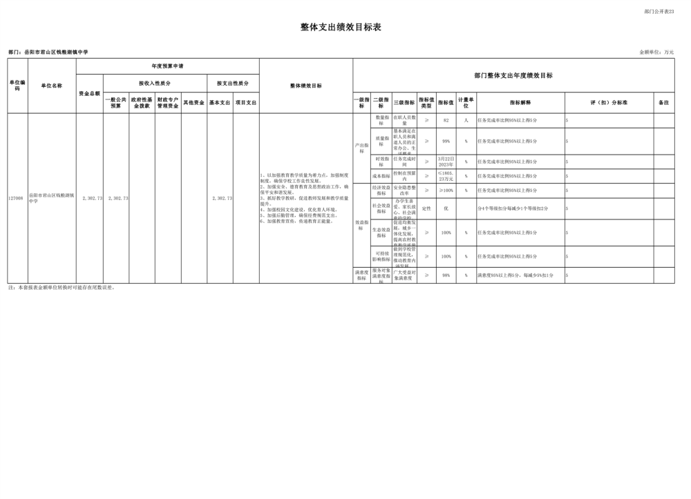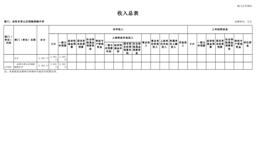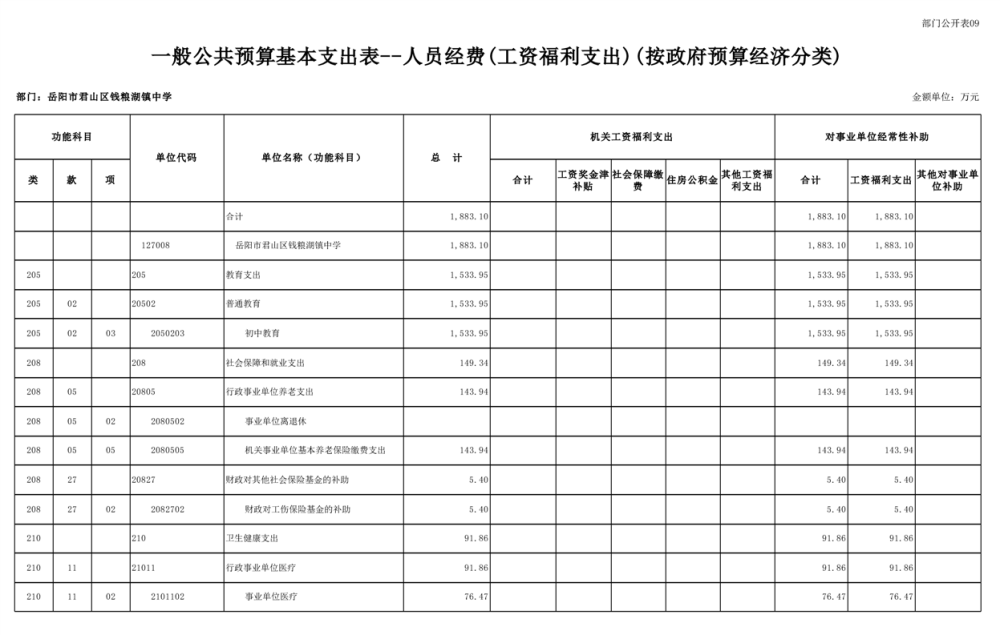 2023年君山区钱粮湖镇中学预算公开说明