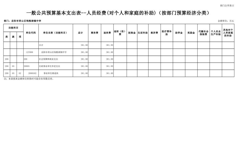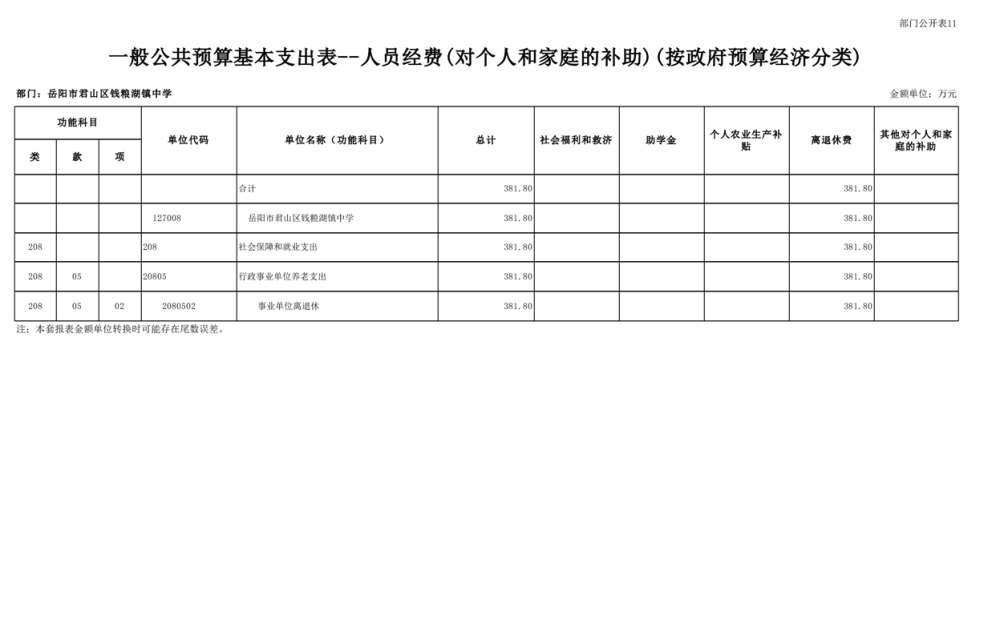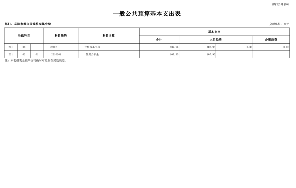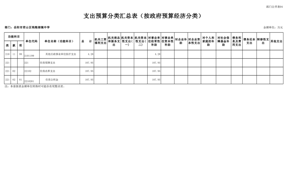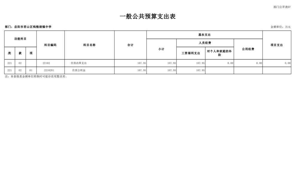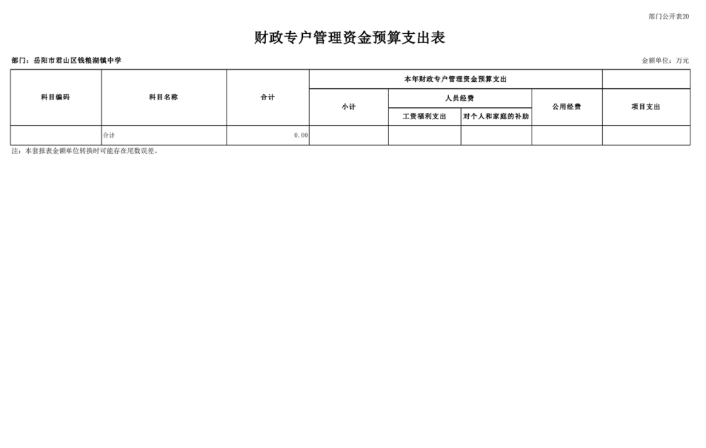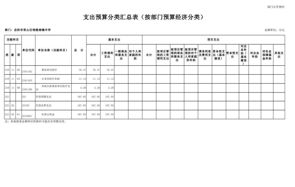 2023年君山区钱粮湖镇中学预算公开说明