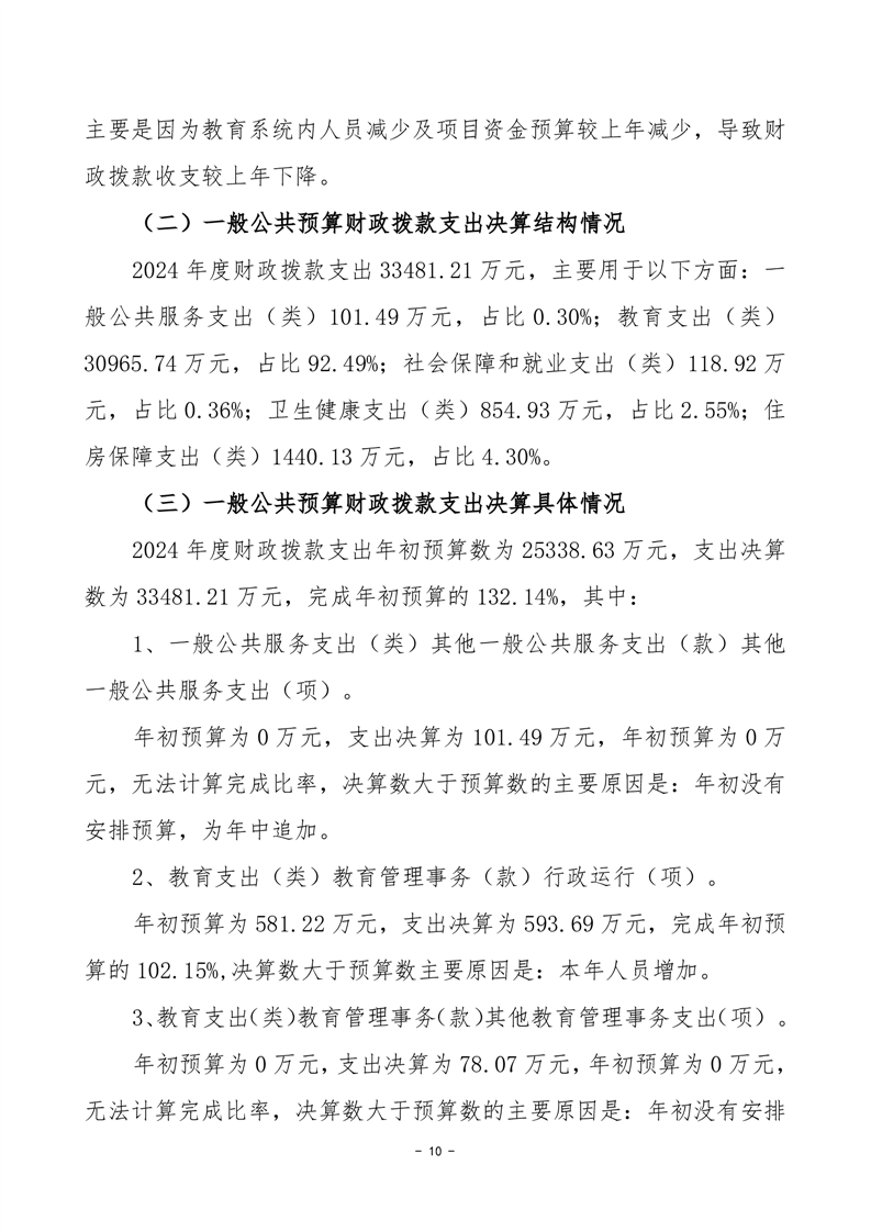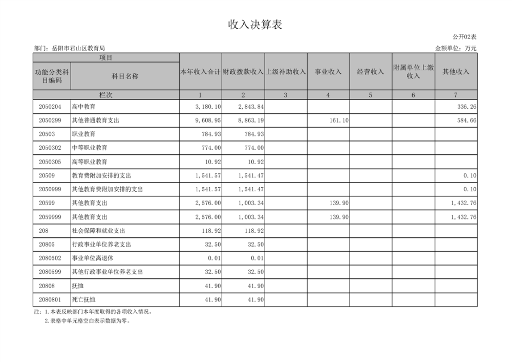 2024年度岳阳市君山区教育局(汇总)部门决算公开