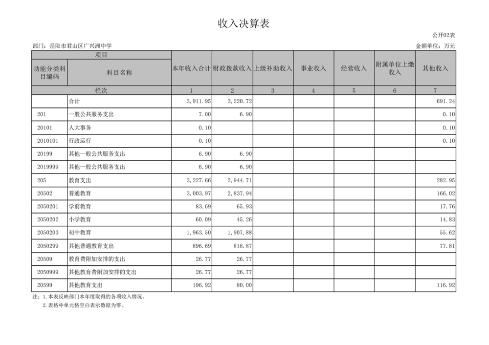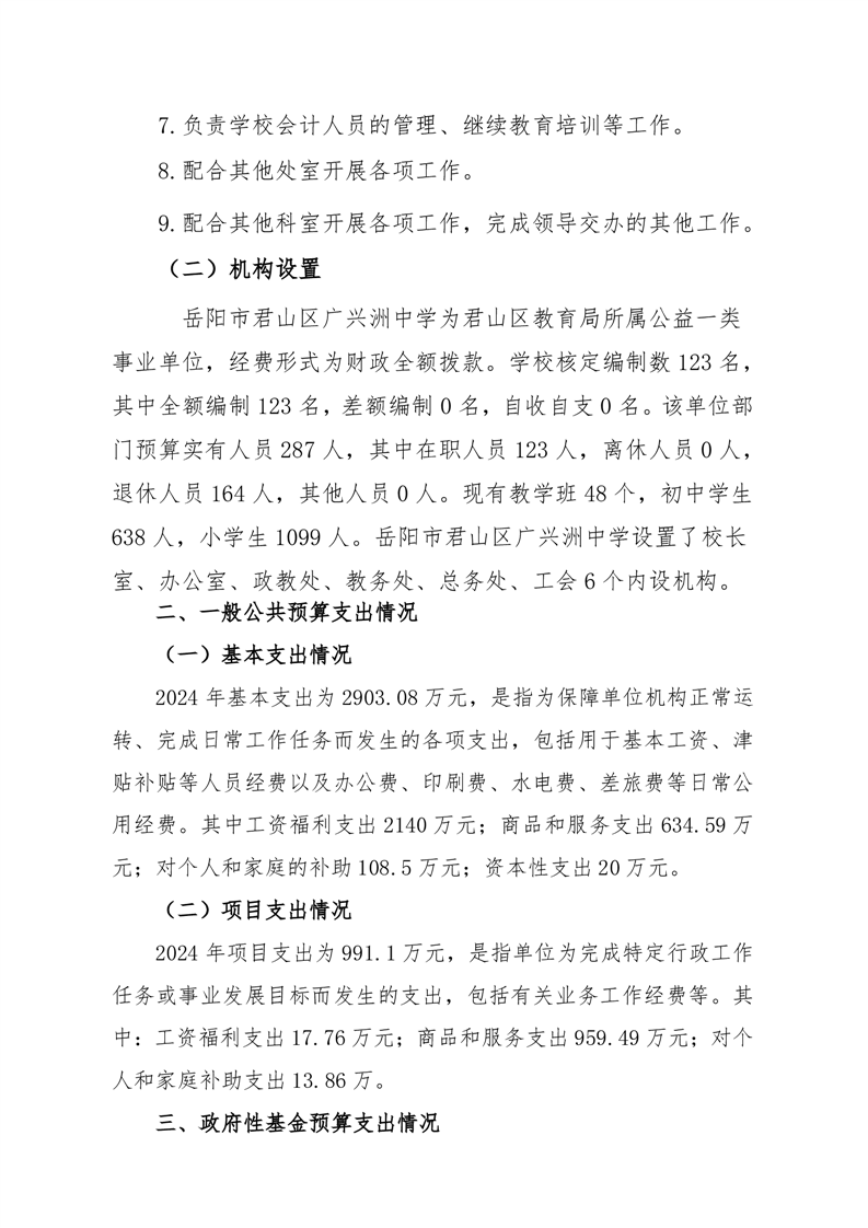 2024年度岳阳市君山区广兴洲中学部门决算公开