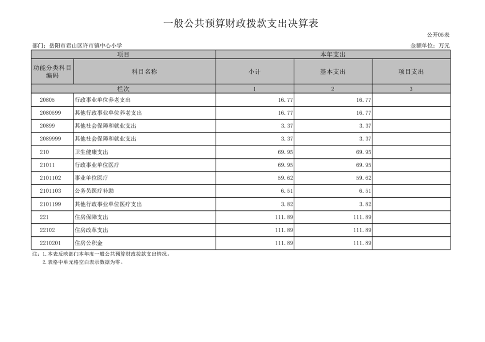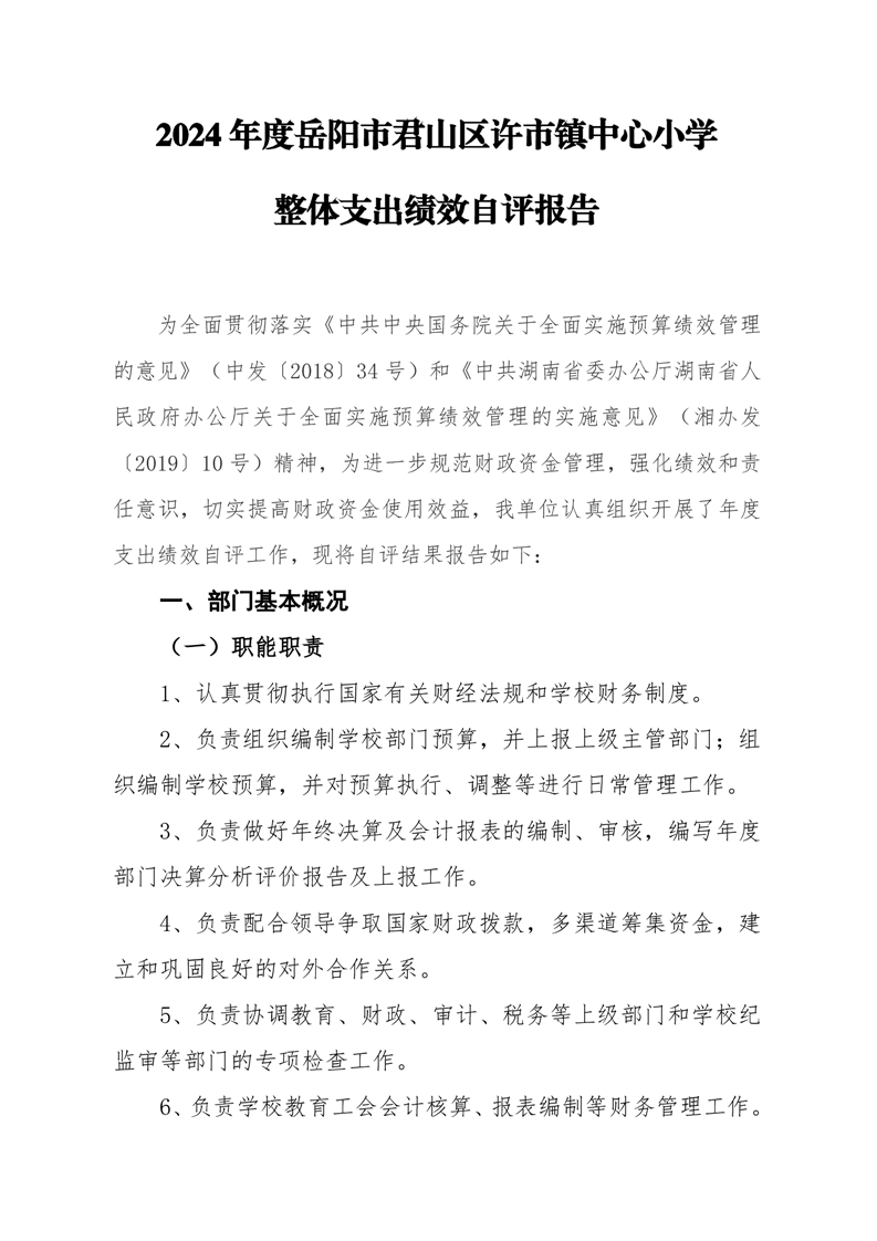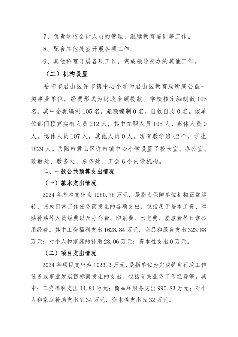 2024年度岳阳市君山区许市镇中心小学部门决算公开