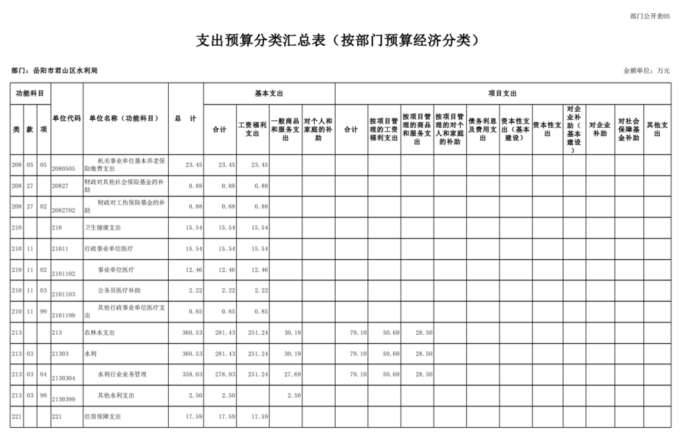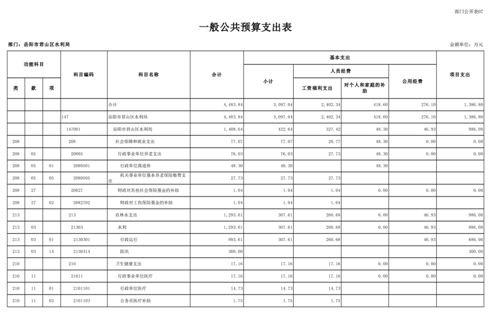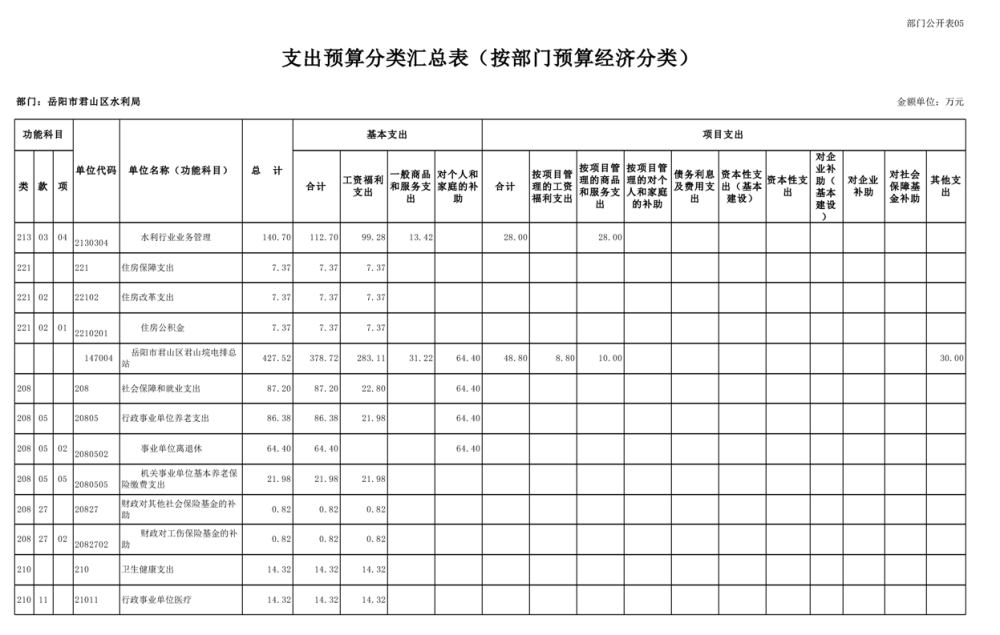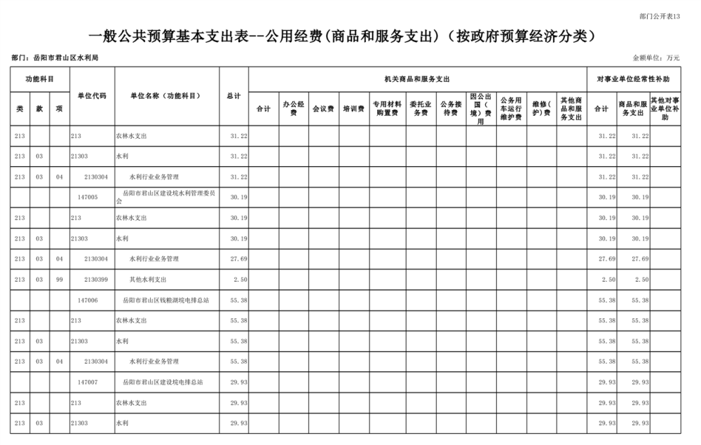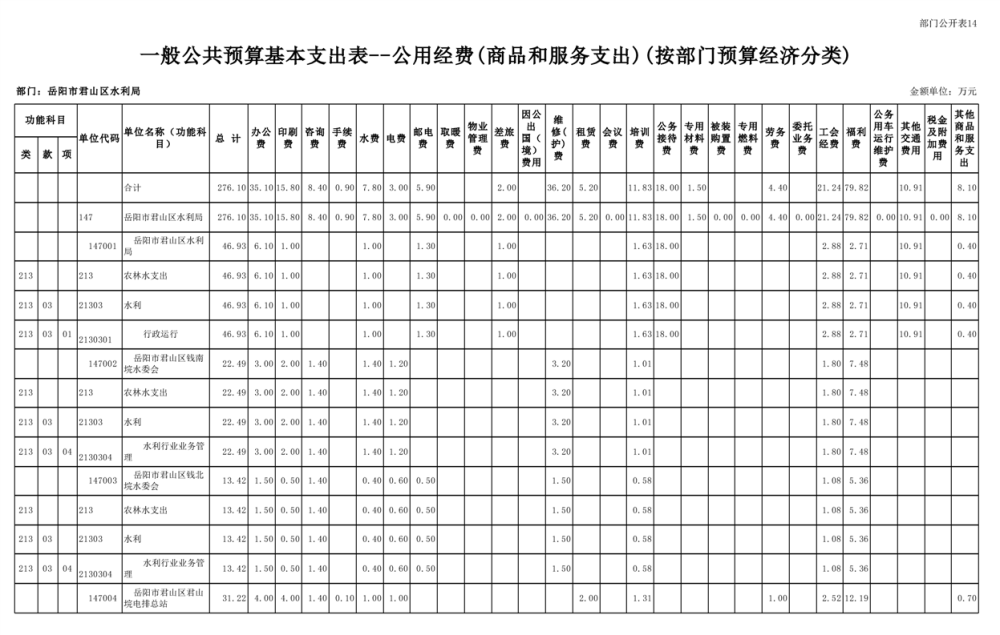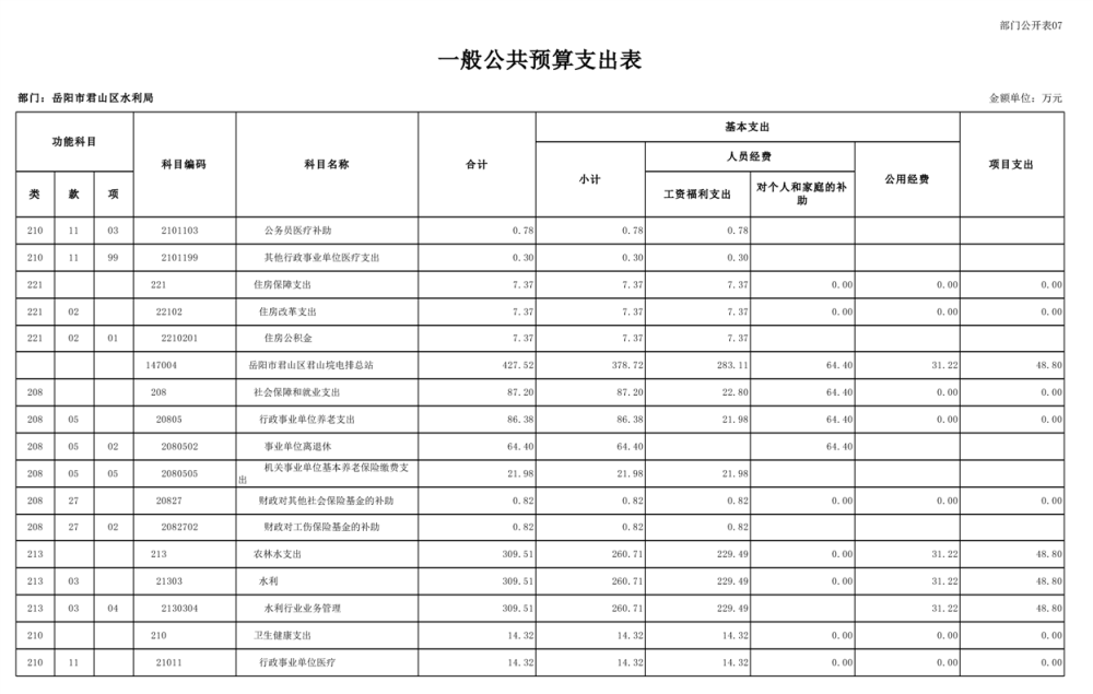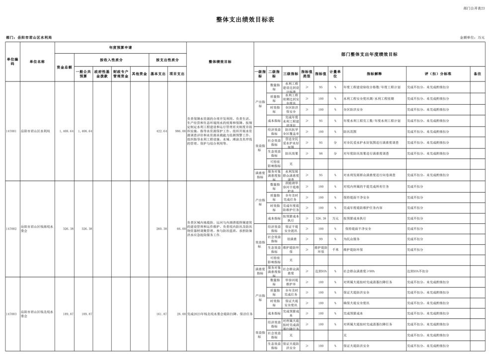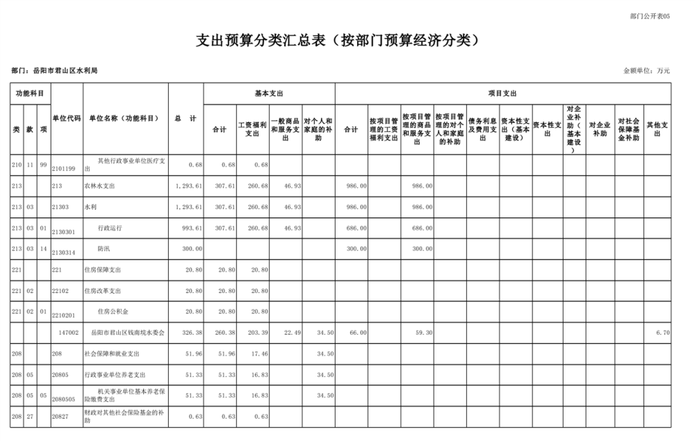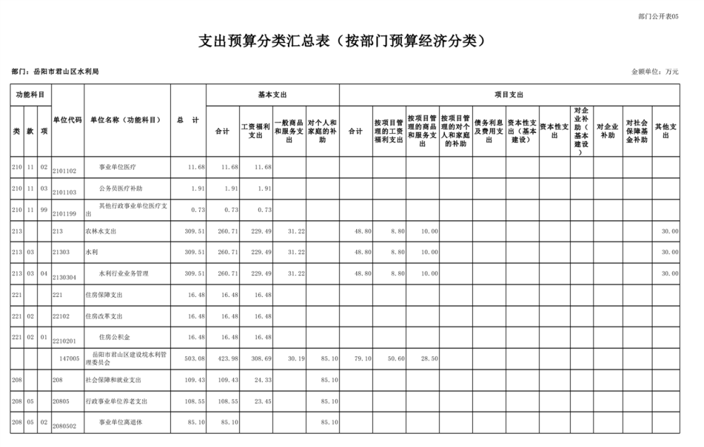 2023年岳阳市君山区水利局(汇总)部门预算公开说明