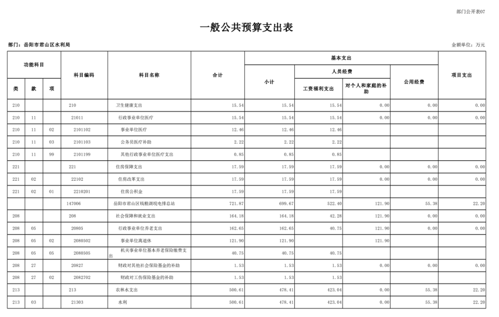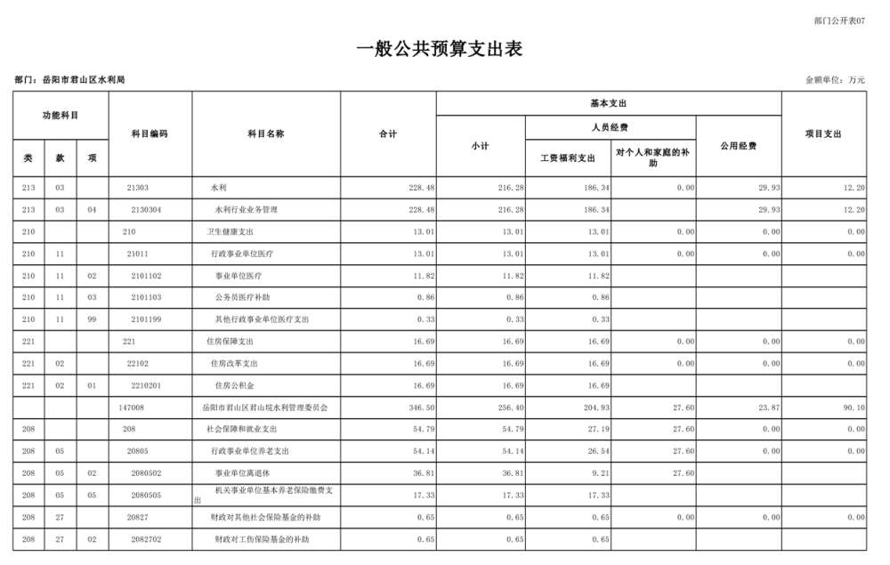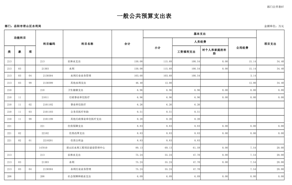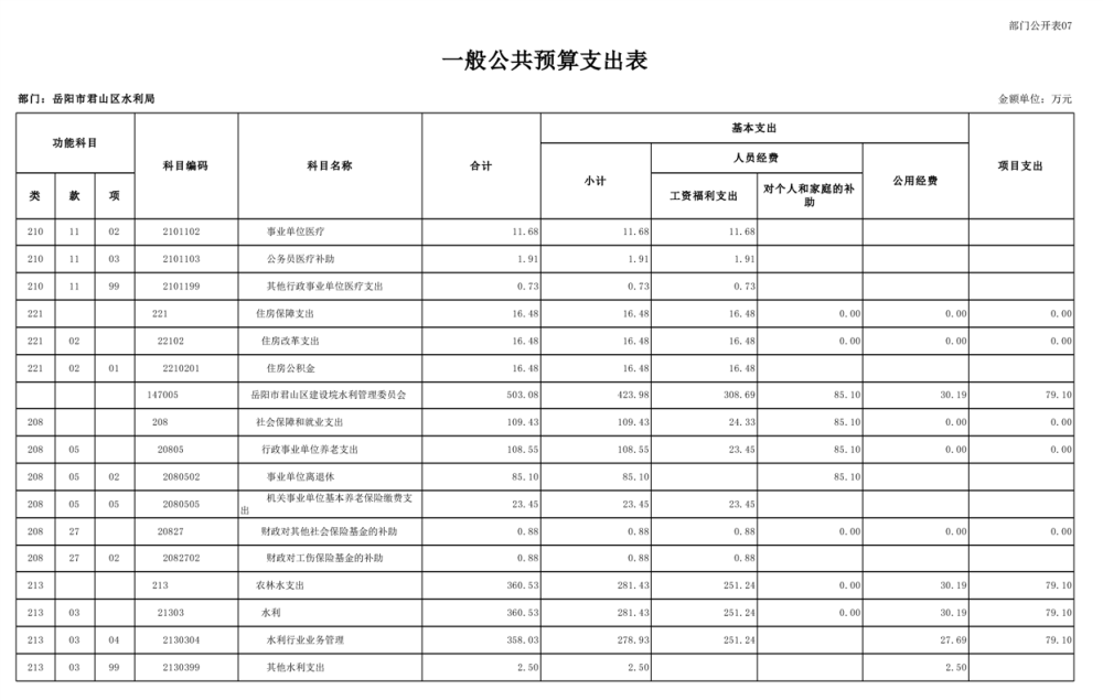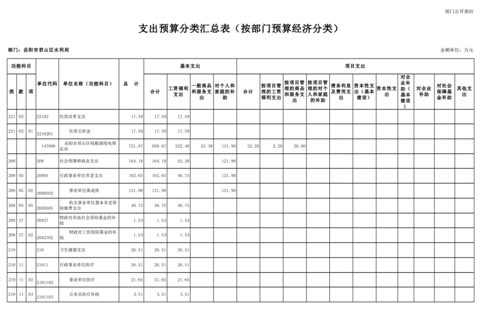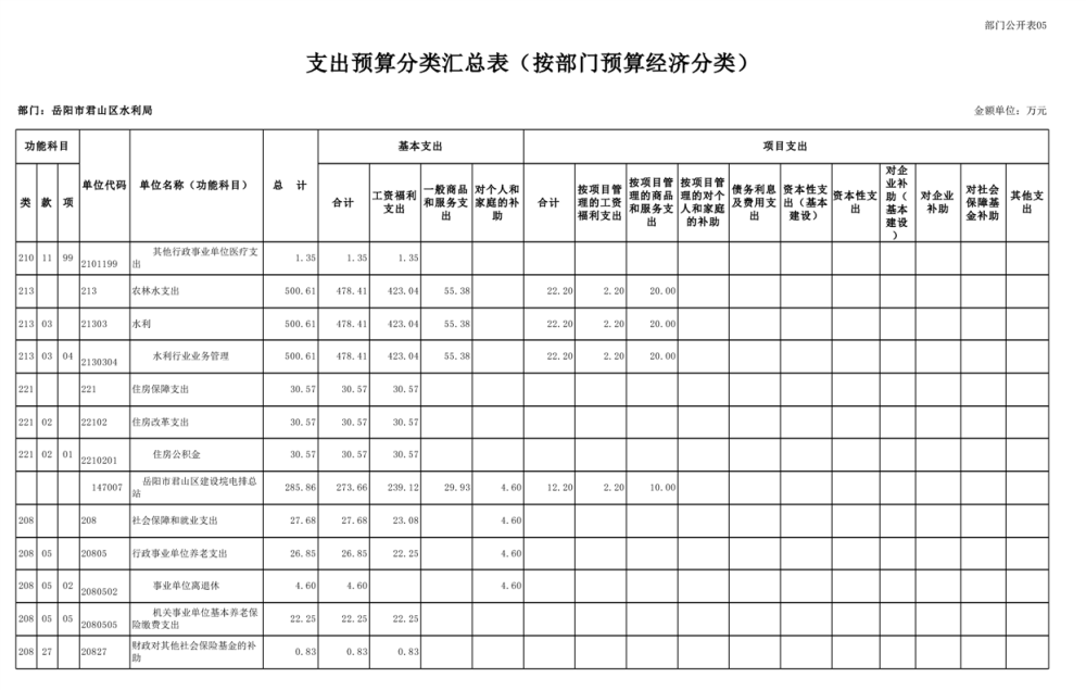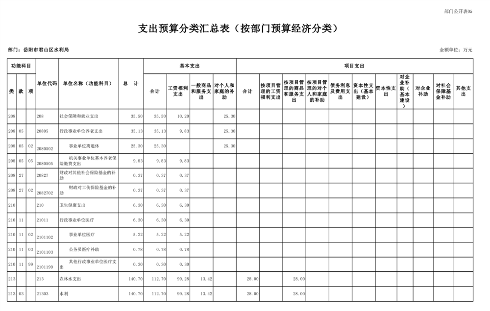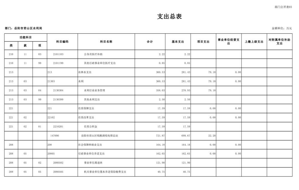 2023年岳阳市君山区水利局(汇总)部门预算公开说明