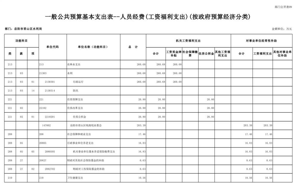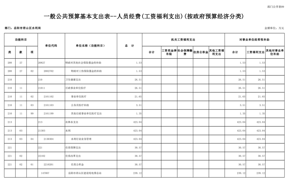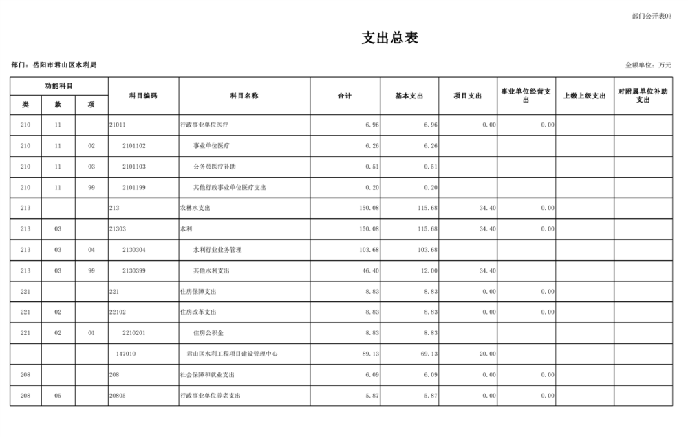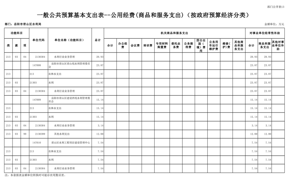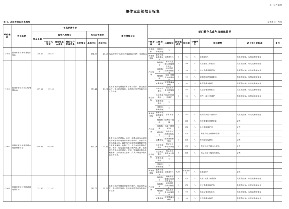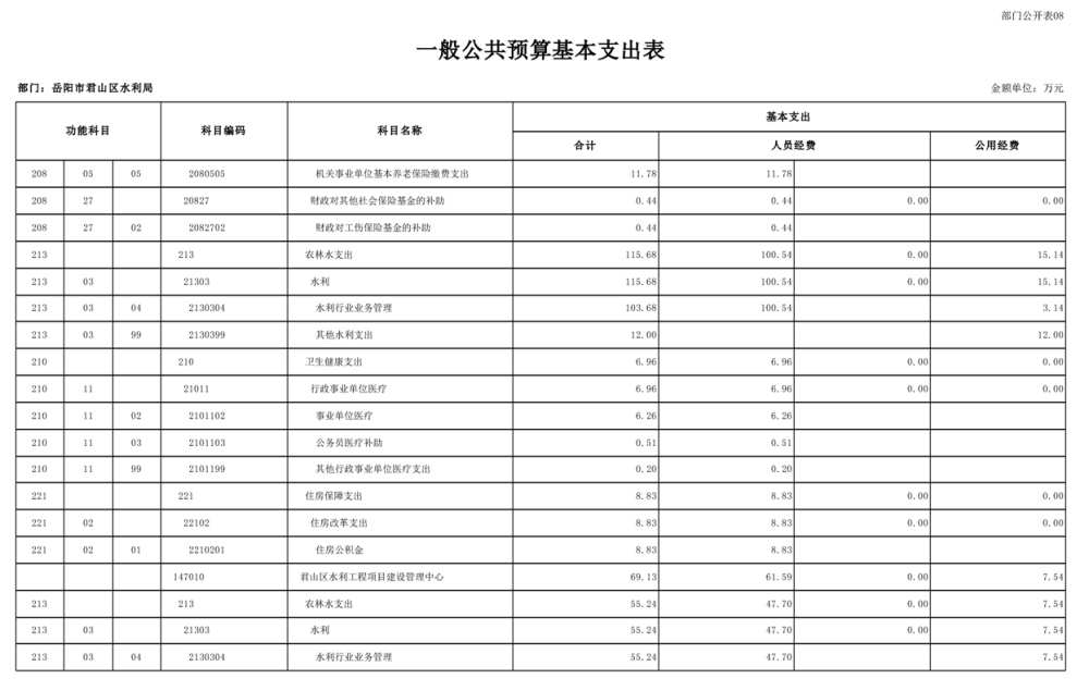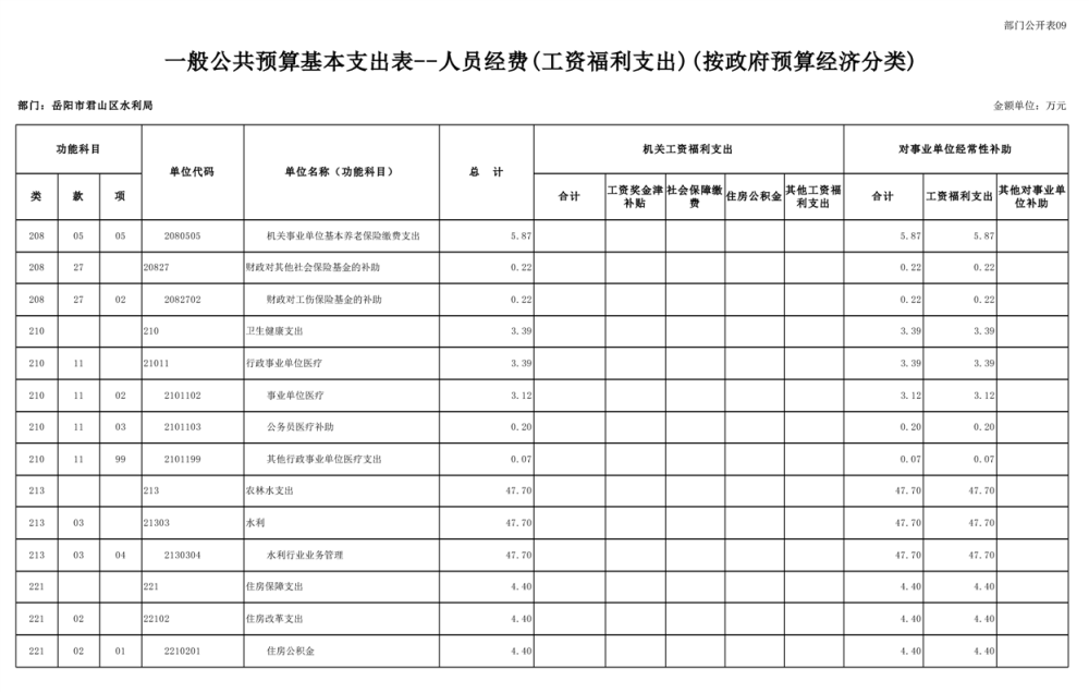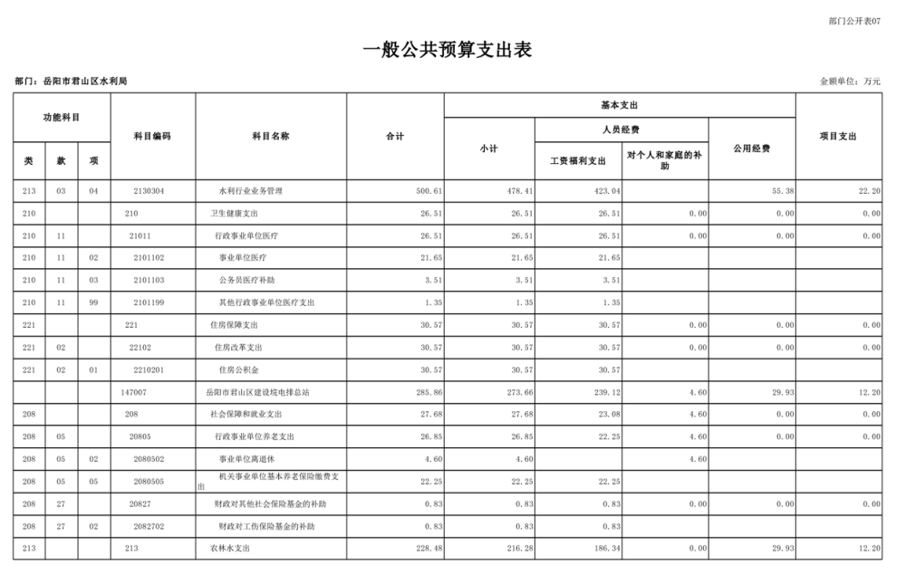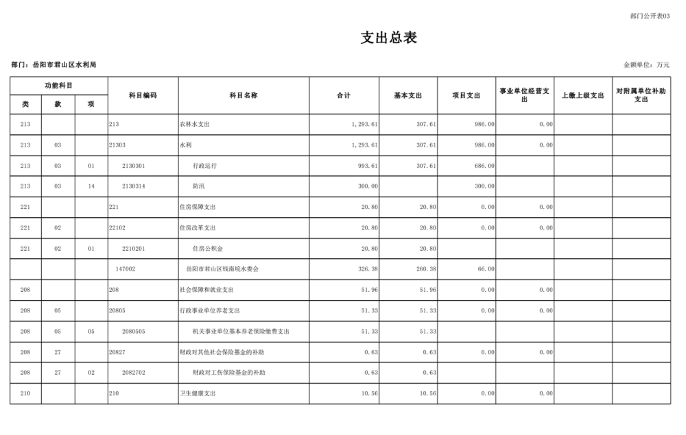2023年岳阳市君山区水利局(汇总)部门预算公开说明