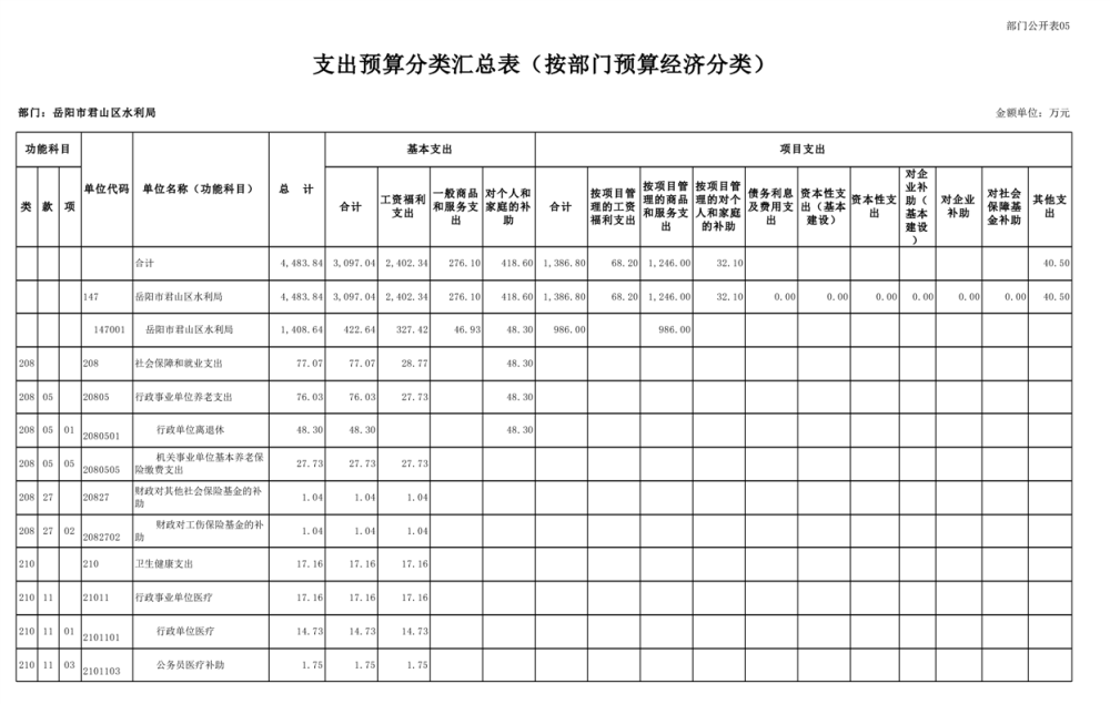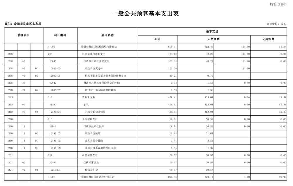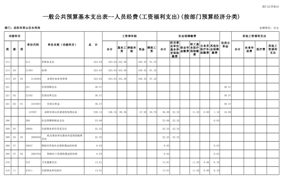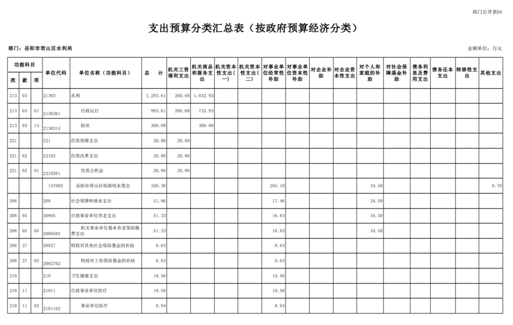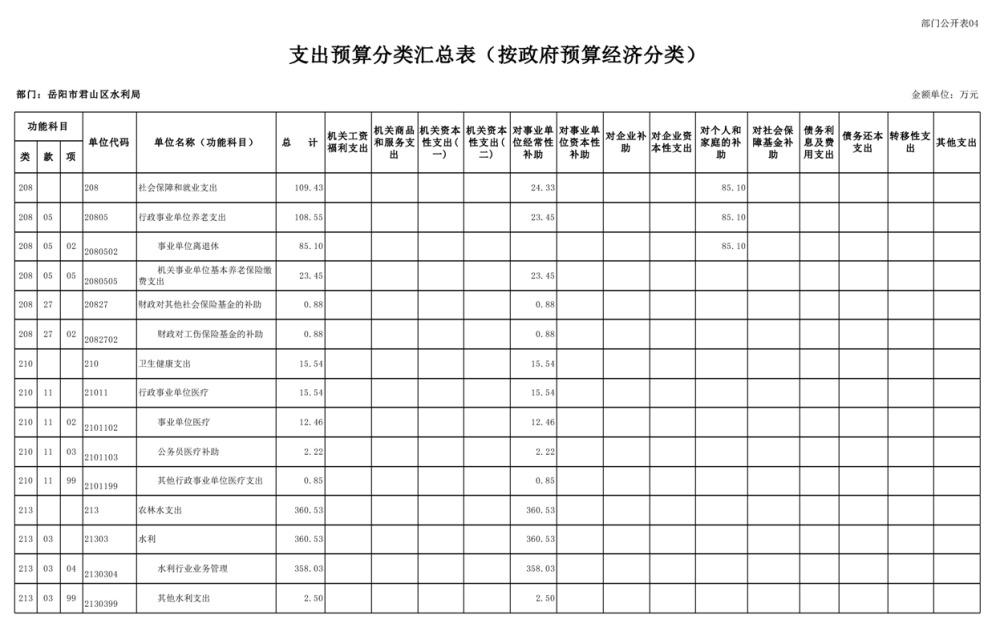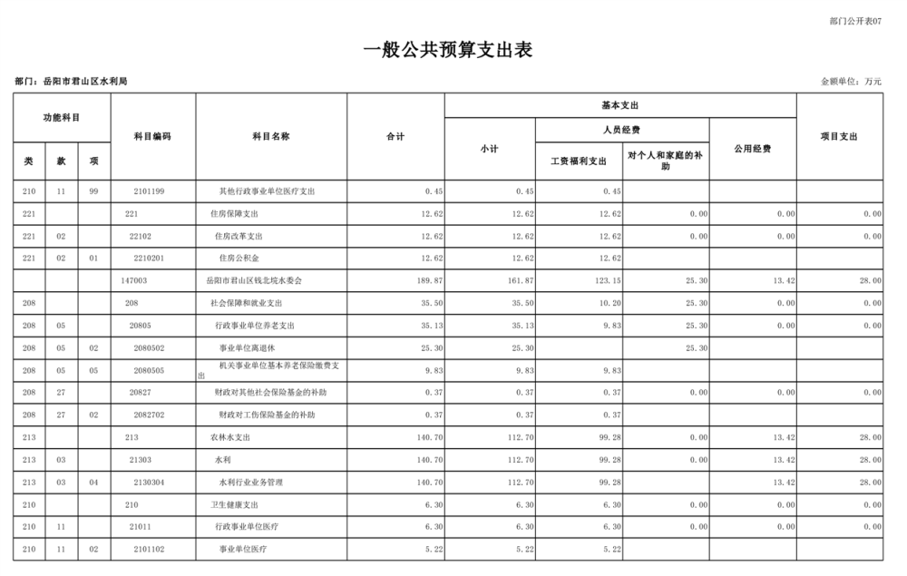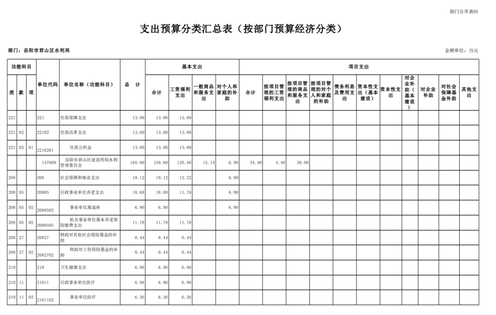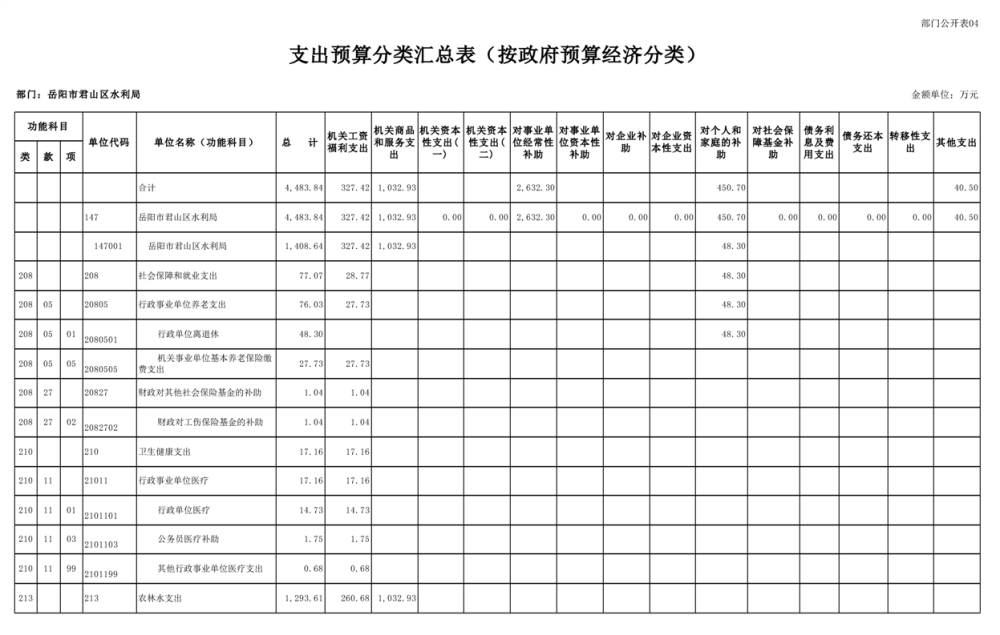 2023年岳阳市君山区水利局(汇总)部门预算公开说明
