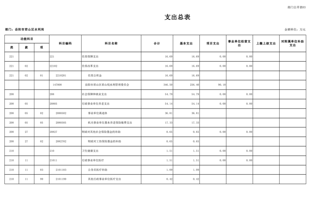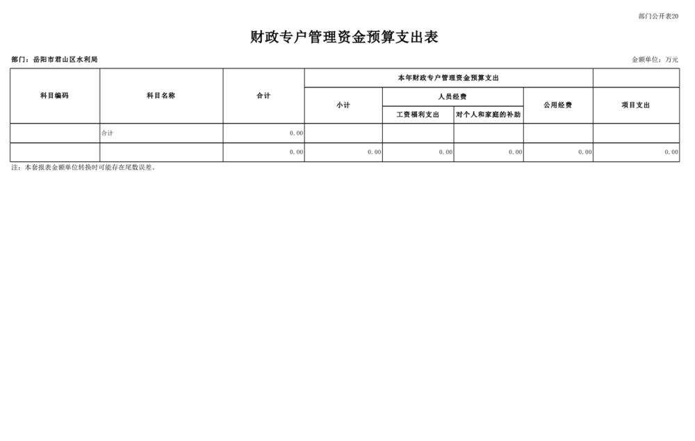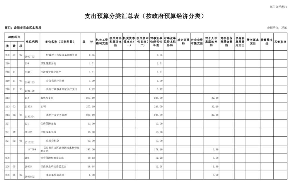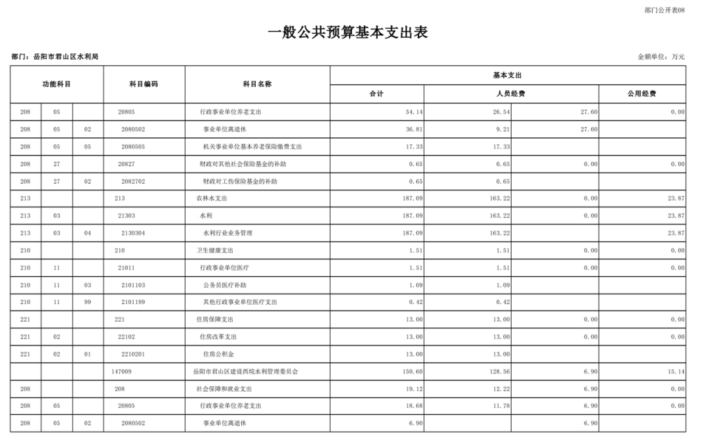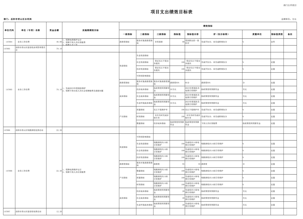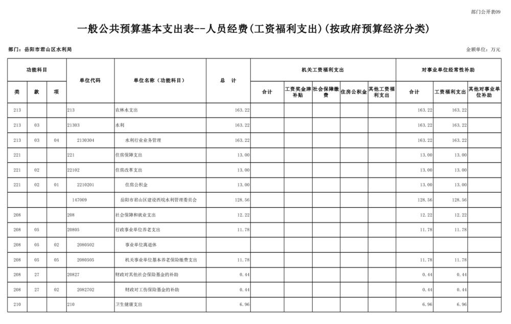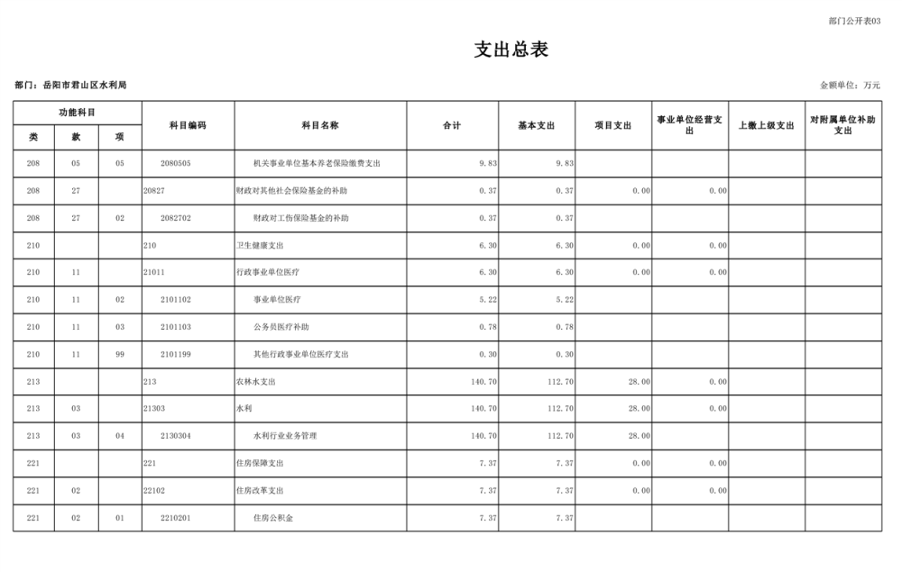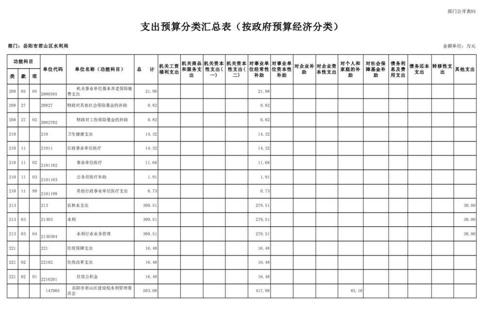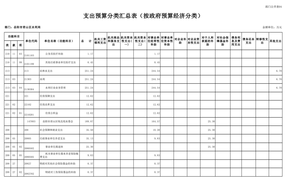 2023年岳阳市君山区水利局(汇总)部门预算公开说明