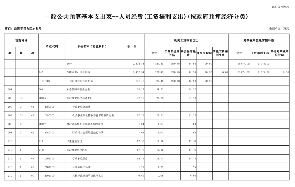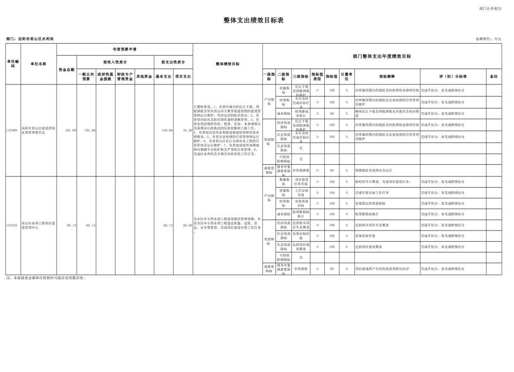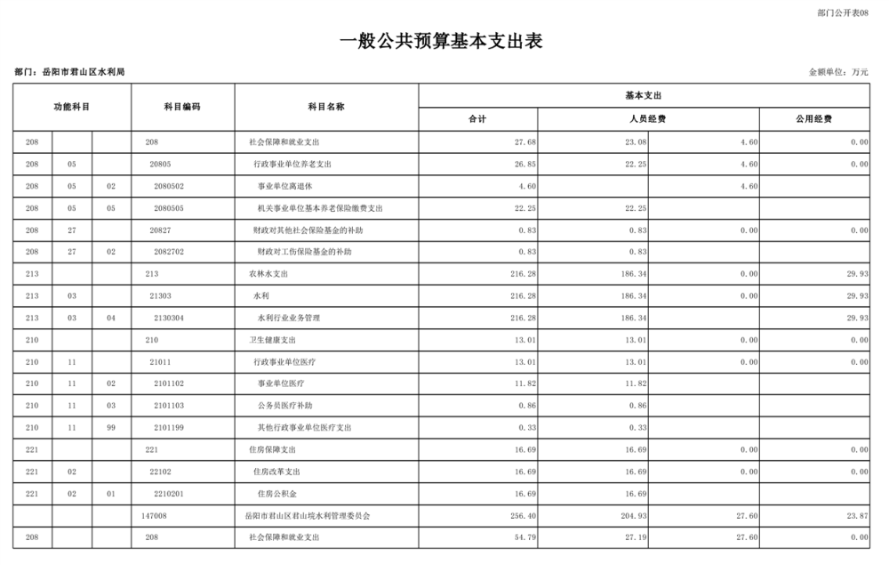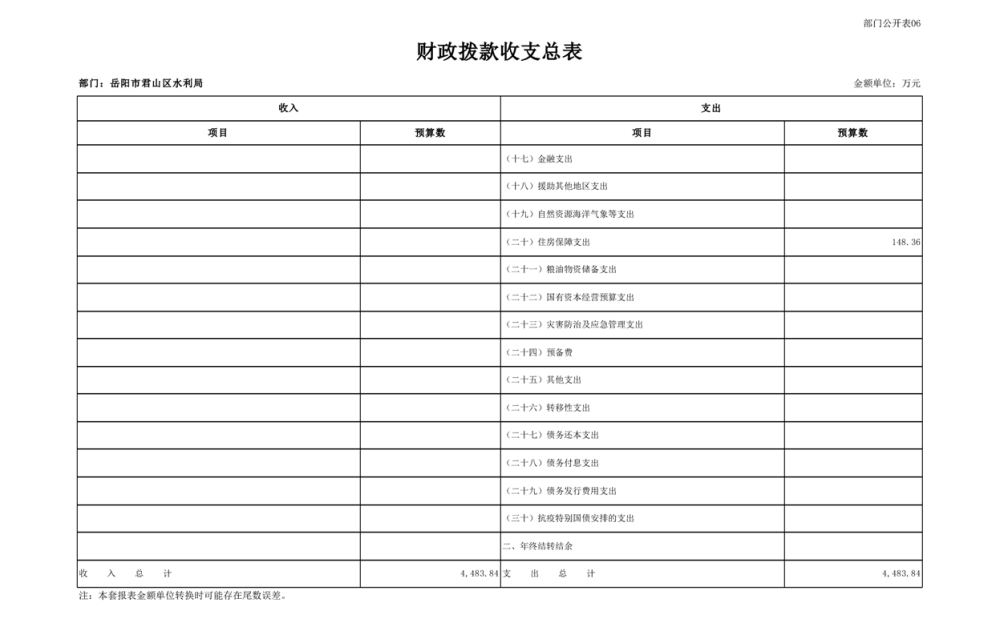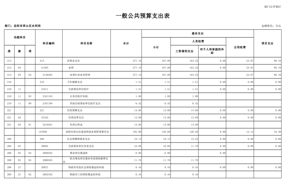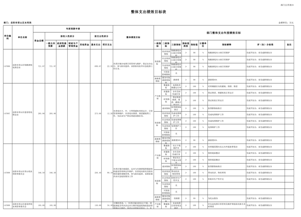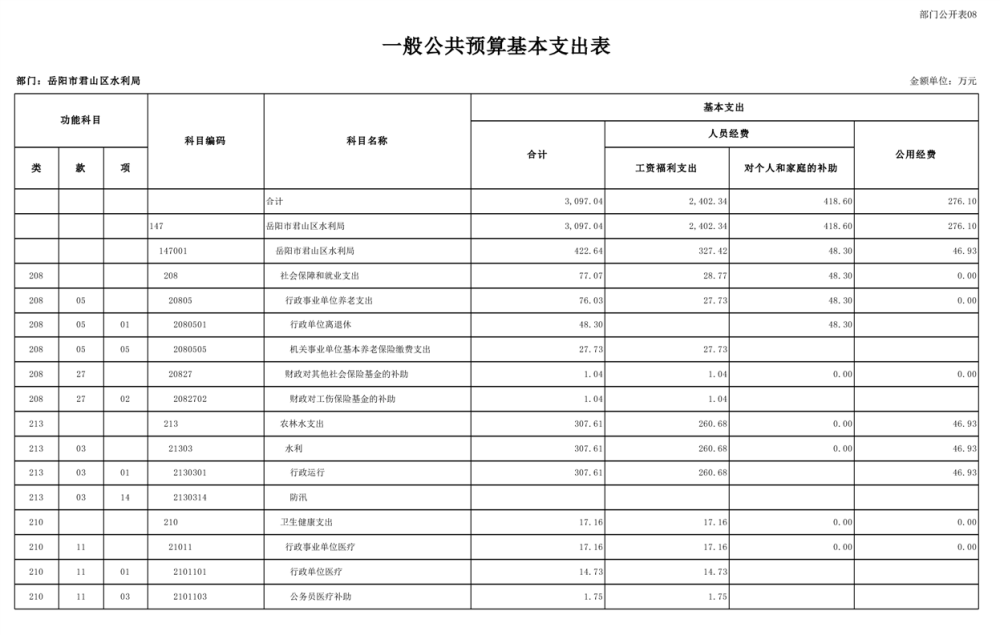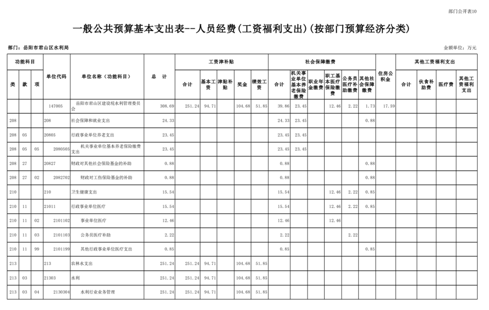 2023年岳阳市君山区水利局(汇总)部门预算公开说明