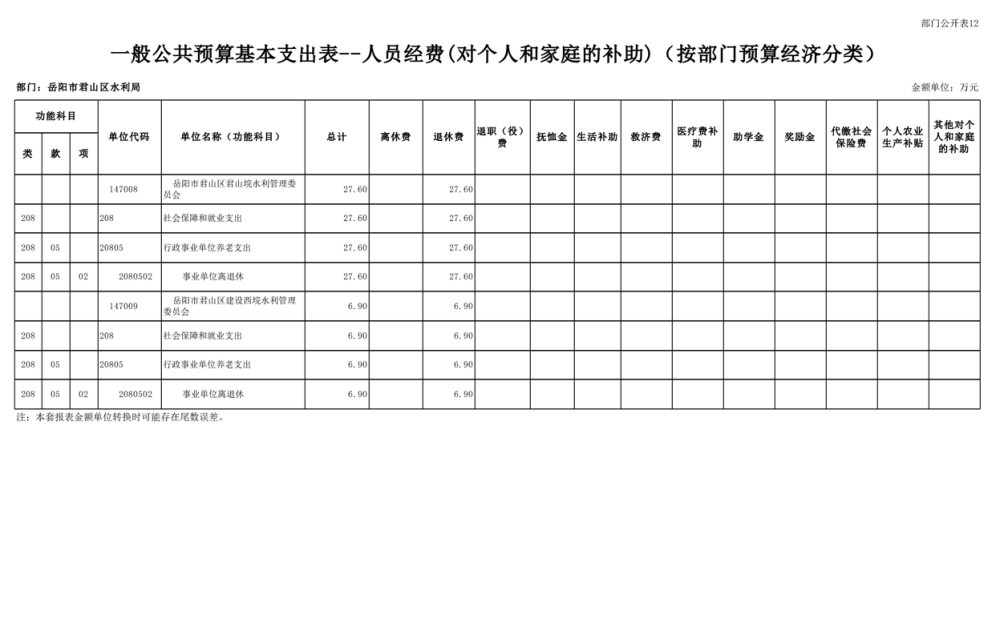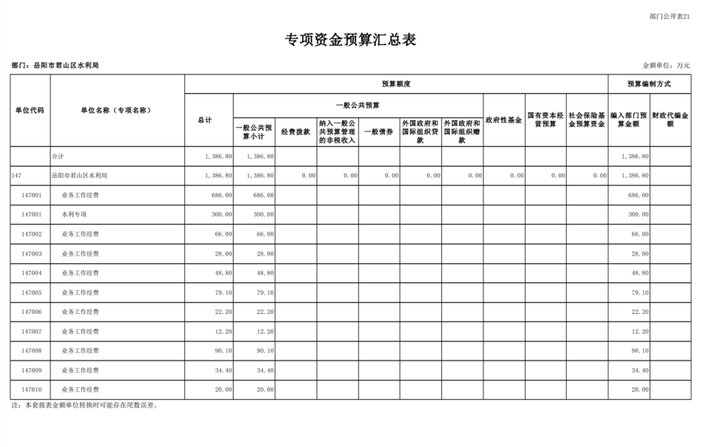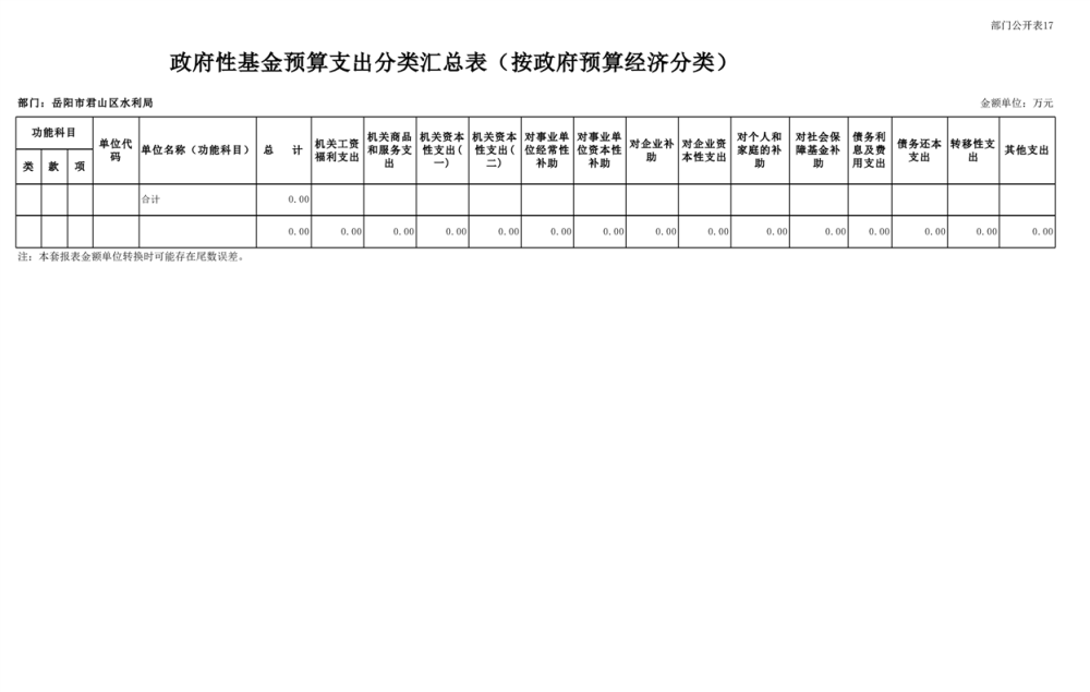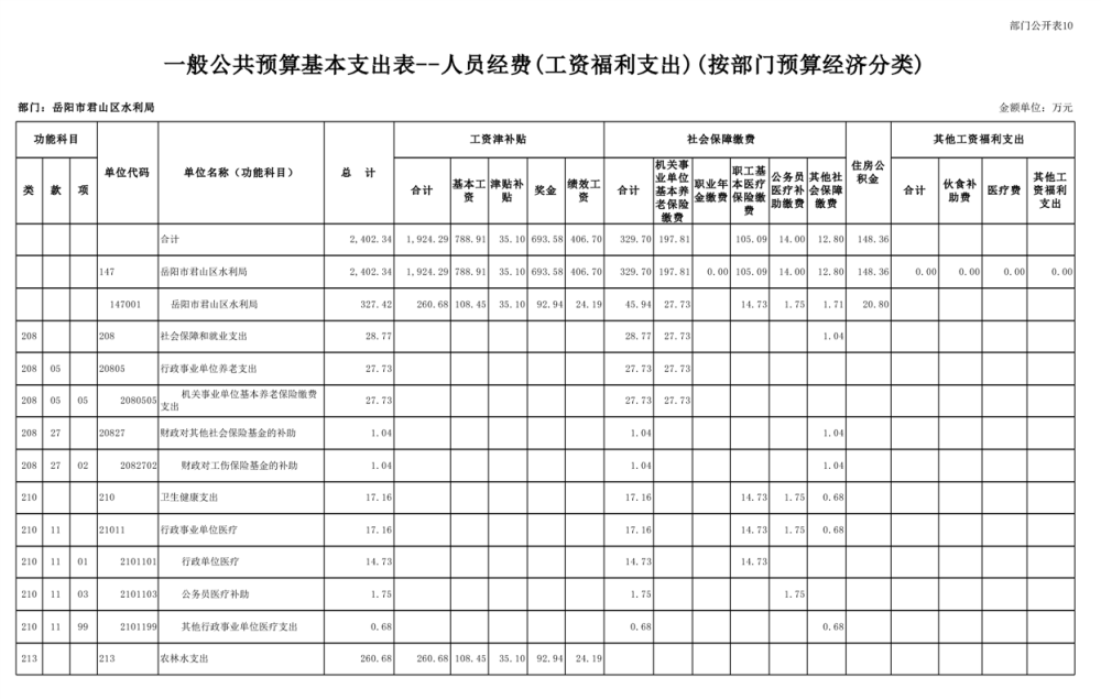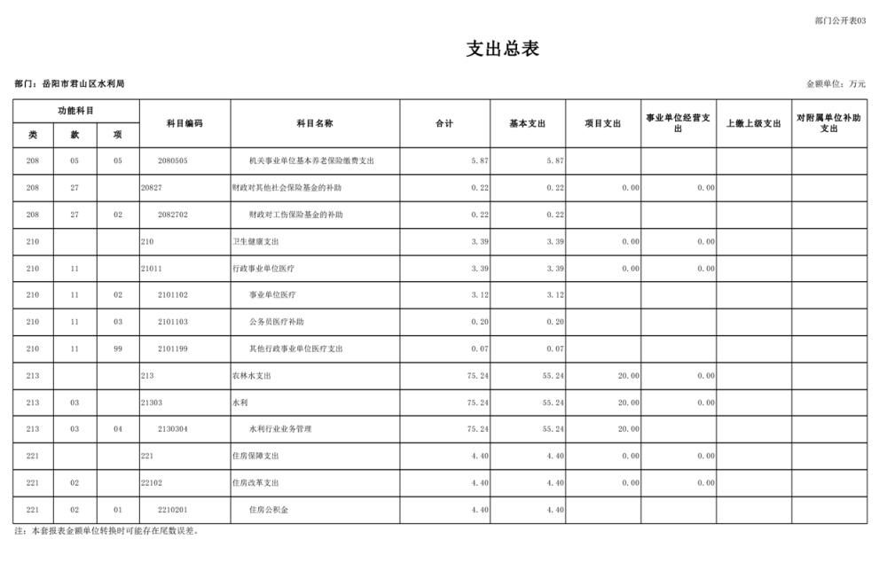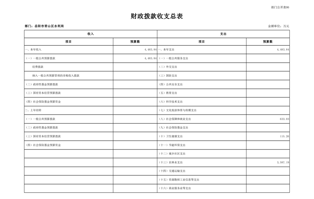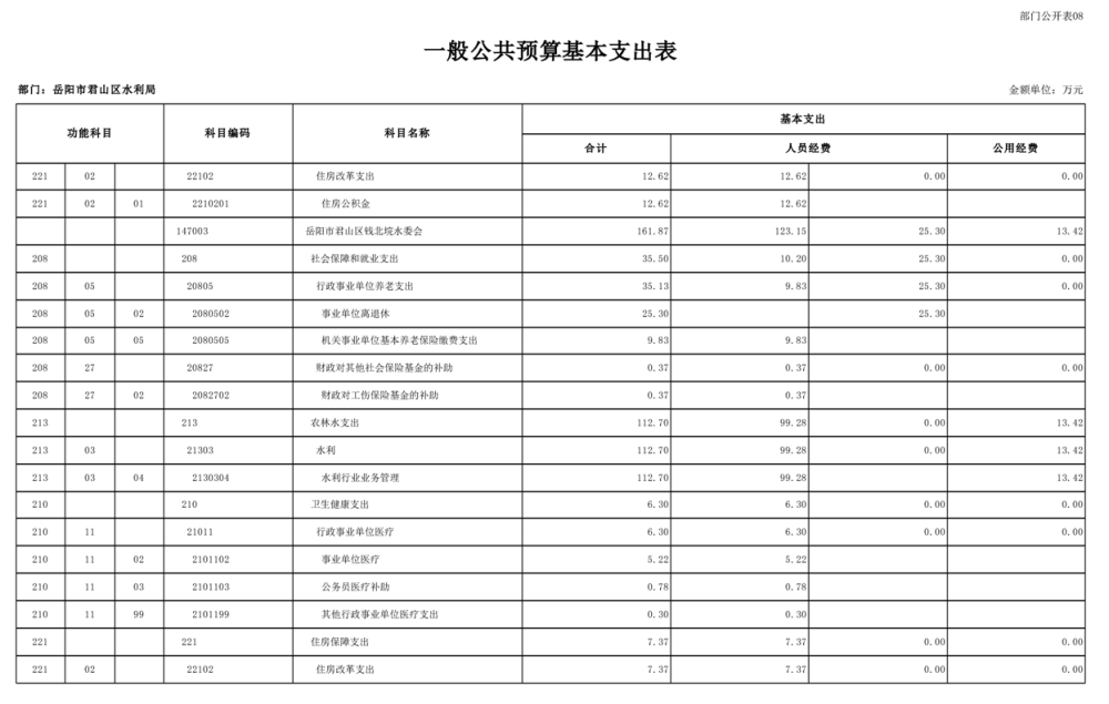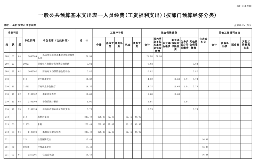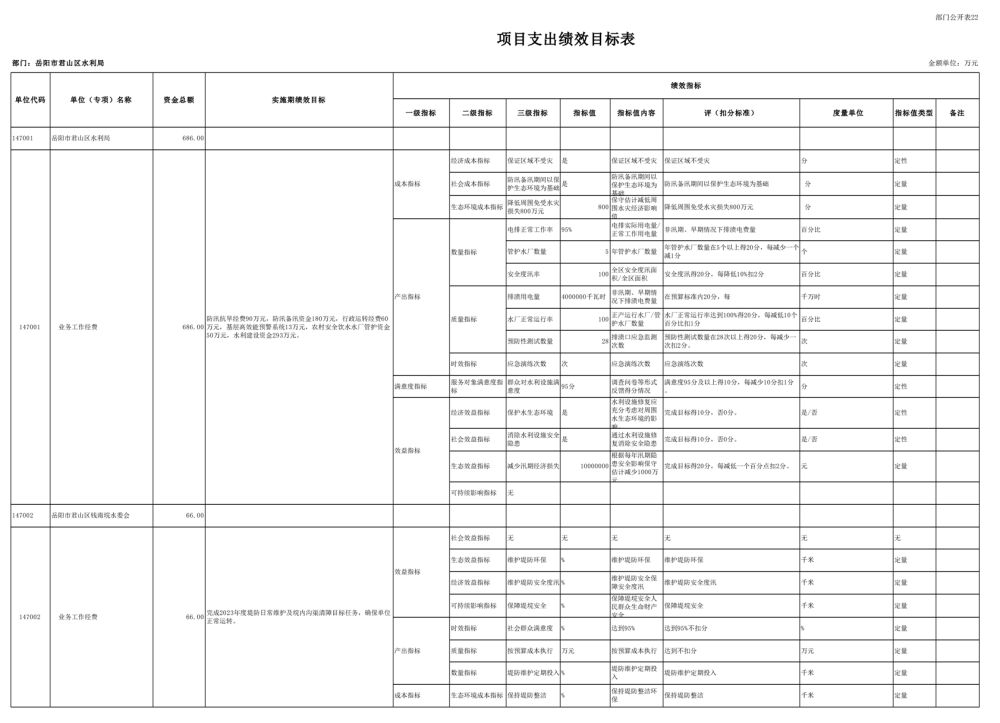 2023年岳阳市君山区水利局(汇总)部门预算公开说明