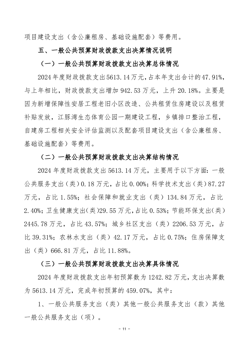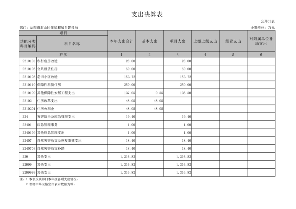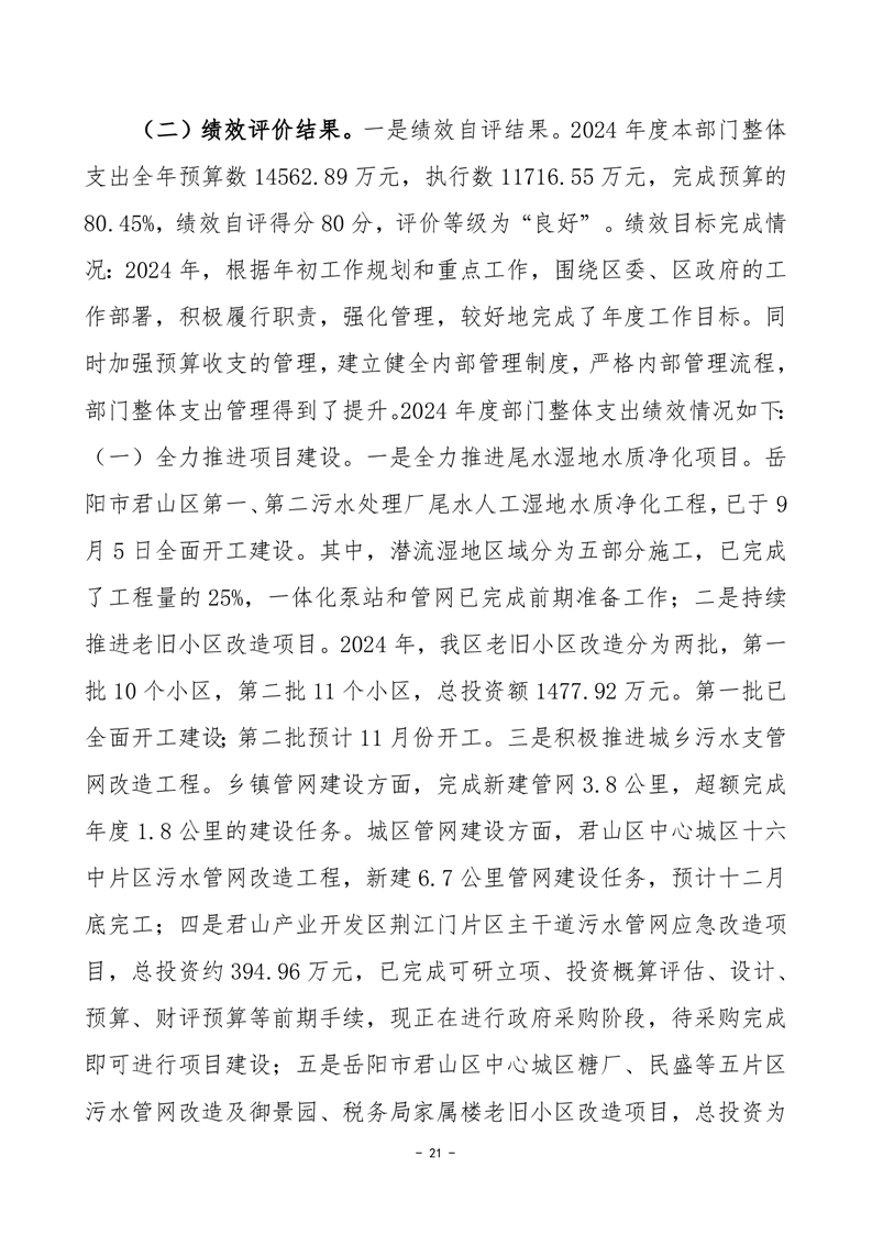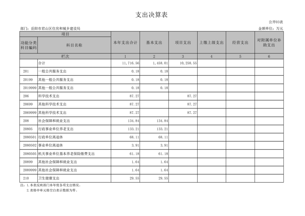 2024年度岳阳市君山区住房和城乡建设局(汇总)部门决算公开