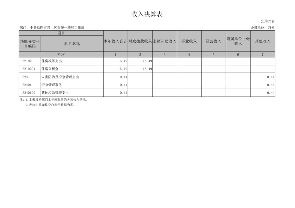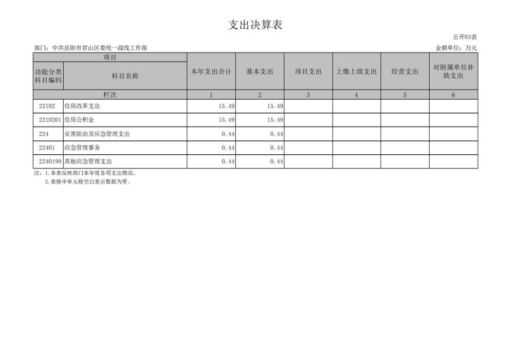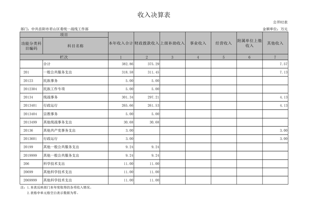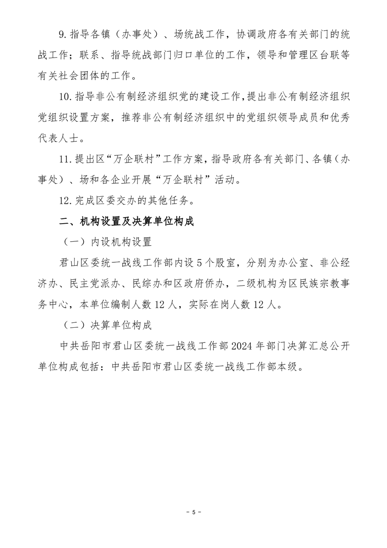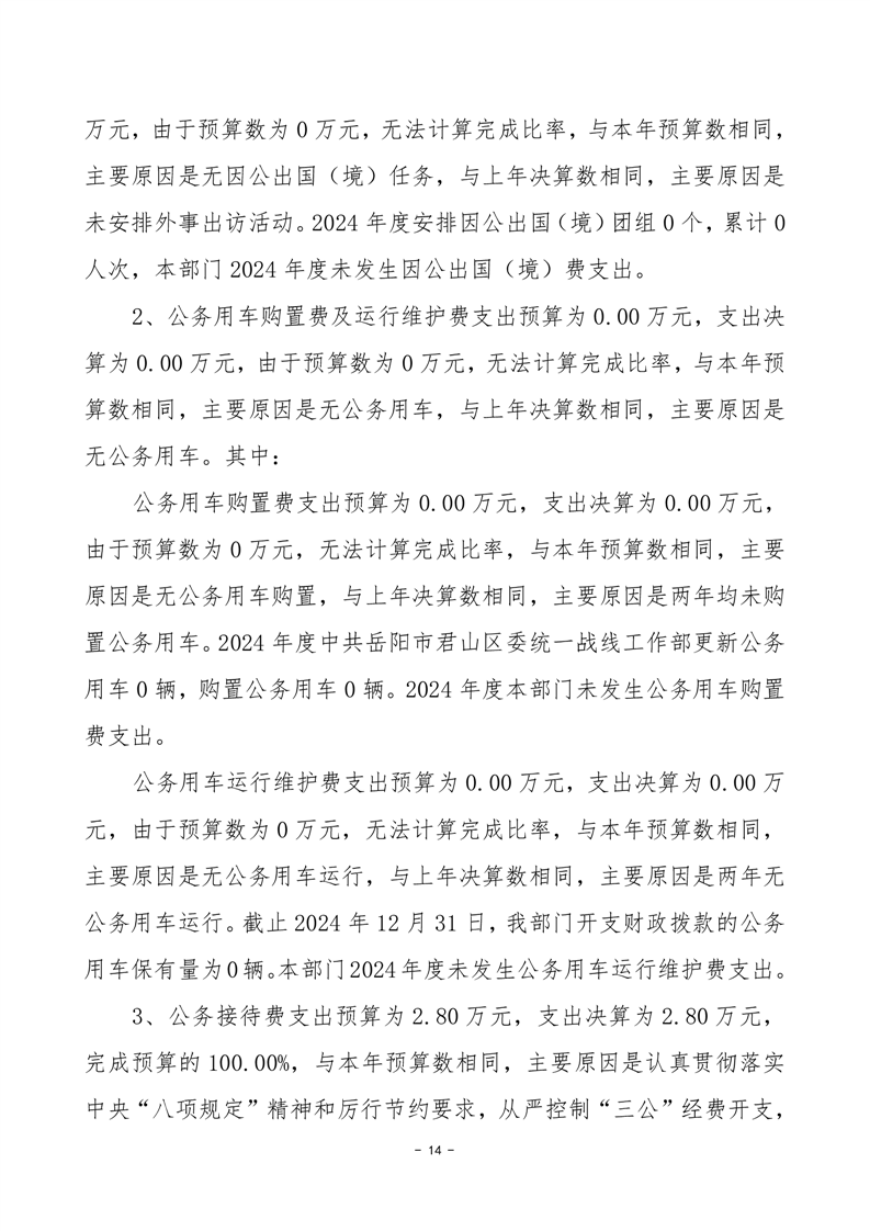 2024年度中共岳阳市君山区委统一战线工作部部门决算公开