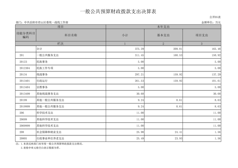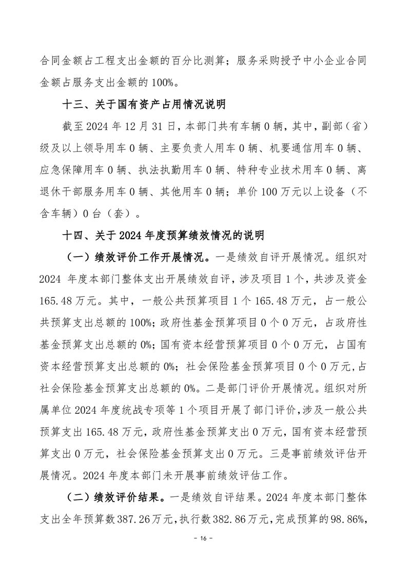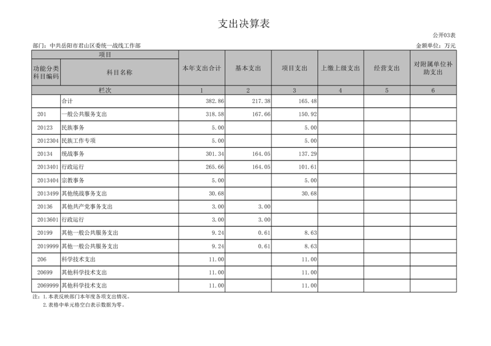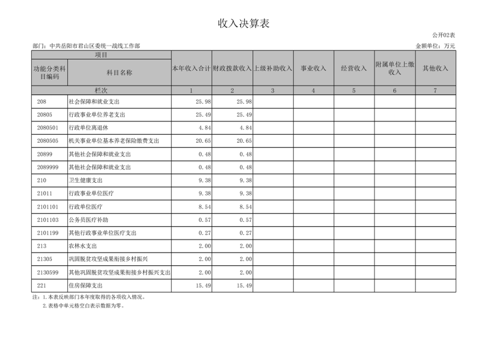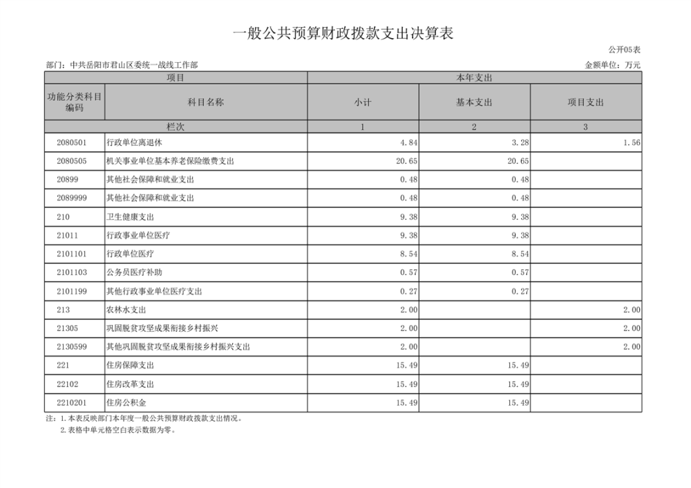 2024年度中共岳阳市君山区委统一战线工作部部门决算公开