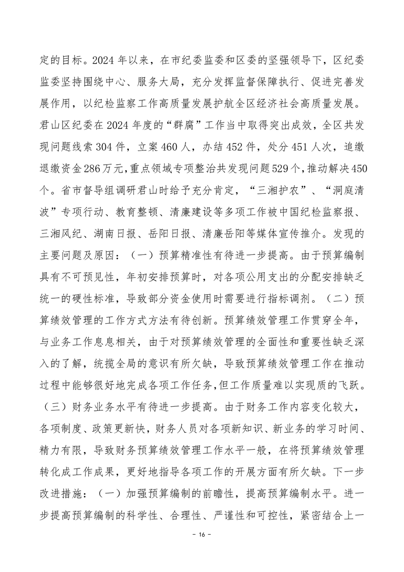 2024年度中共岳阳市君山区纪律检查委员会部门决算公开