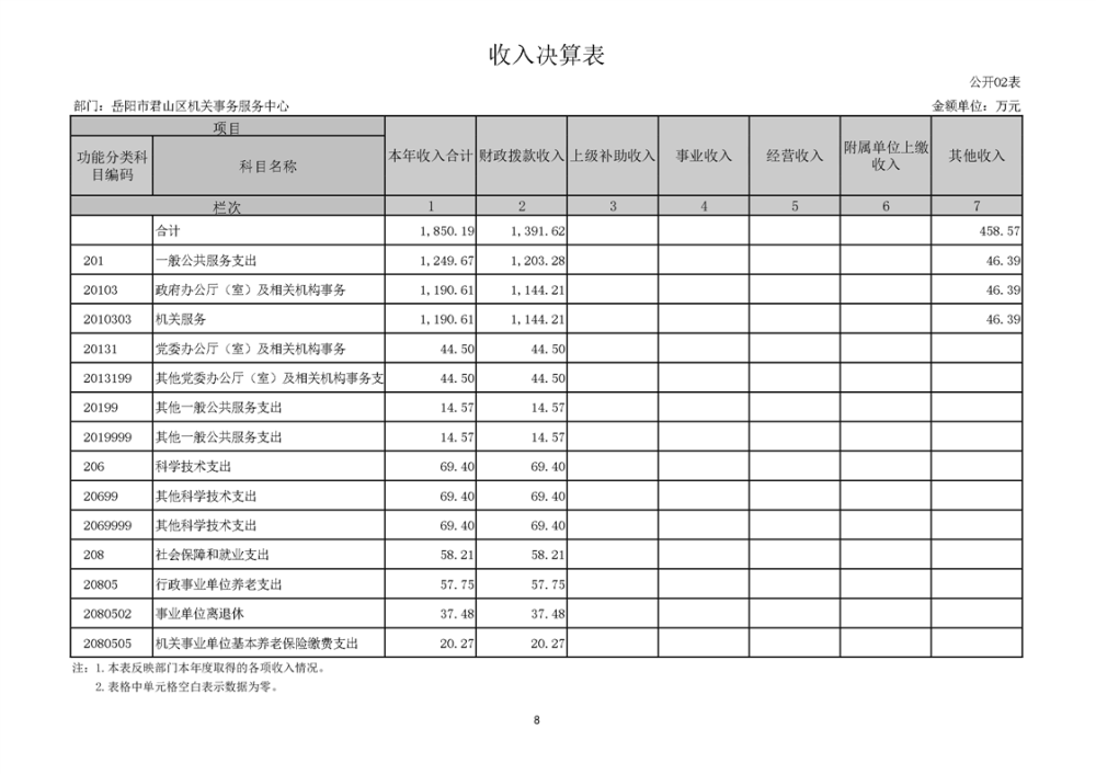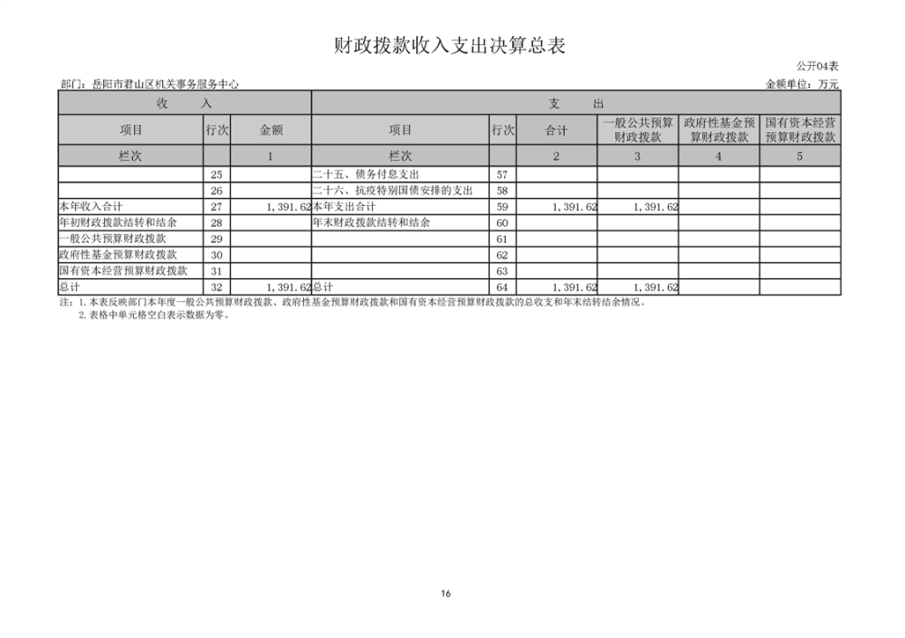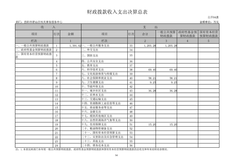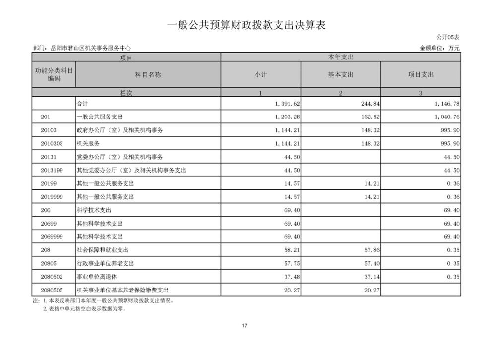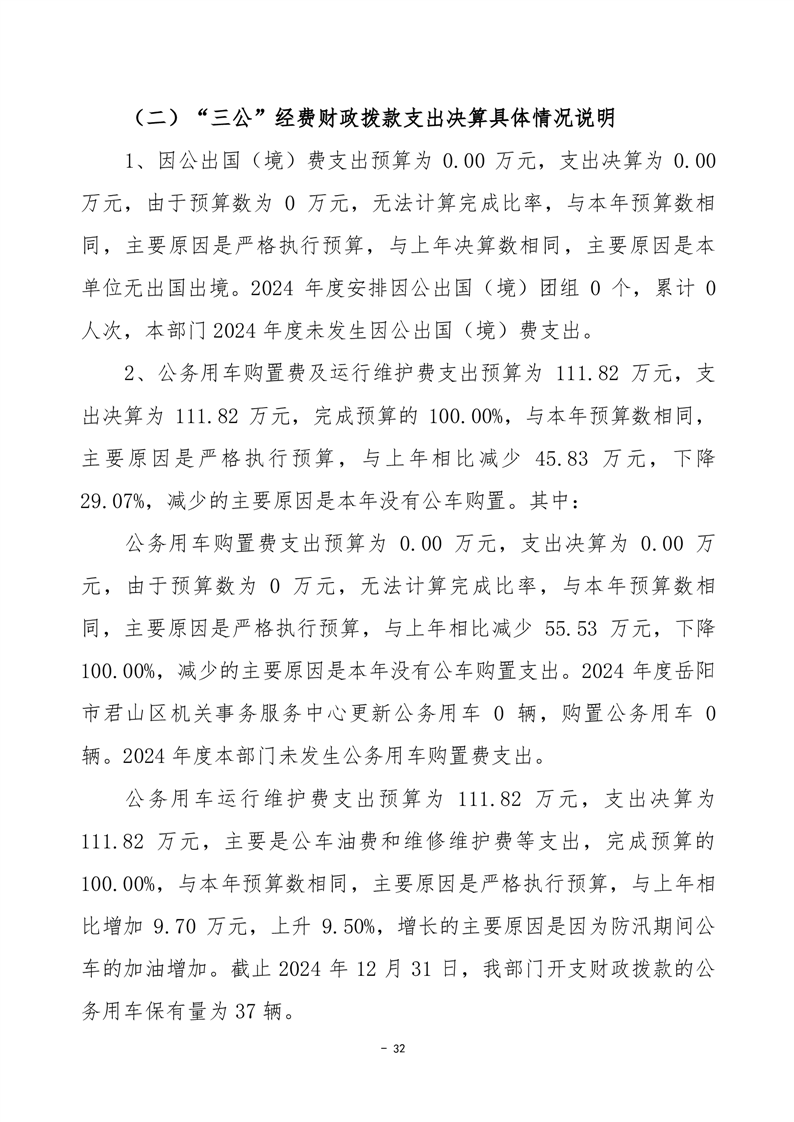 2024年度岳阳市君山区机关事务服务中心部门决算公开
