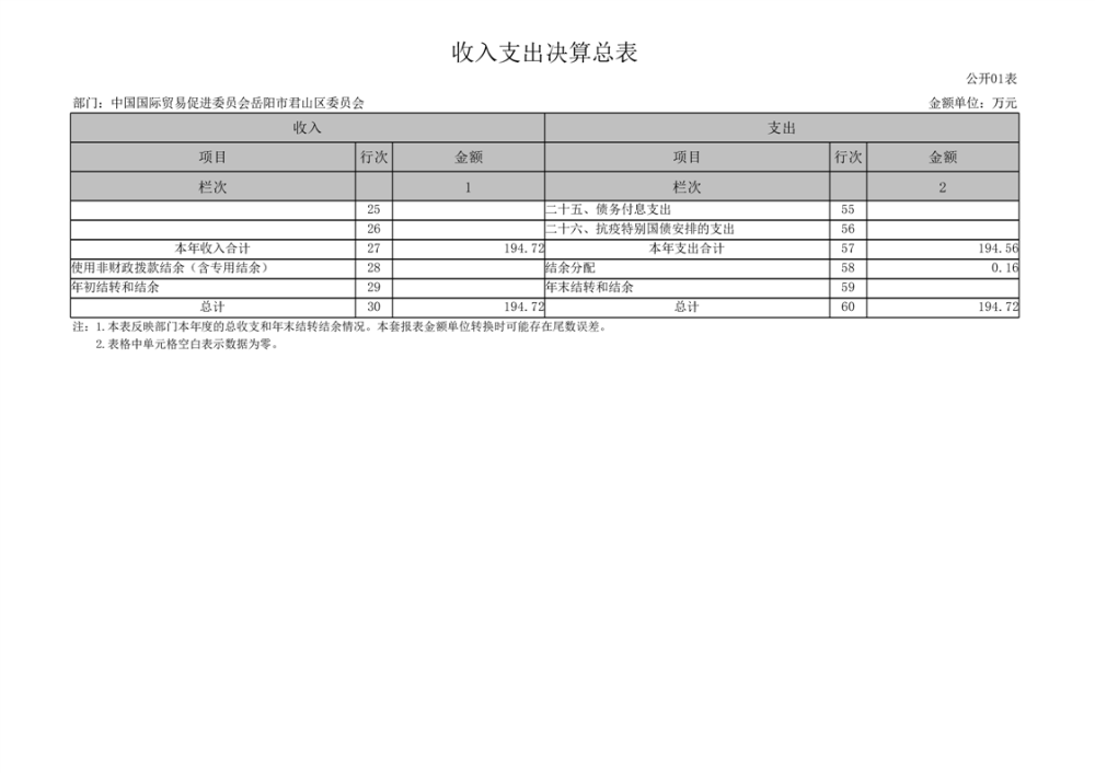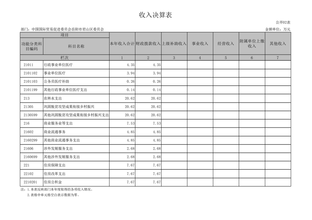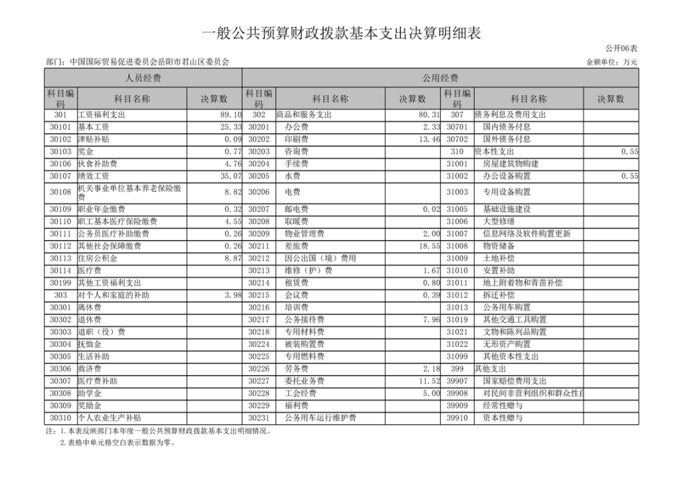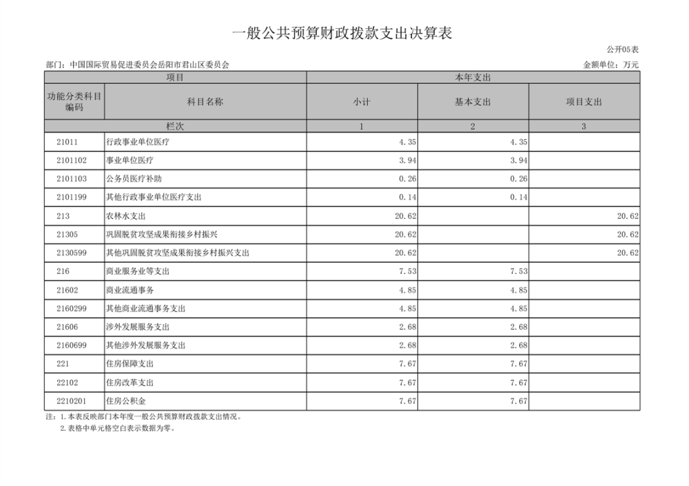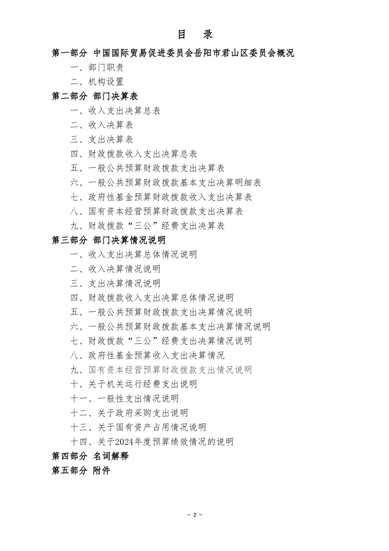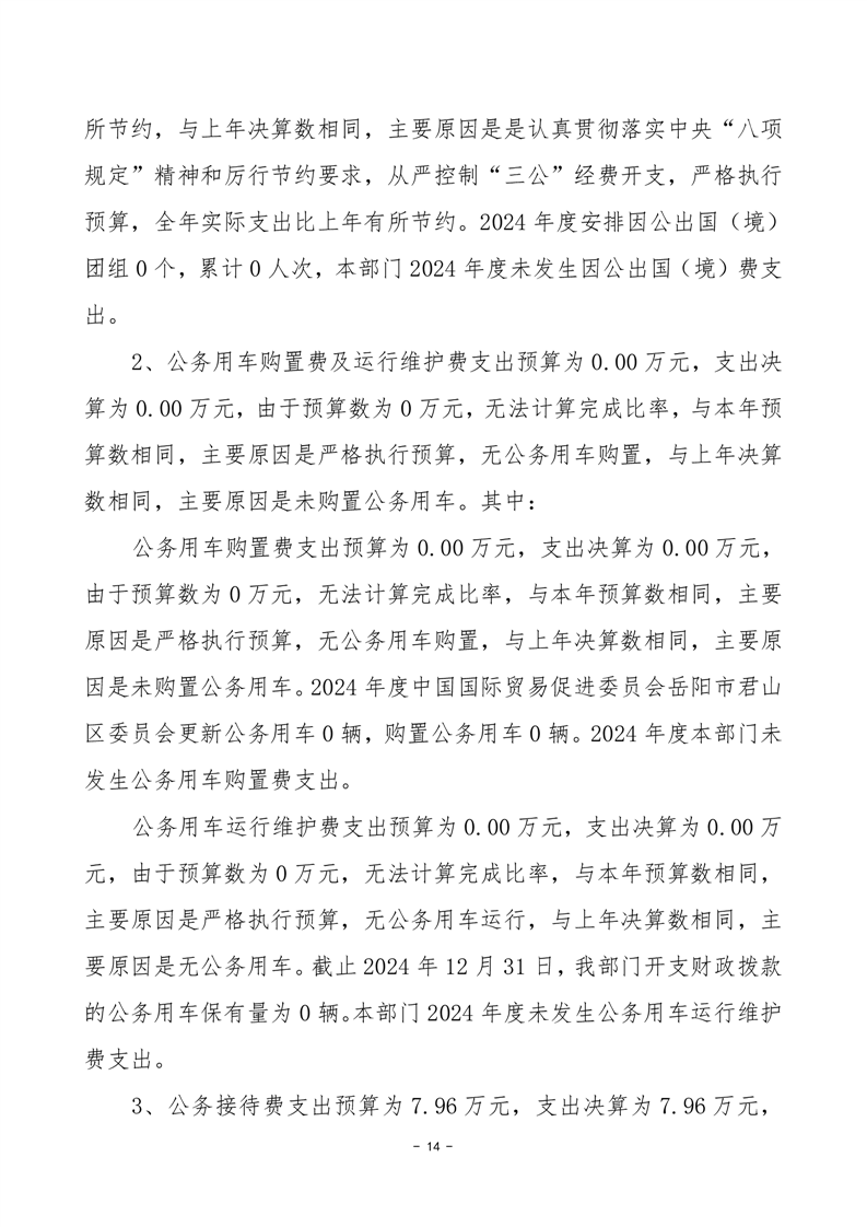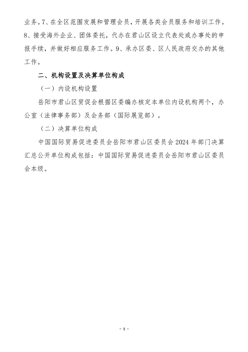 2024年度中国国际贸易促进委员会岳阳市君山区委员会部门决算公开