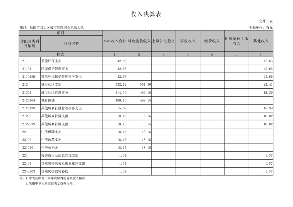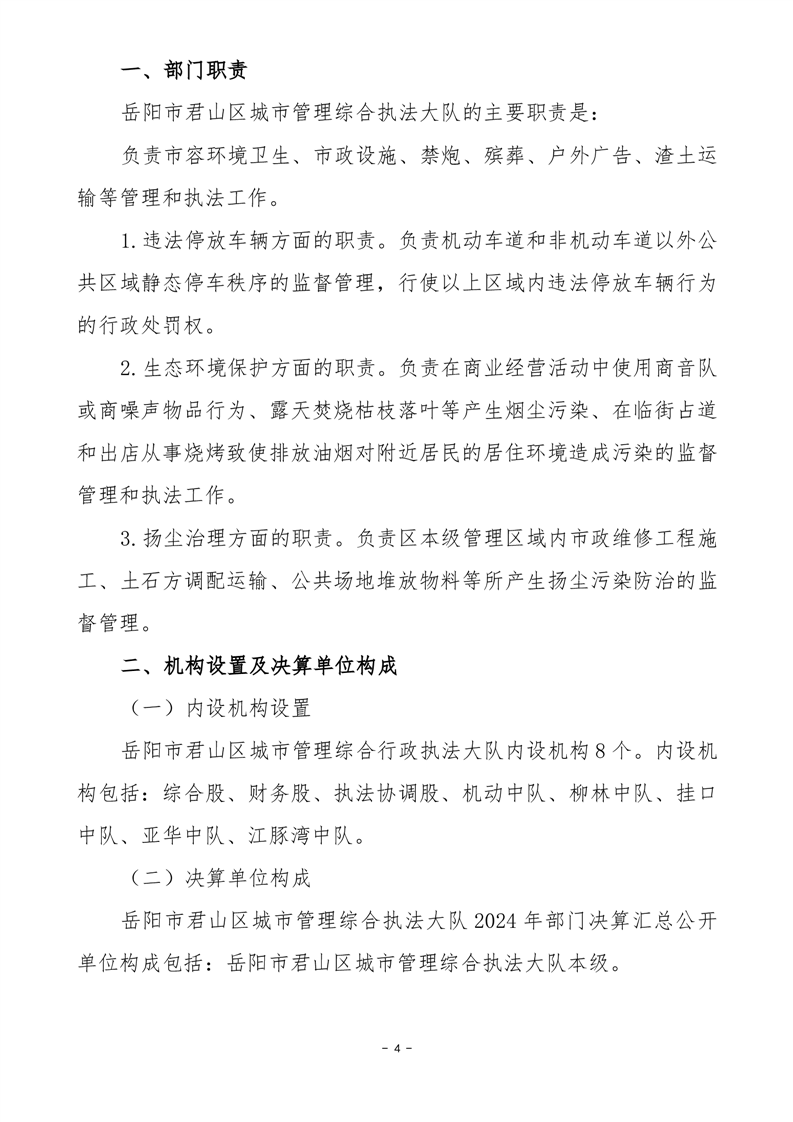 2024年度岳阳市君山区城市管理综合执法大队部门决算公开