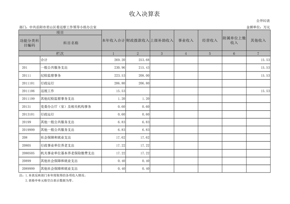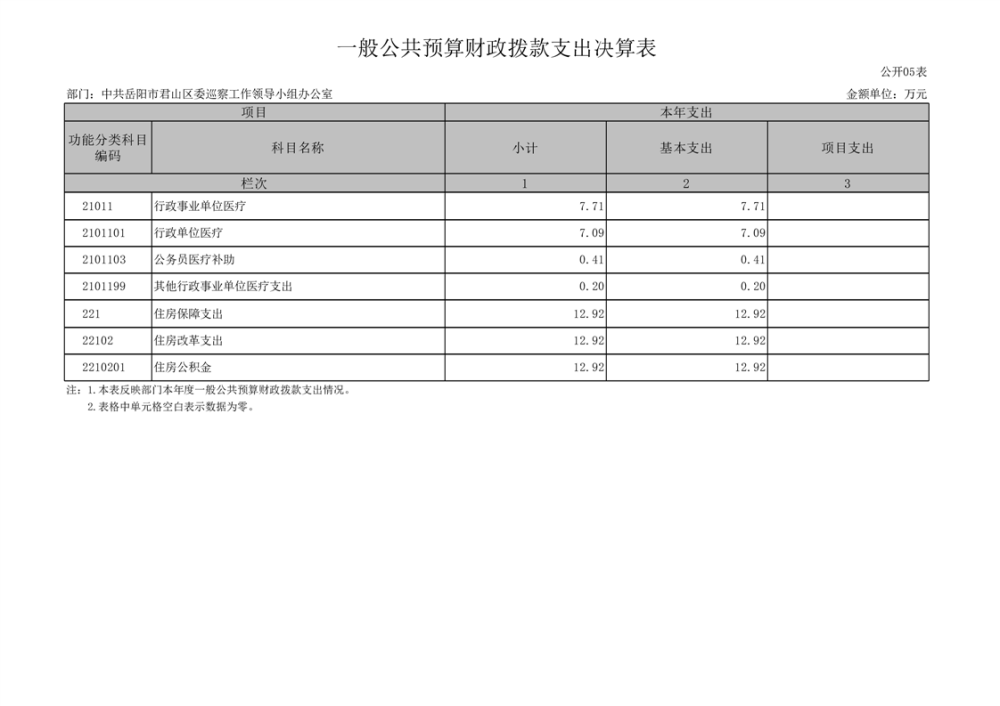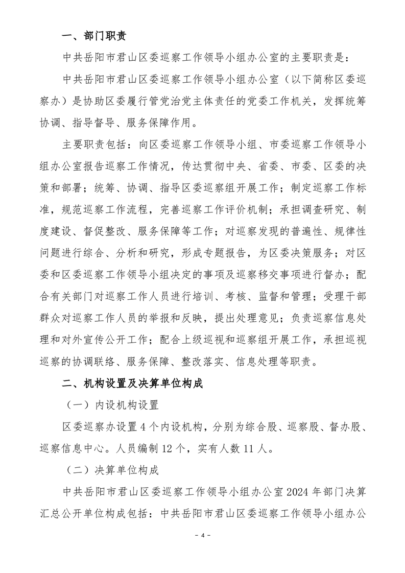 2024年度中共岳阳市君山区委巡察工作领导小组办公室部门决算公开