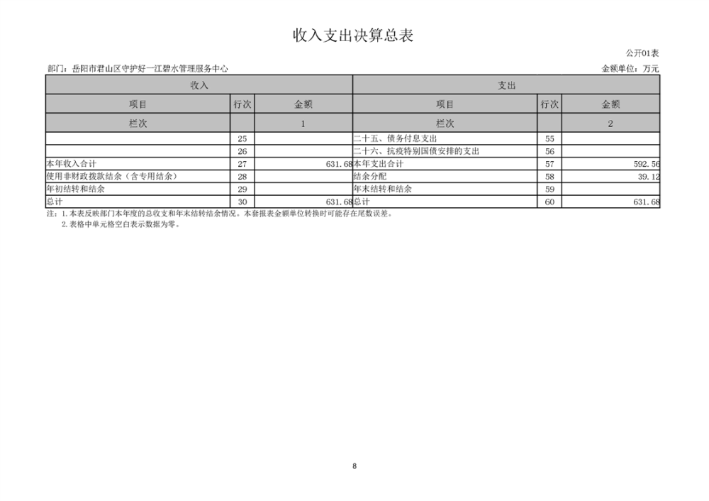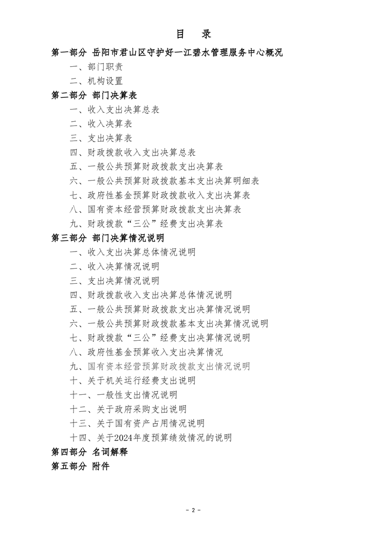 2024年度岳阳市君山区守护好一江碧水管理服务中心部门决算公开