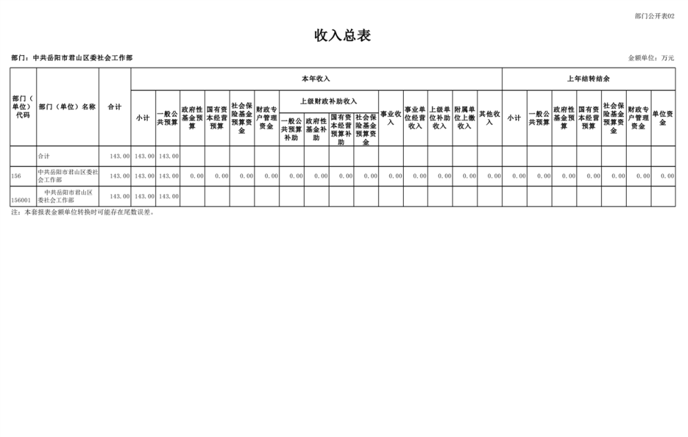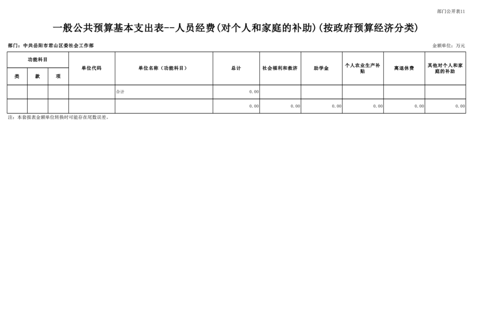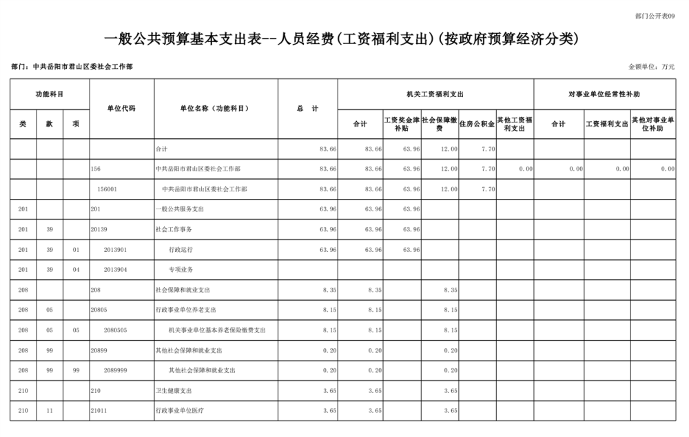 2025年中共岳阳市君山区委社会工作部部门预算公开