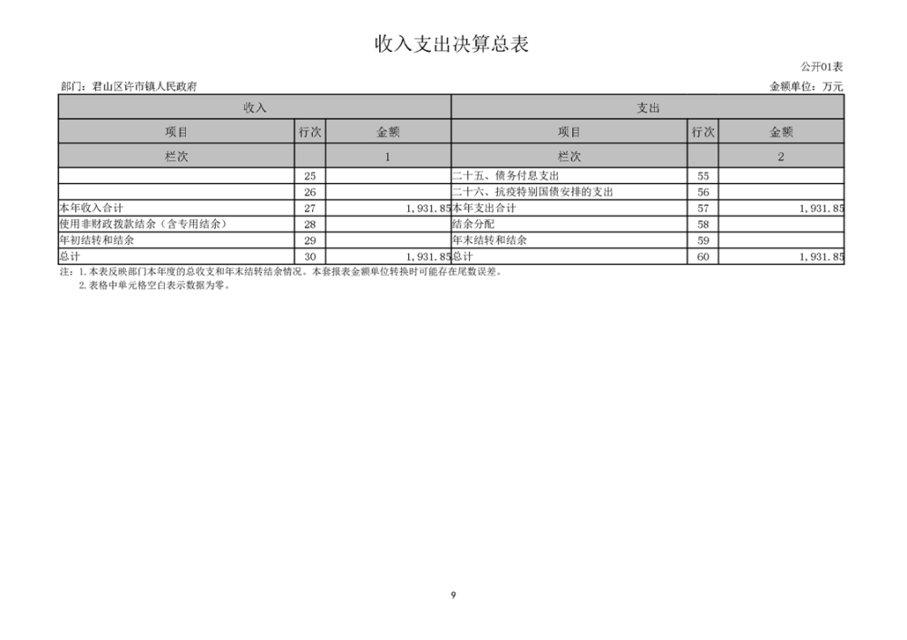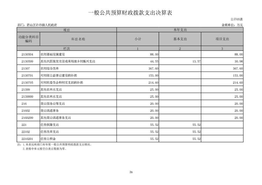 2024年度君山区许市镇人民政府部门决算公开