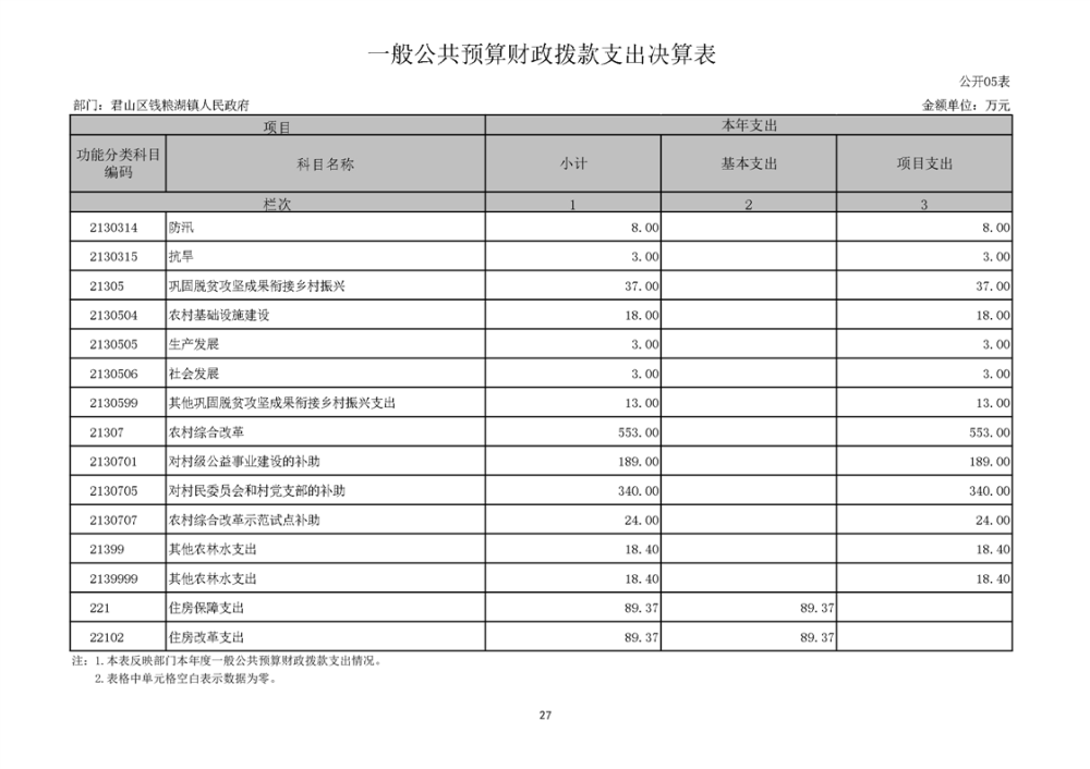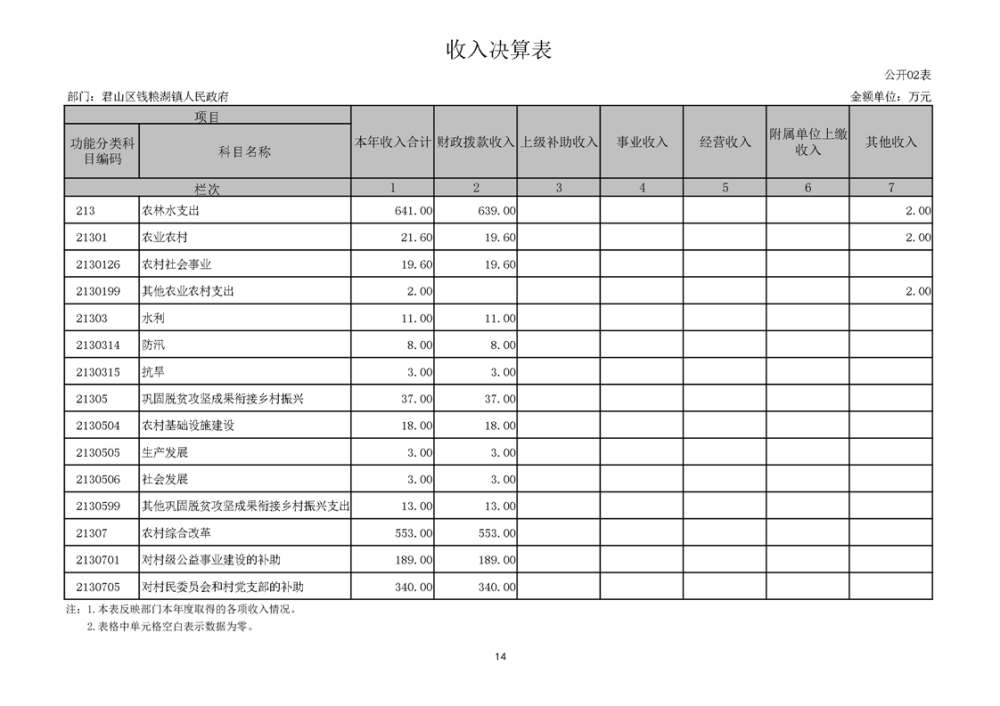2024年度君山区钱粮湖镇人民政府部门决算公开