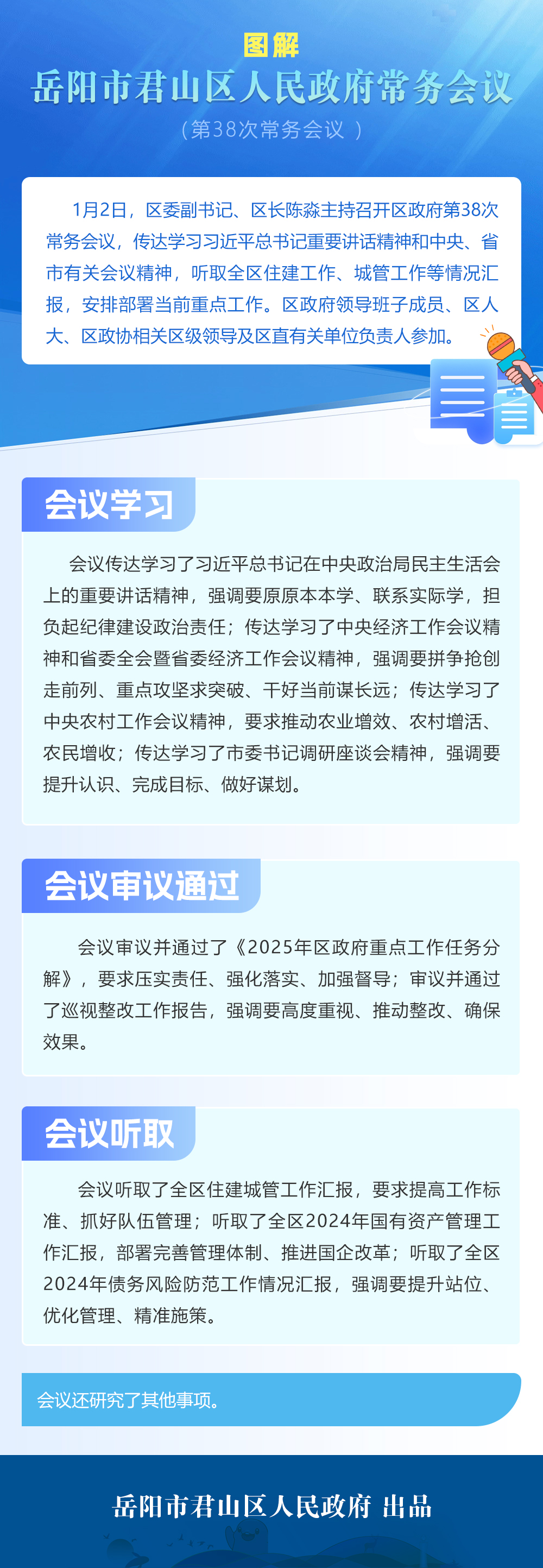 1月2日,区委副书记、区长陈淼主持召开区政府第38次常务会议,传达学习习近平总书记重要讲话精神和中央、省市有关会议精神,听取全区住建工作、城管工作等情况汇报,安排部署当前重点工作。区政府领导班子成员、区人大、区政协相关区级领导及区直有关单位负责人参加。