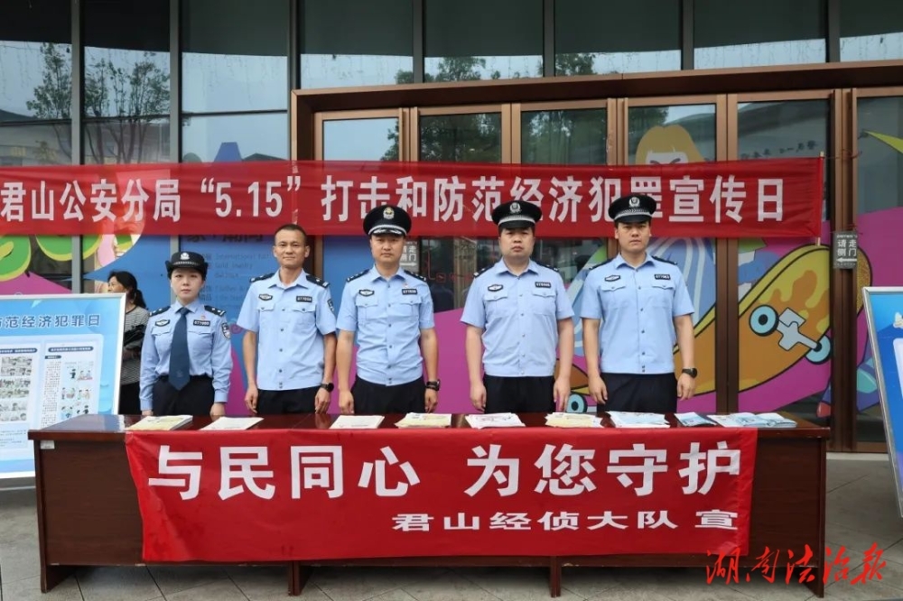 湖南法治报讯(通讯员 刘松)5月15日是第十六个全国公安机关打击和防范经济犯罪宣传日。君山区公安分局经侦大队以“与民同心,为您守护”为主题,在城区组织开展普法宣传活动,着力提升群众防范意识,切实维护经济安全,守护好人民群众“钱袋子”。