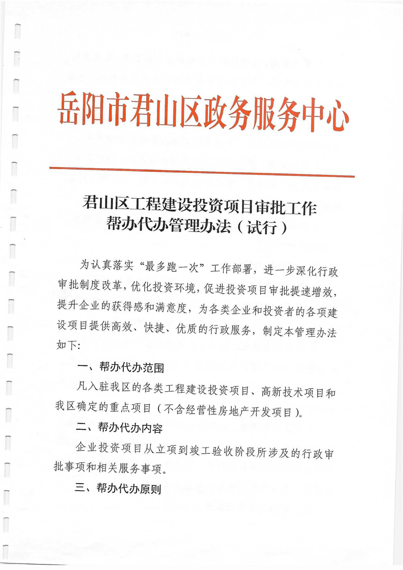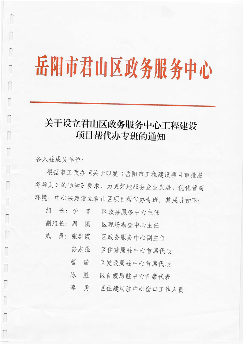 关于设立君山区政务服务中心工程建设项目帮代办专班的通知