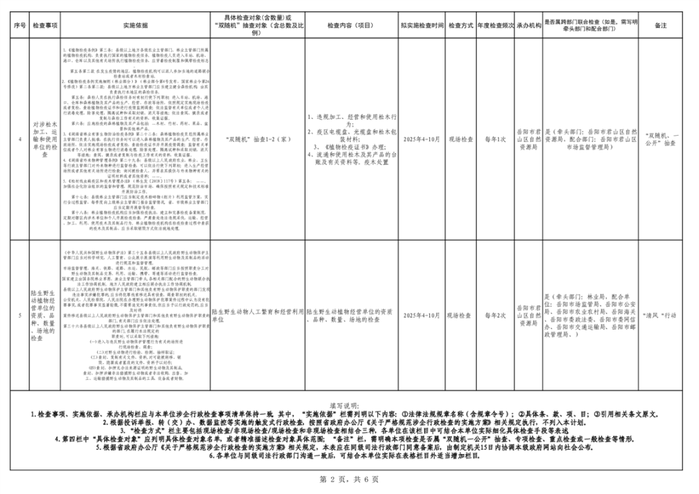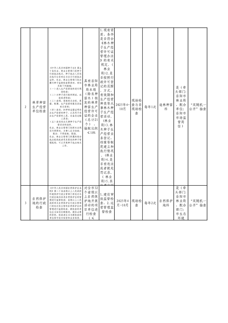 君山区自然资源局(林业)2025年涉企行政检查事项清单