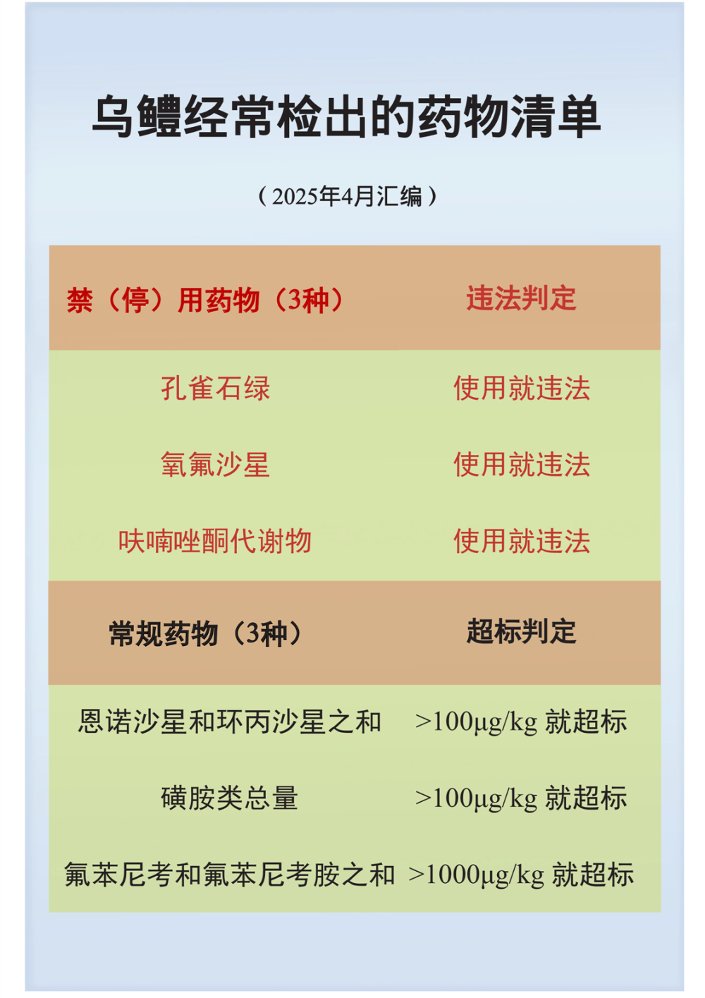 乌鳢经常检出的药物清单