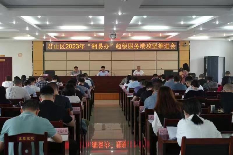 5月26日,君山区2023年“湘易办”超级服务端建设攻坚大会召开,区人民政府副区长虢汉平出席。区政府办、区行政审批服务局等相关单位负责人及全区“湘易办”推广应用责任单位的分管负责人参加。