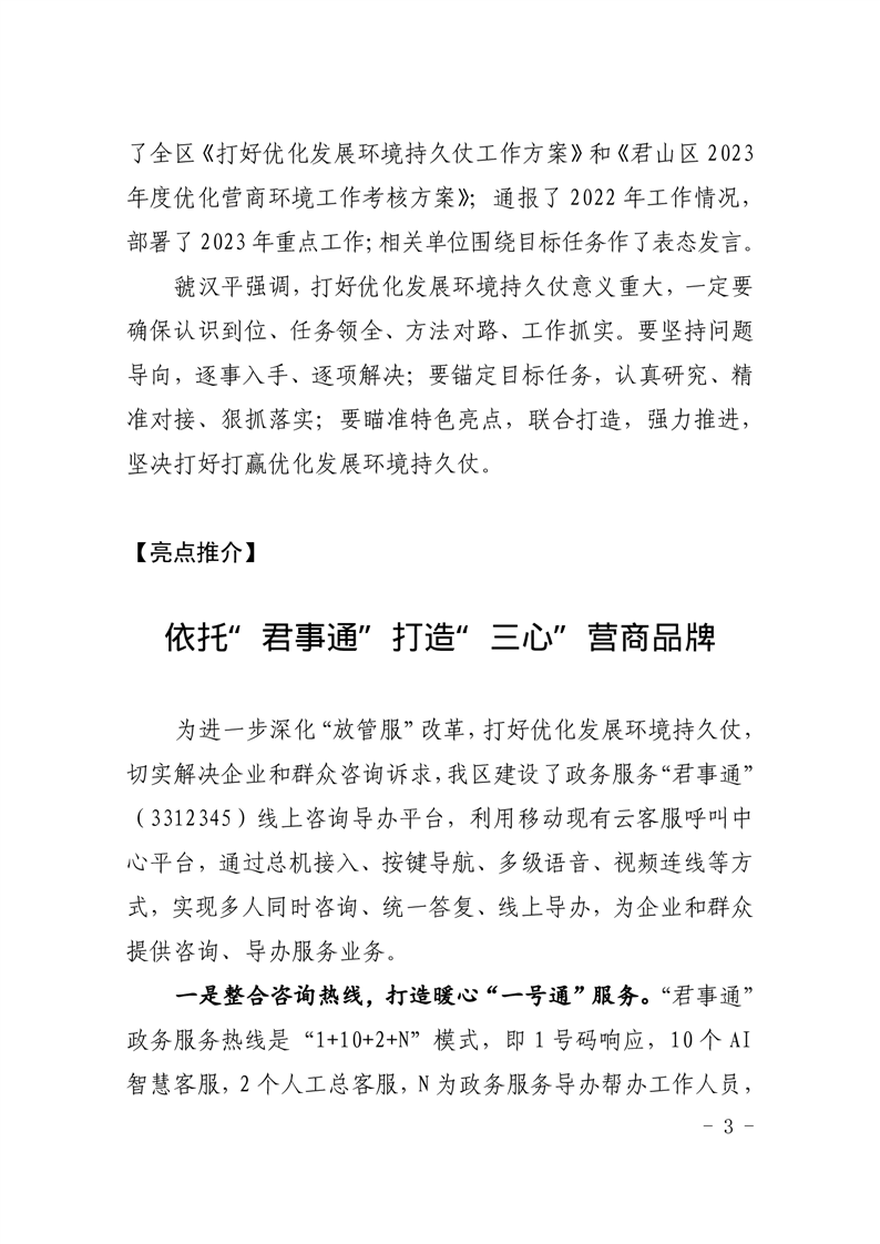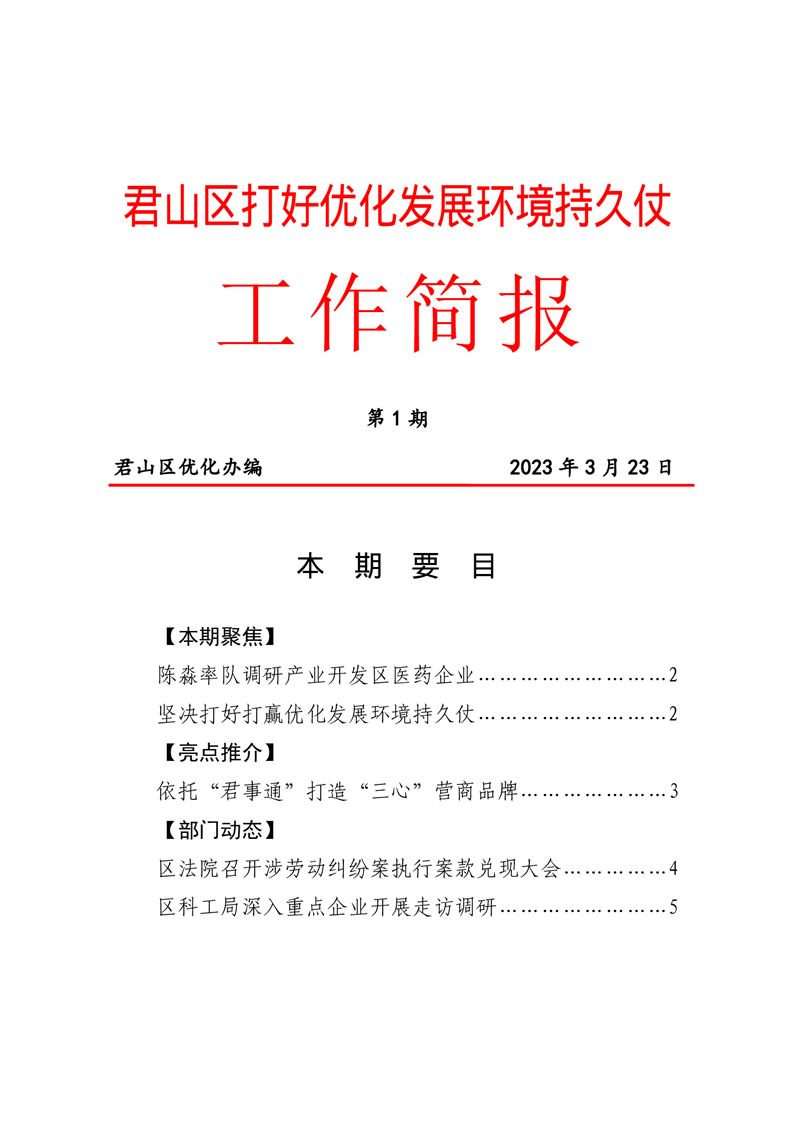 君山区打好优化发展环境持久仗工作简报(第1期)